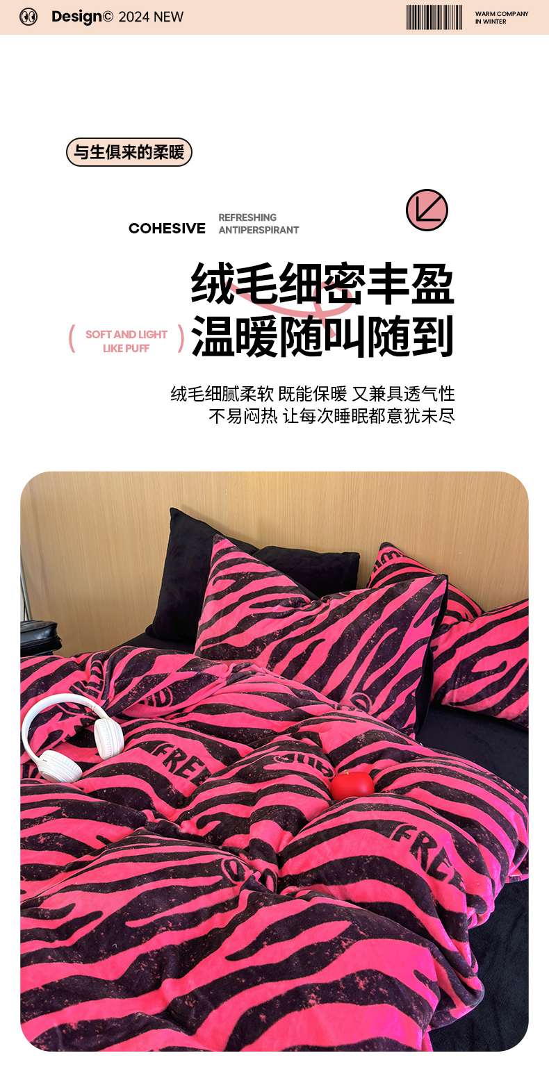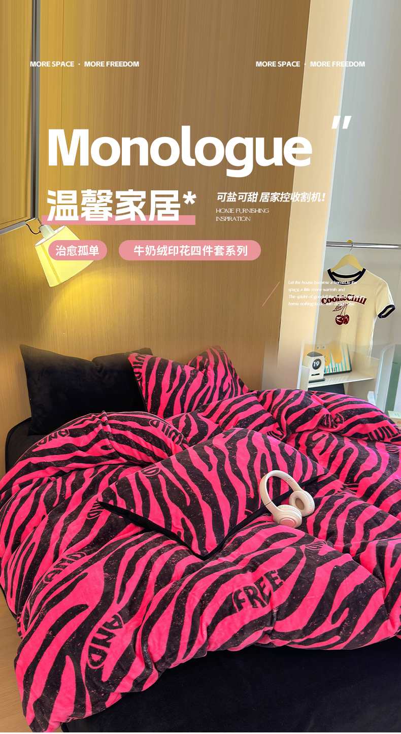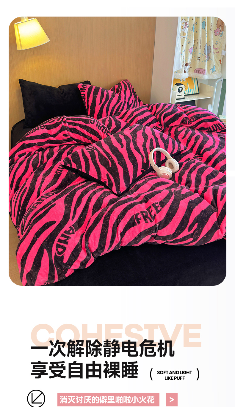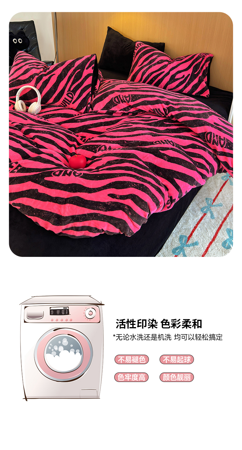 商品名称:春光里 2024新款牛奶绒印花混搭四件套 甜酷斑纹