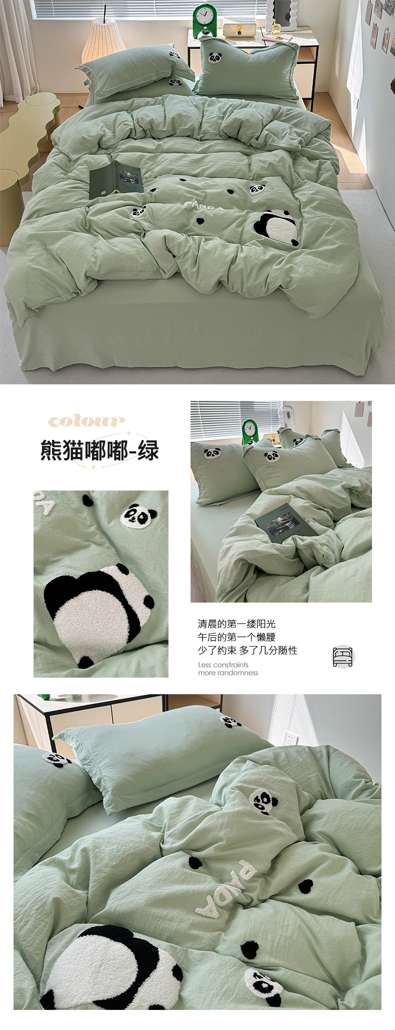当前位置: 91家纺网 > 商品网购 > 床品套件 > 四件套 > 水洗棉四件套 > 布可家纺 2025新款水洗棉毛巾绣四件套 熊猫嘟嘟-绿