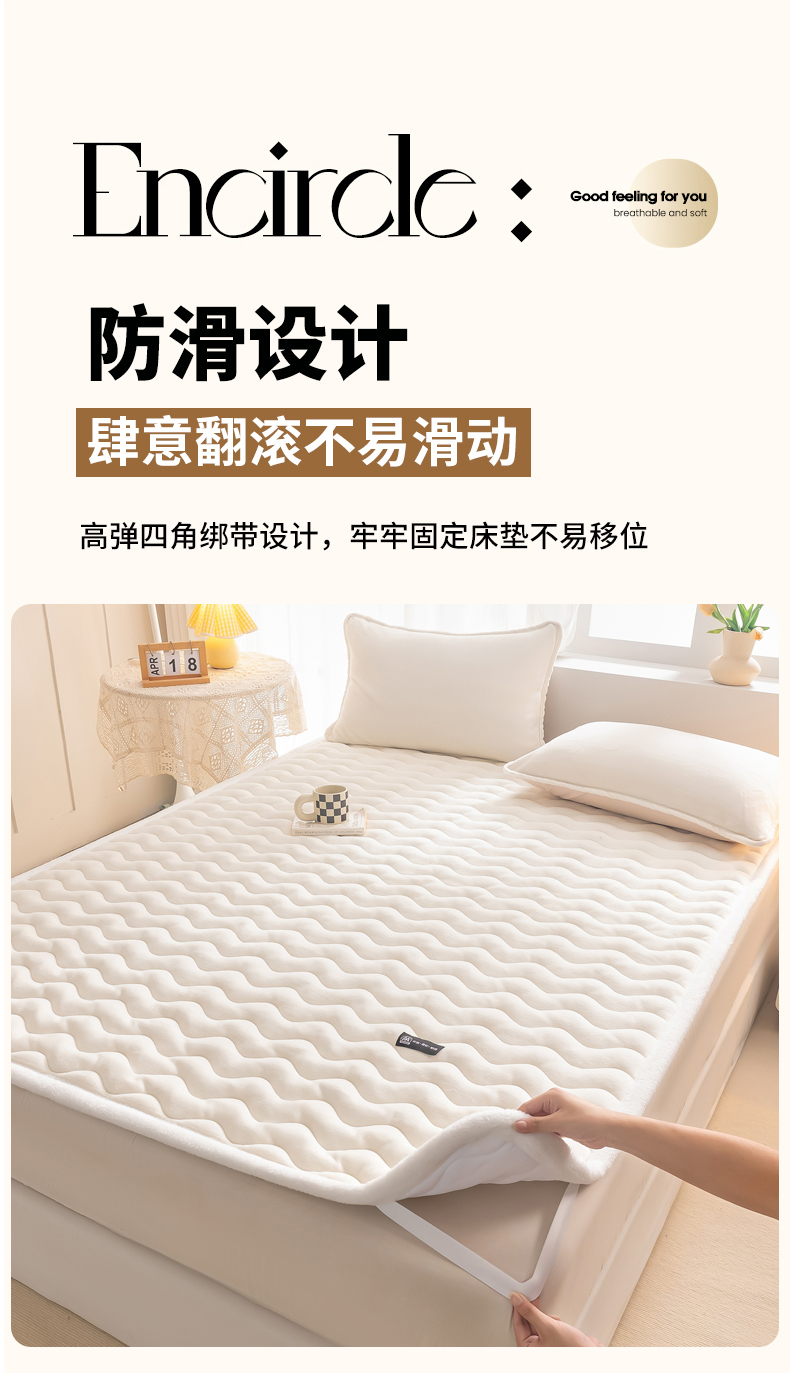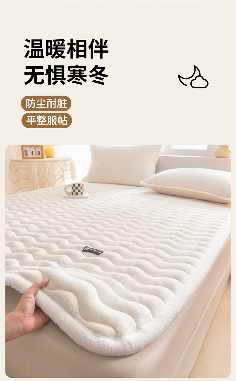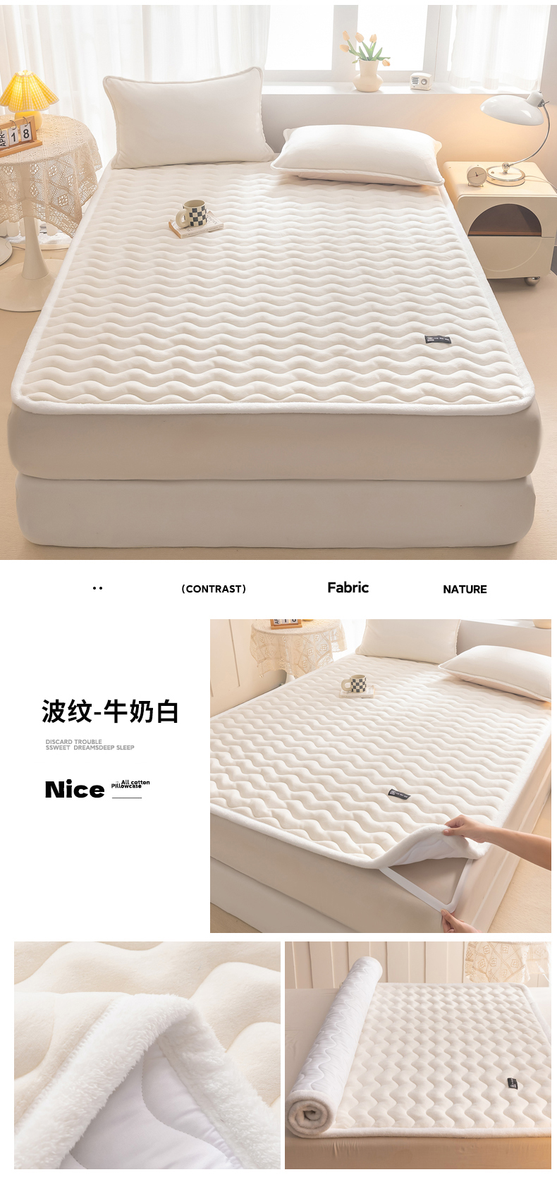 • 91家纺网 家纺一手货源 找家纺 恒尚居 2024秋冬新品牛奶绒床垫床褥垫加厚夹棉软床垫床褥子床护垫保护垫 波纹-绒垫【牛奶白】