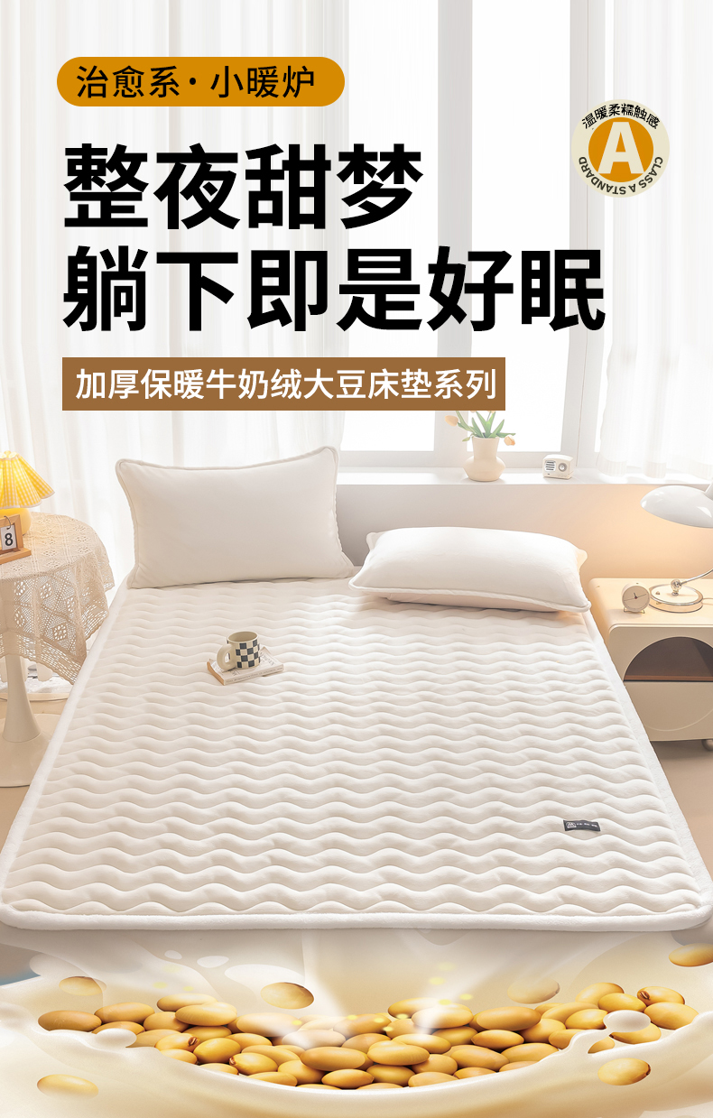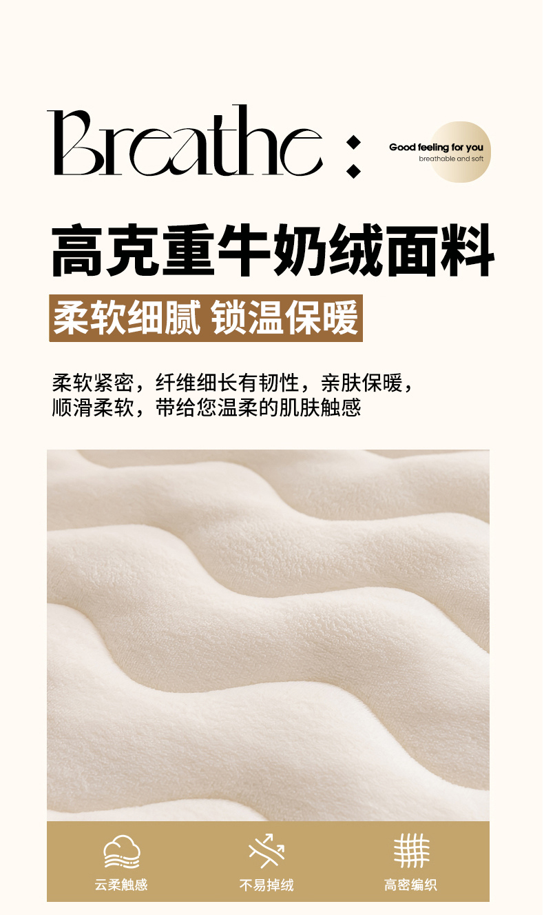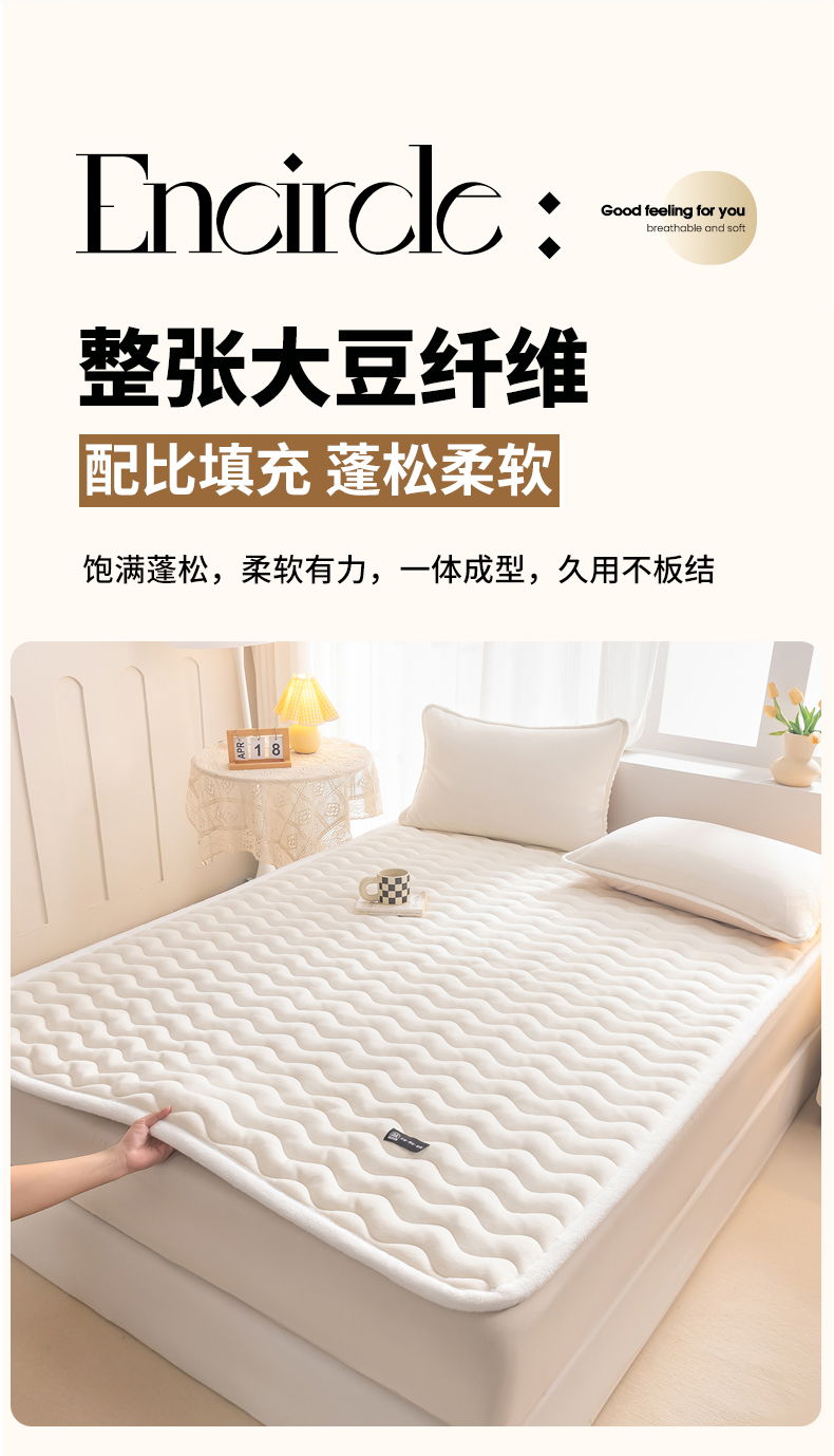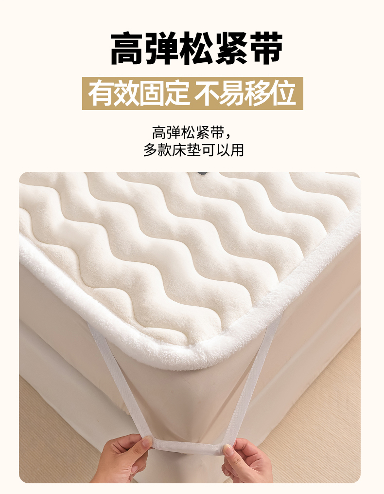 • 91家纺网 家纺一手货源 找家纺 恒尚居 2024秋冬新品牛奶绒床垫床褥垫加厚夹棉软床垫床褥子床护垫保护垫 波纹-绒垫【牛奶白】
