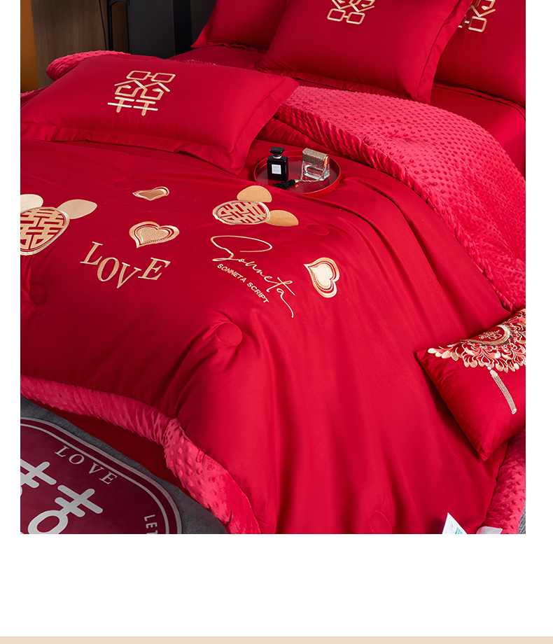 (总)2025新款高克重花边贴布款牛奶绒婚庆刺绣四件套,牛奶绒花边款-喜事临门,牛奶绒花边款-龙凤祥瑞,牛奶绒婚庆-玫瑰,牛奶绒婚庆-吾家有喜,牛奶绒婚庆-喜乐,牛奶绒婚庆-挚爱