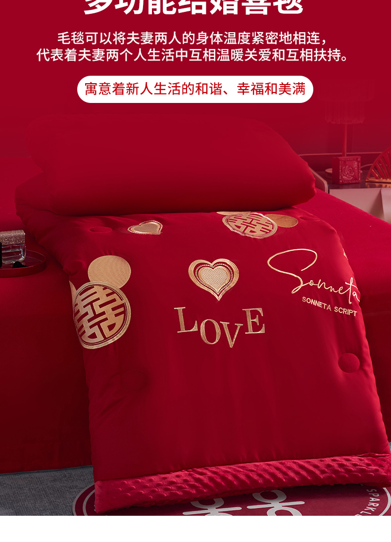 (总)玉雅家纺 2025新款婚庆两用豆豆被毛毯喜被婚庆被芯,婚庆被毯-爱情花,婚庆被毯-欢喜之心,婚庆被毯-吾家有喜,婚庆被毯-喜来到,婚庆被毯-喜乐玫瑰,婚庆被毯-喜临门