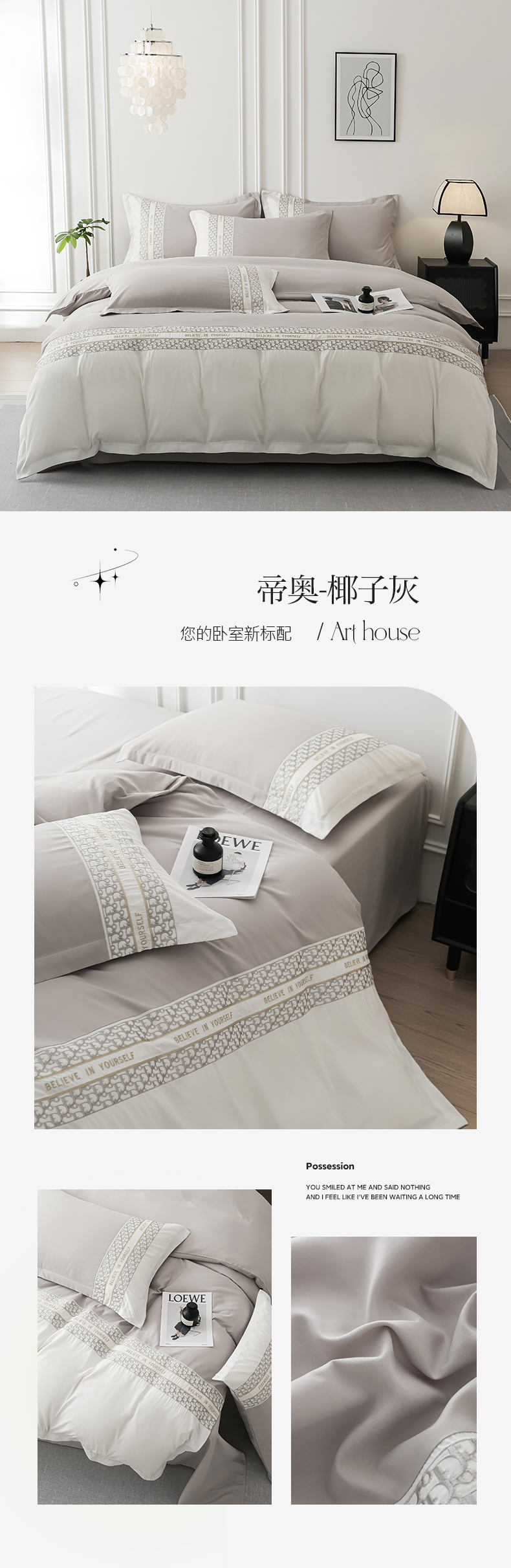布可家纺 2025新款时髦大牌高级感水洗磨毛刺绣四件套-帝奥 帝奥-椰子灰