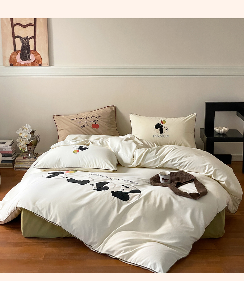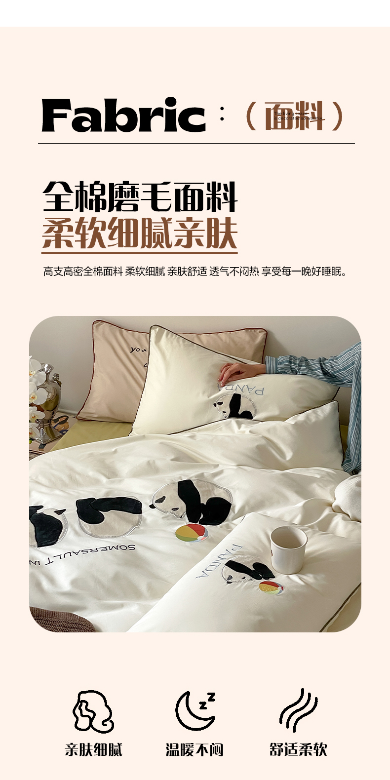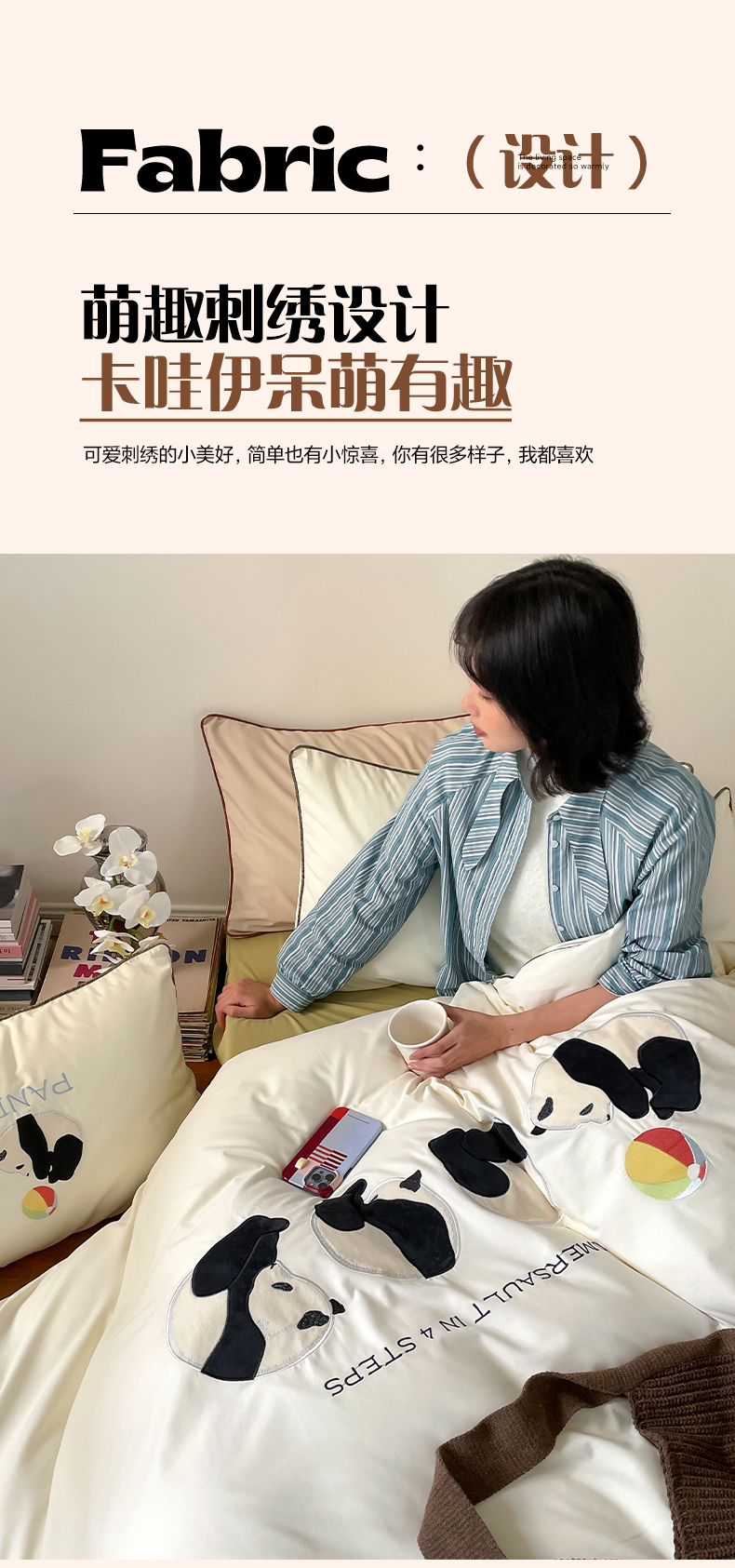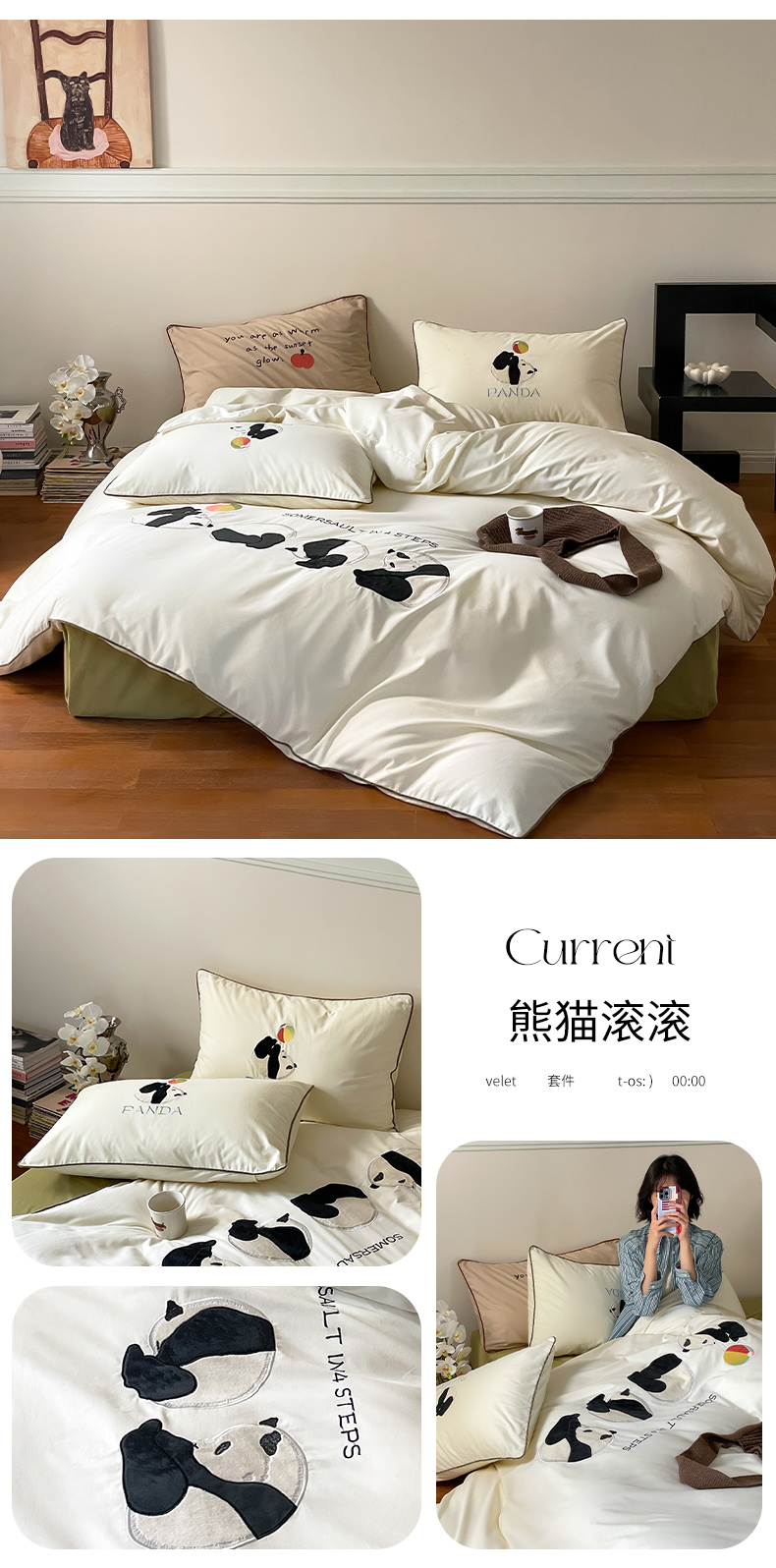 圆岛家纺 2024秋冬全棉磨毛刺绣贴布绣卡通四件套 熊猫滚滚