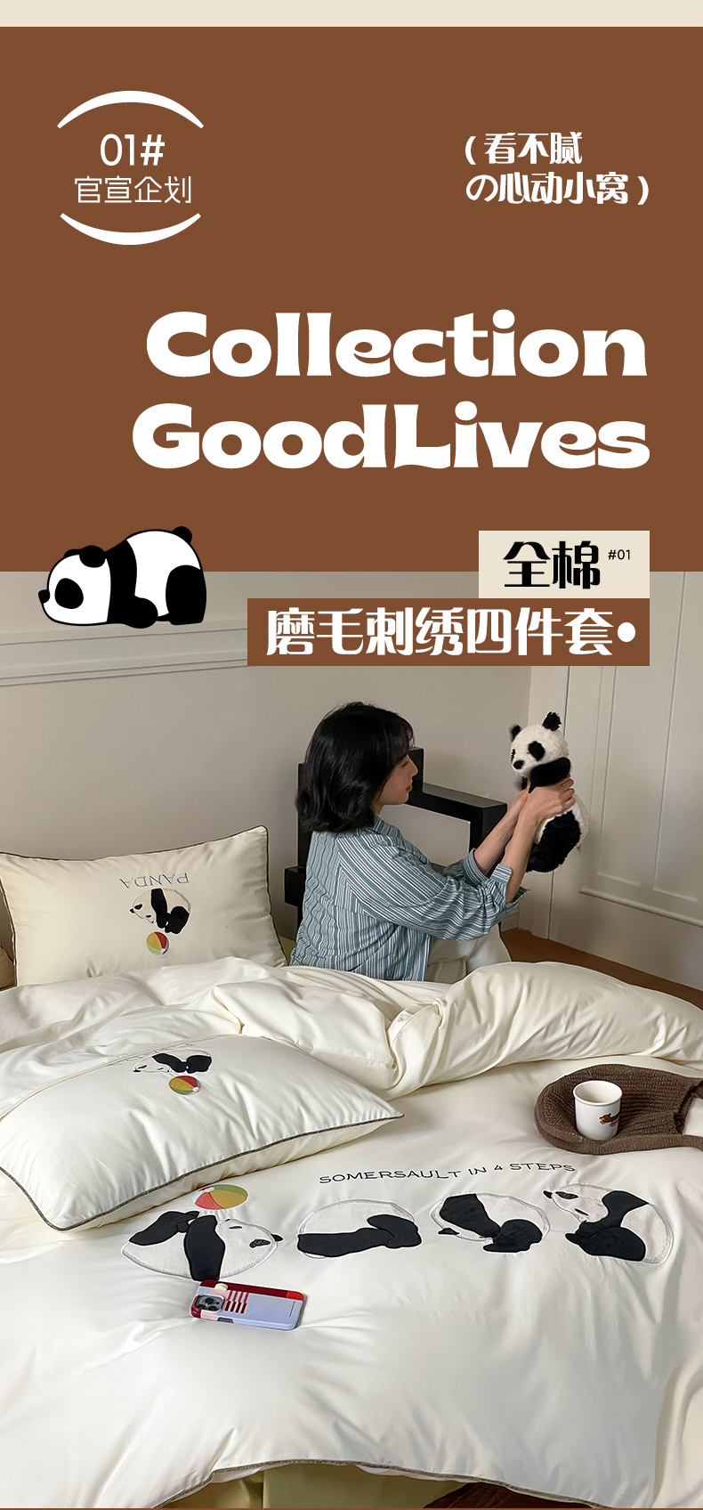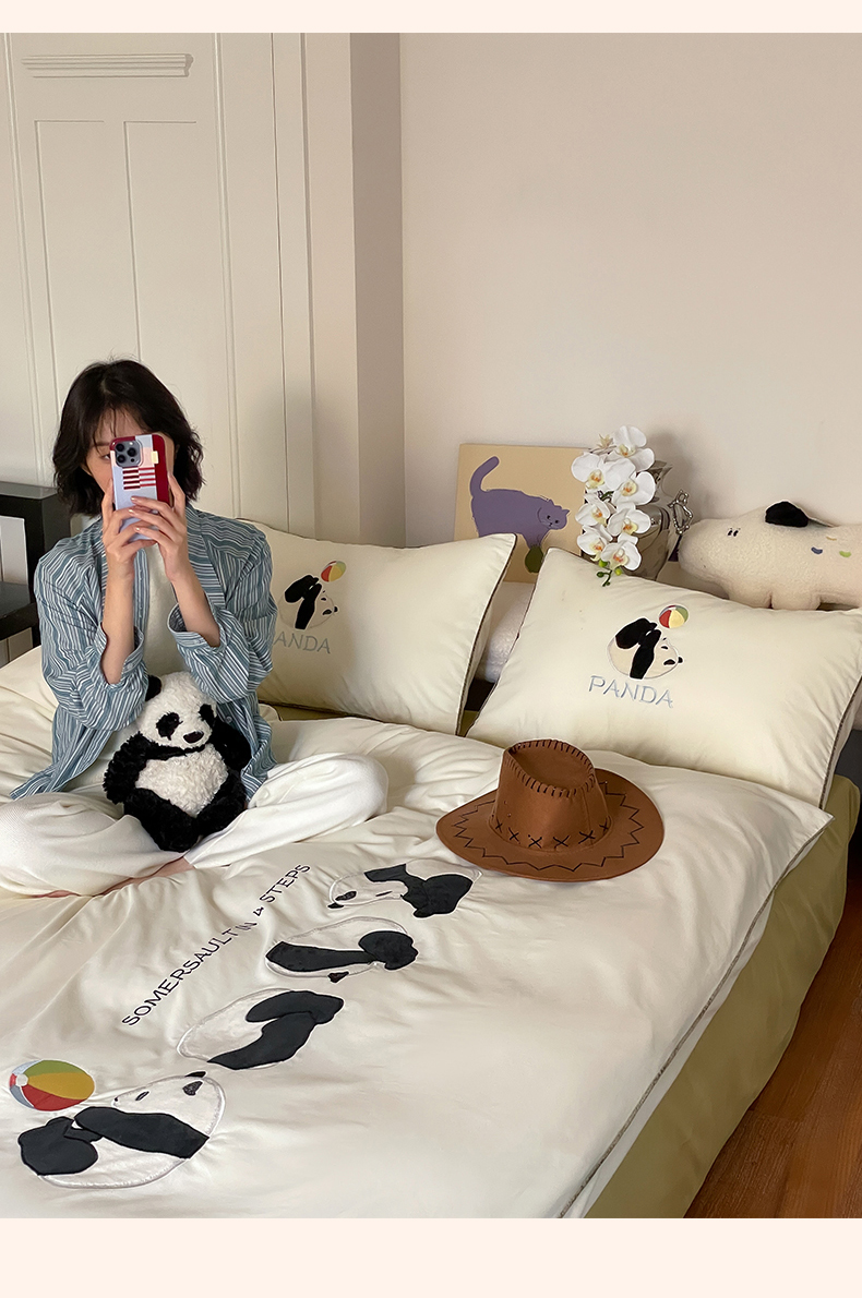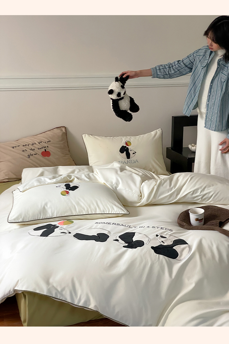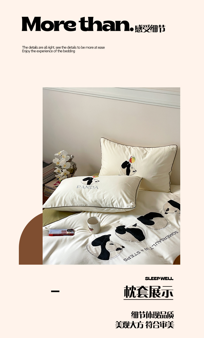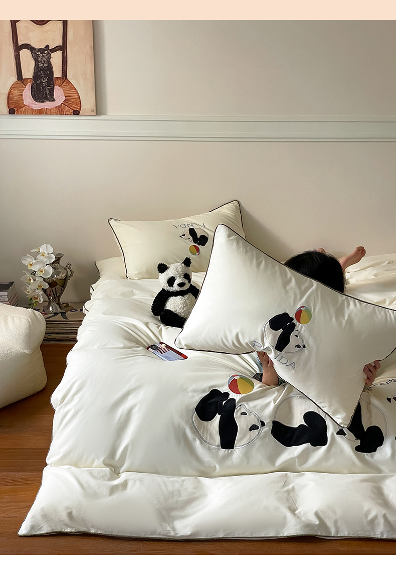 圆岛家纺 2024秋冬全棉磨毛刺绣贴布绣卡通四件套 熊猫滚滚