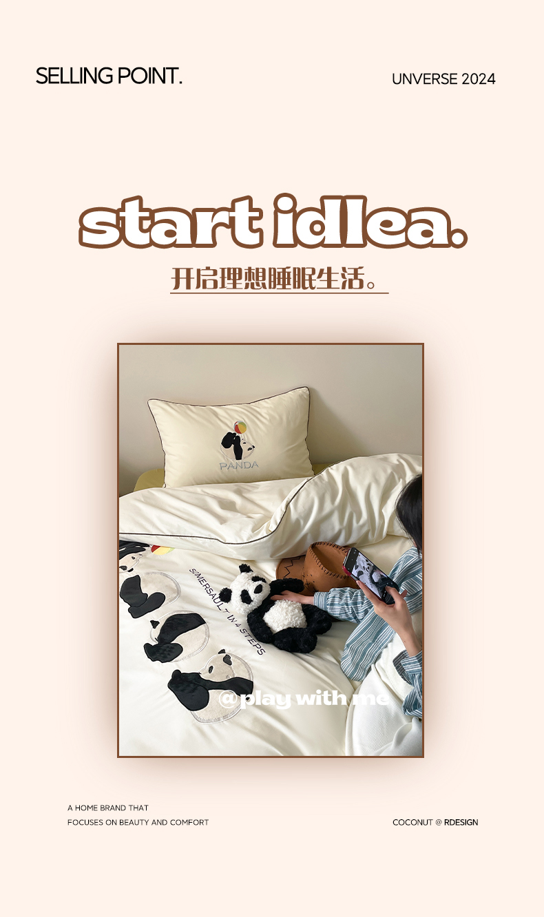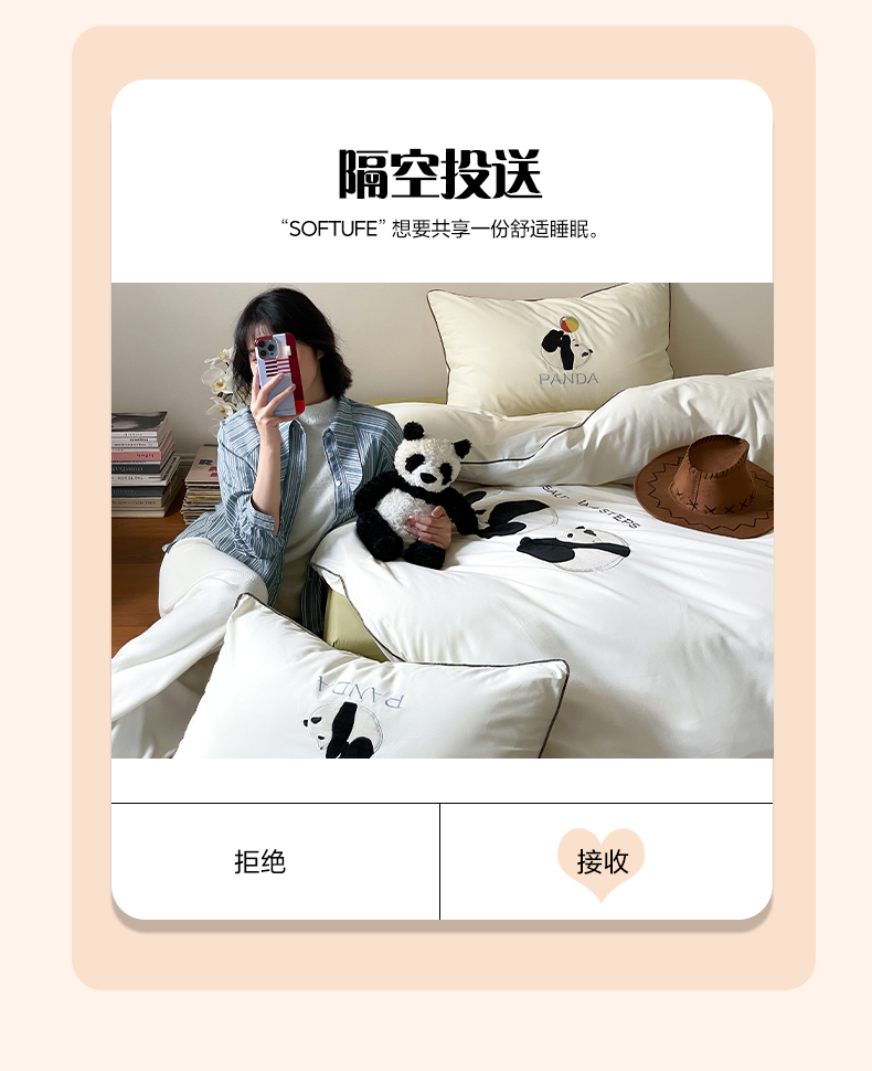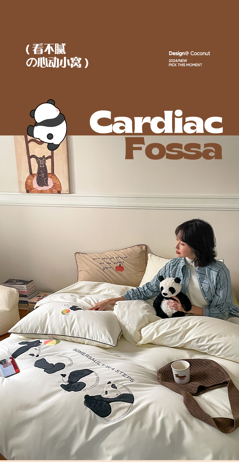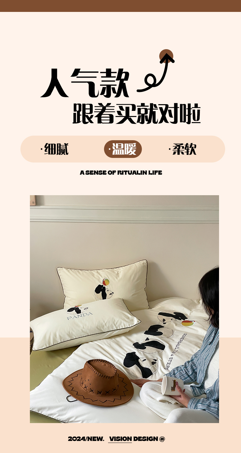 圆岛家纺 2024秋冬全棉磨毛刺绣贴布绣卡通四件套 熊猫滚滚