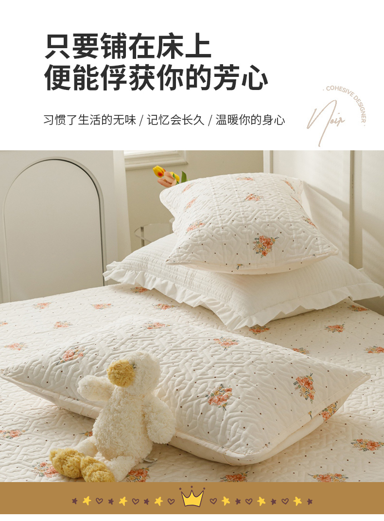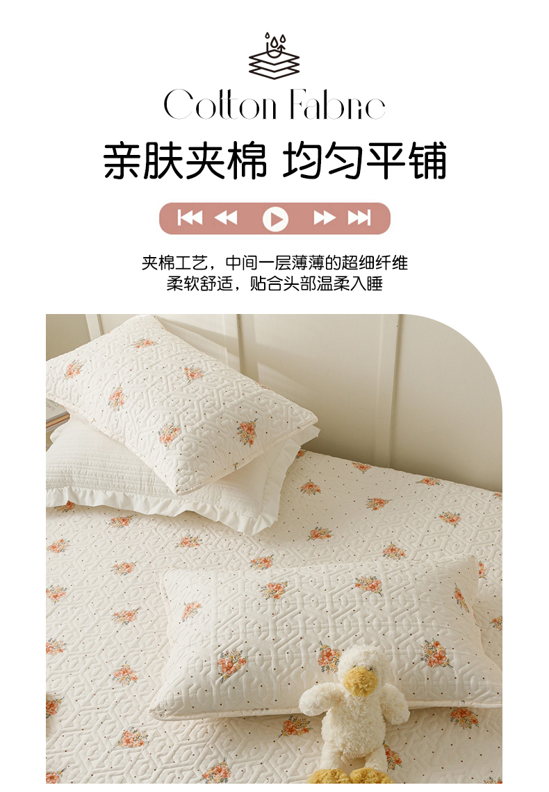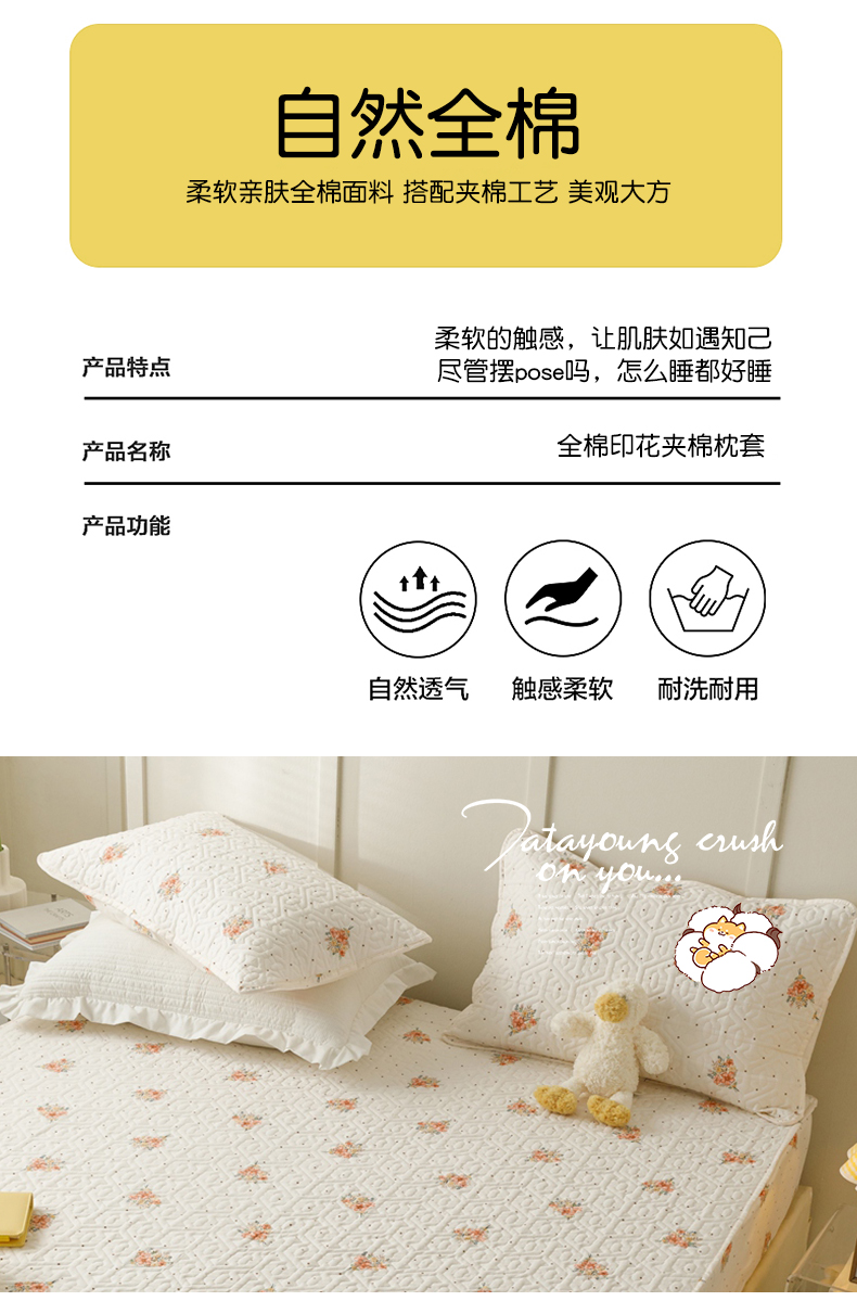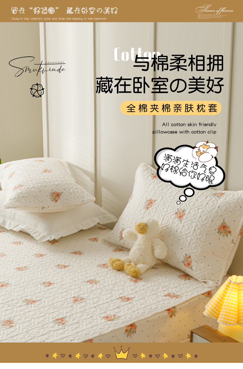 商品名称:2024新款全棉夹棉枕套-印花类 花簇-米
