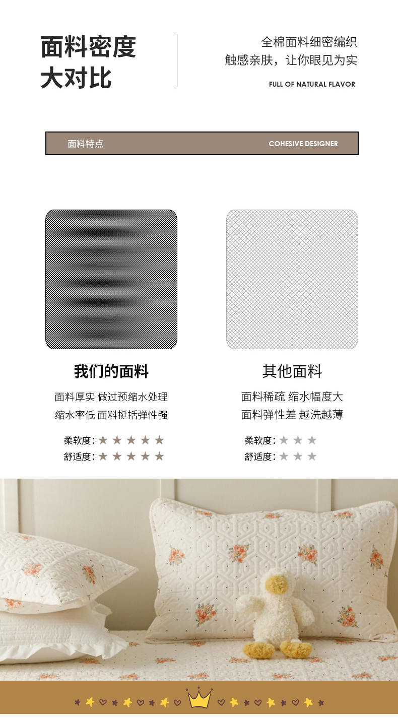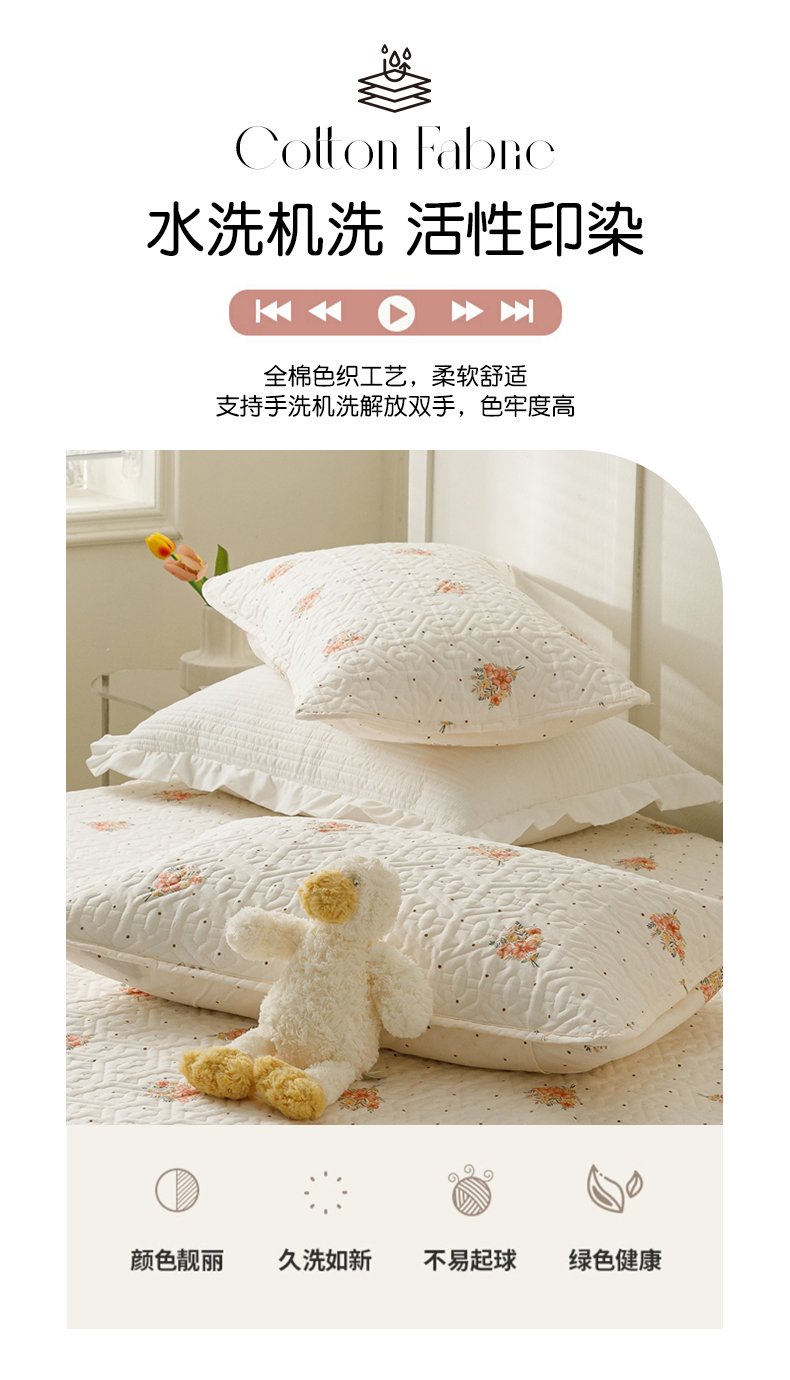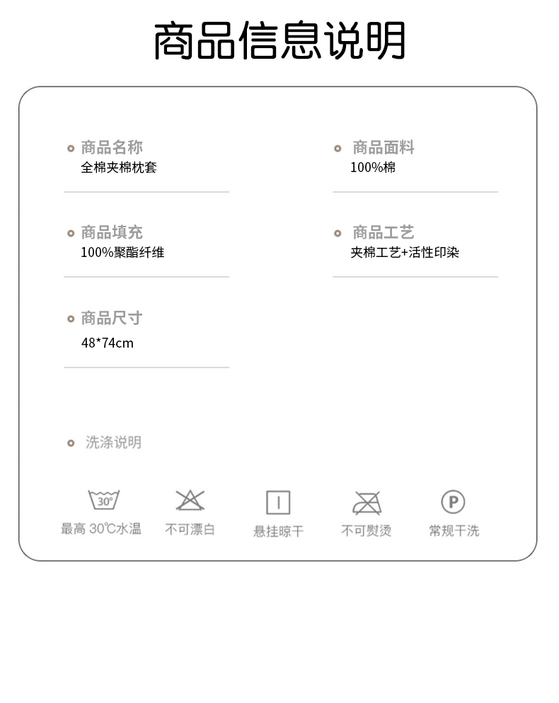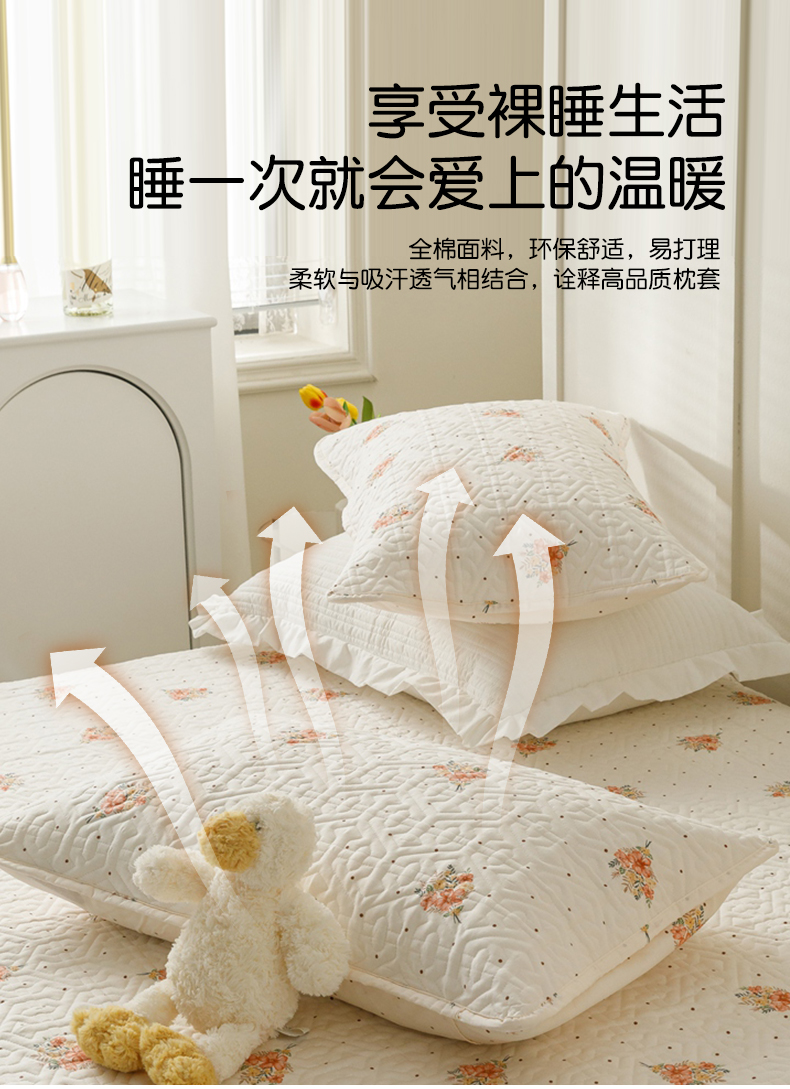 商品名称:2024新款全棉夹棉枕套-印花类 花簇-米
