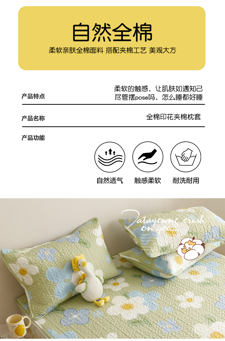 商品名称:2024新款全棉夹棉枕套-印花类 雅秀