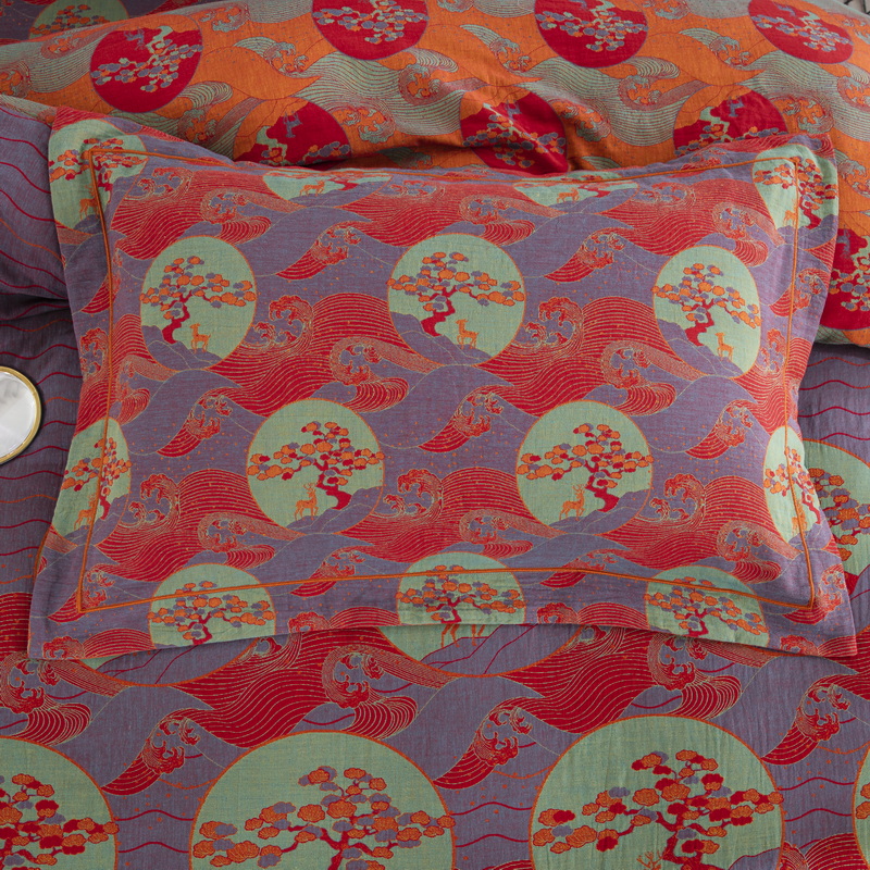 鲁爱 2025新款大版色织提花全棉双层纱四件套 海上明月-紫罗兰
