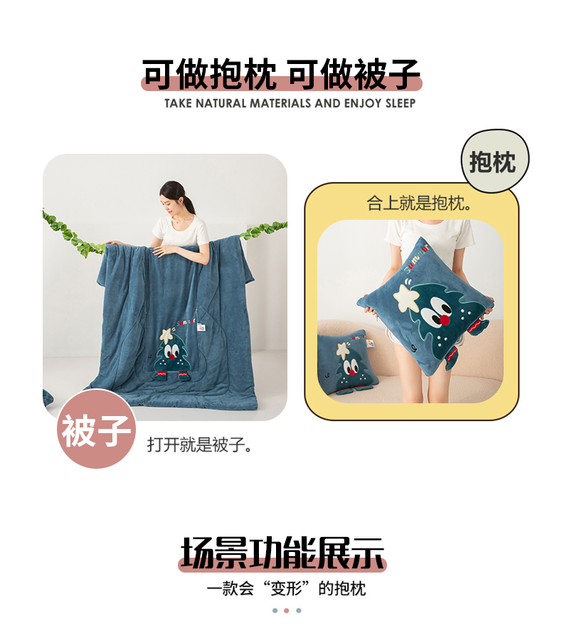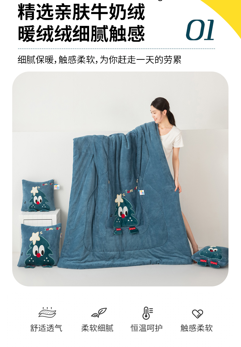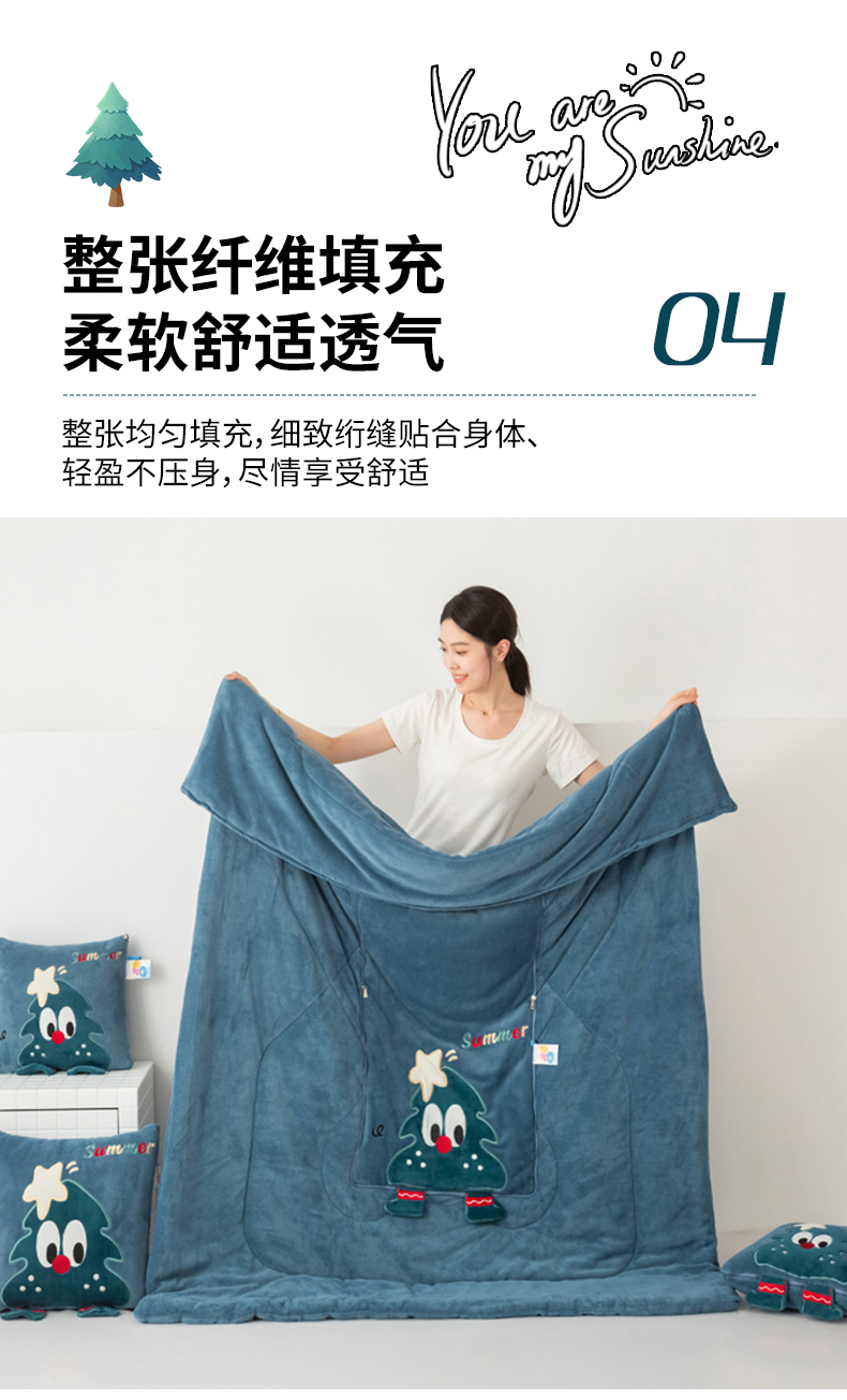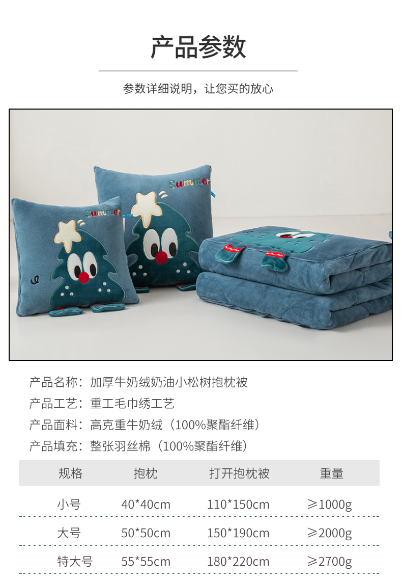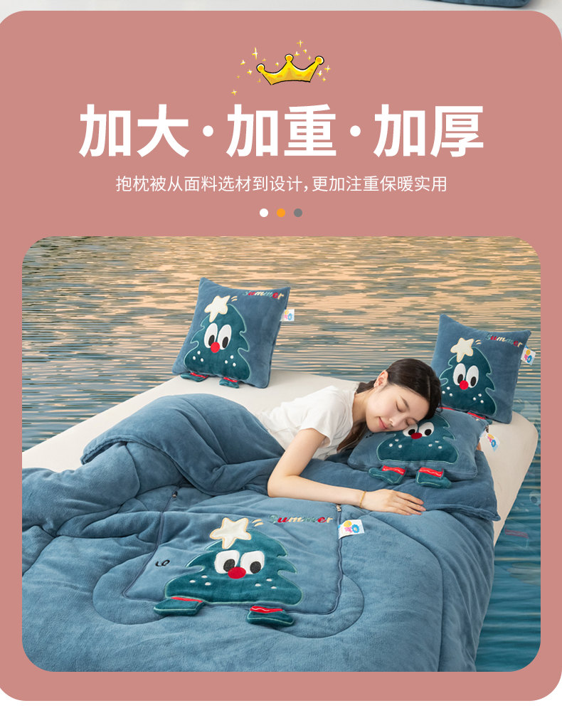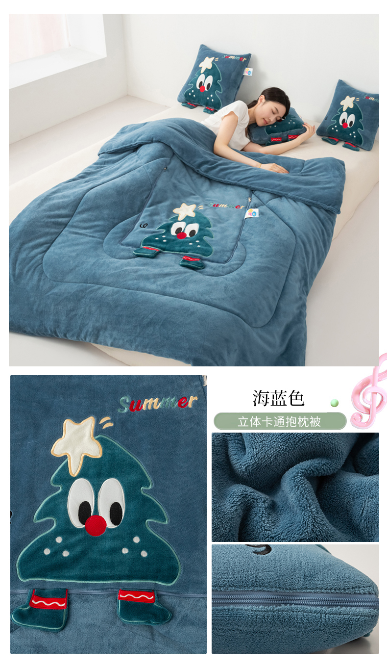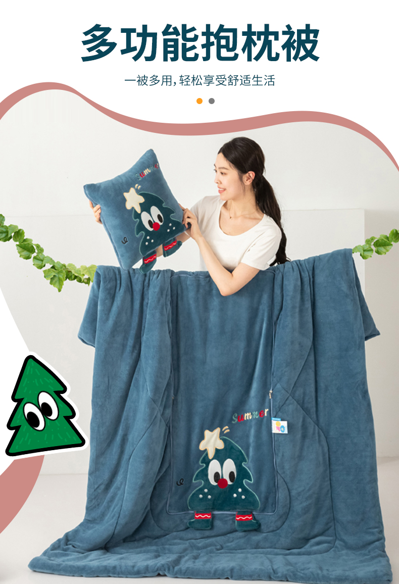 商品名称:雷娜家居 2024新款加厚牛奶绒奶油小松树抱枕被 海蓝色
