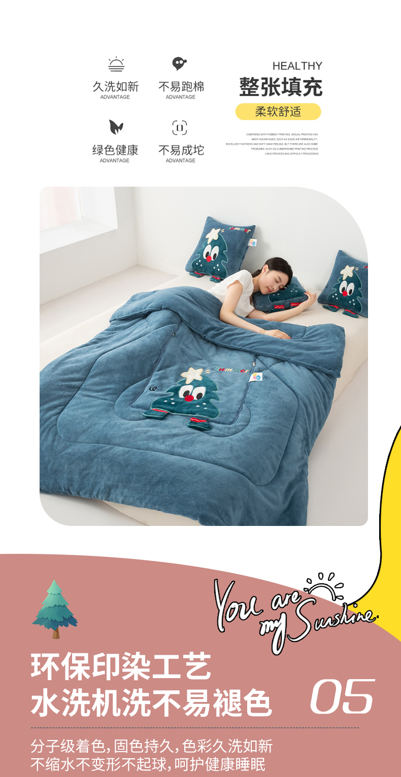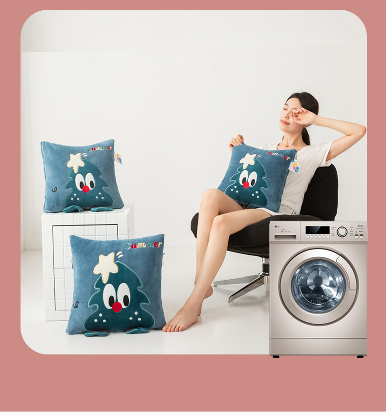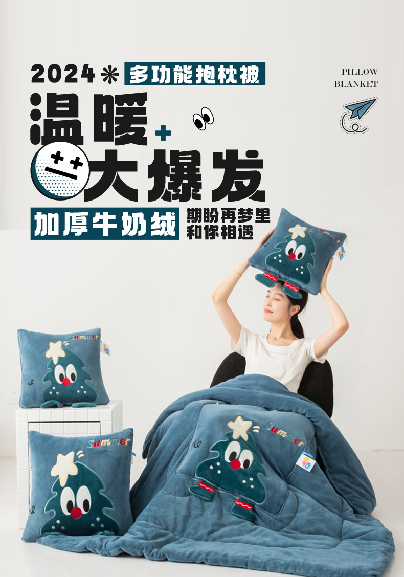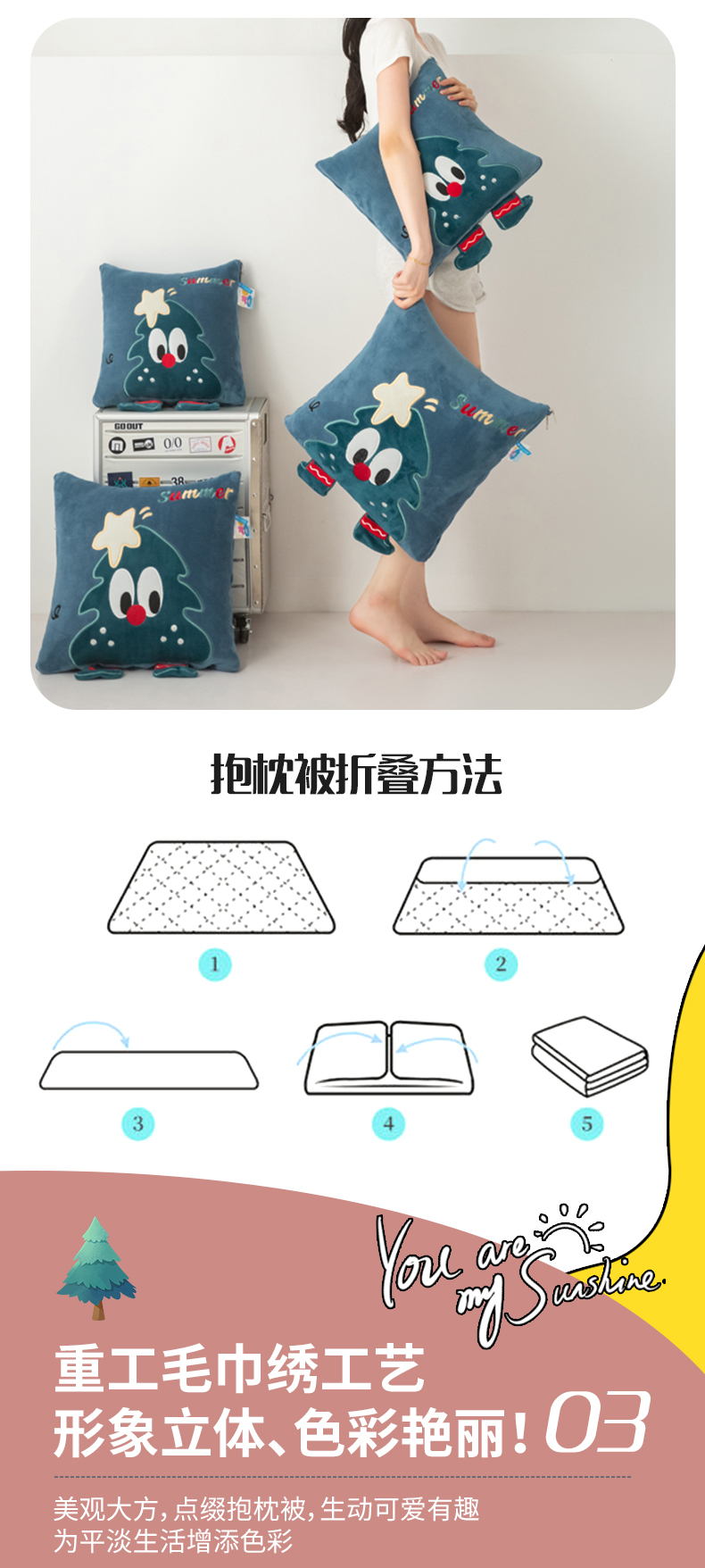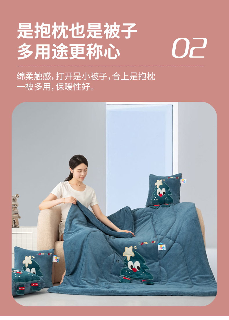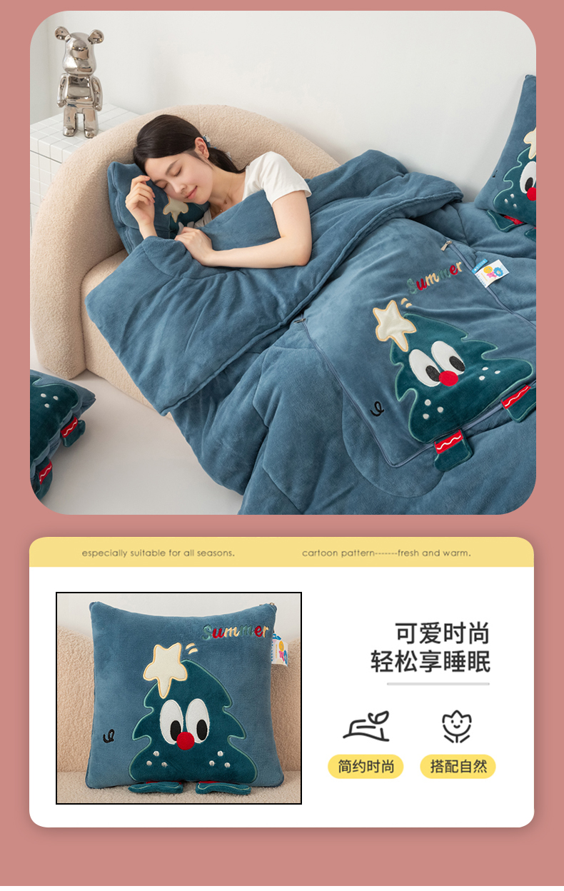 商品名称:雷娜家居 2024新款加厚牛奶绒奶油小松树抱枕被 海蓝色