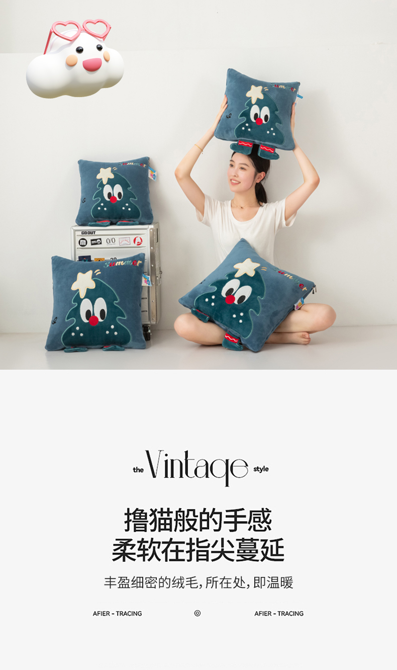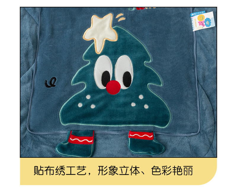 雷娜家居 2024新款加厚牛奶绒奶油小松树抱枕被 海蓝色