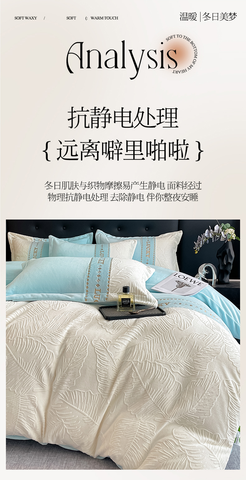 (总)金窝窝家纺 2024新款婴儿级牛奶绒拼接刺绣烂花雕花绒四件套--朱丽叶系列,朱丽叶-粉,朱丽叶-灰,朱丽叶-咖,朱丽叶-蓝,朱丽叶-绿