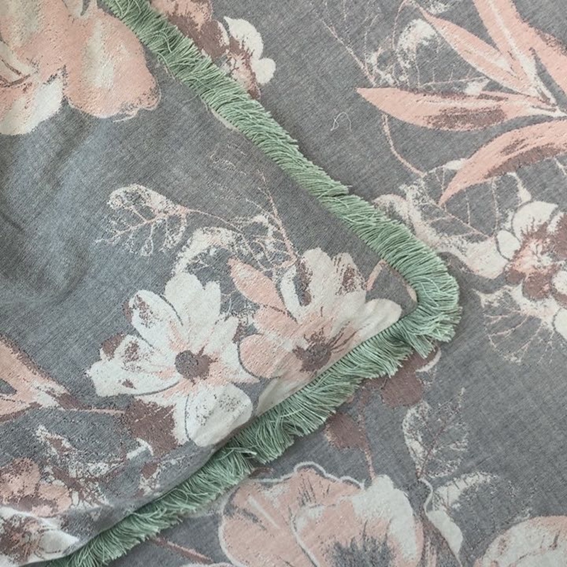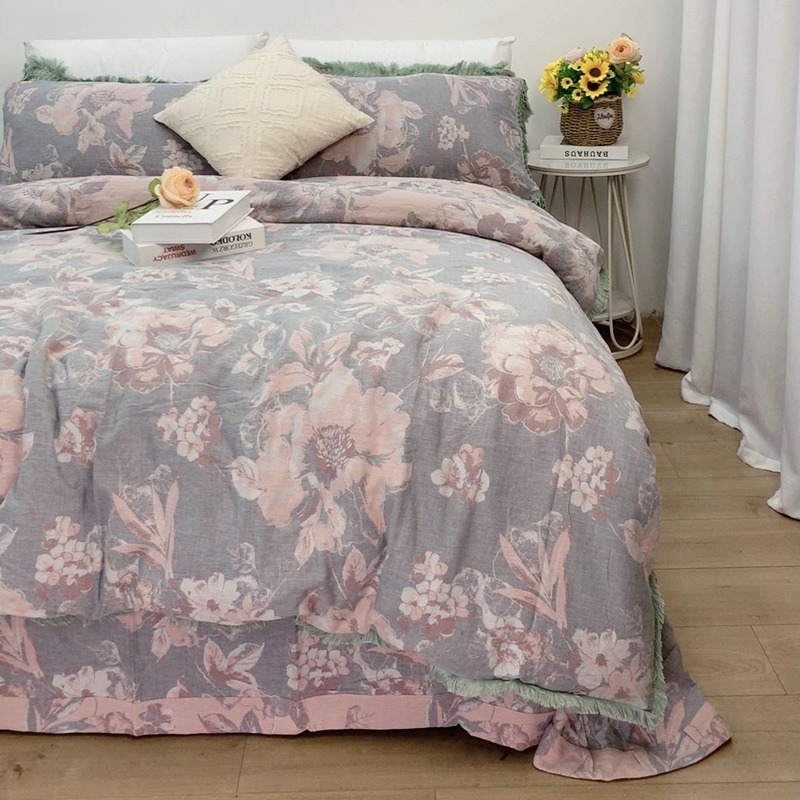 鲁爱 2025新款全棉双层纱流苏花边四件套 寻芳-灰