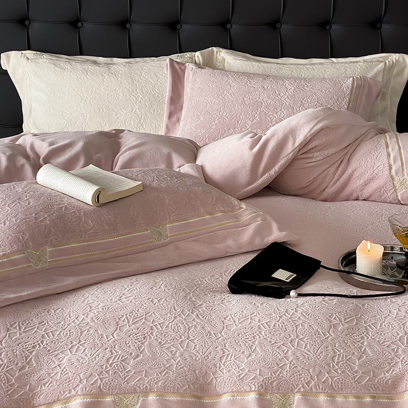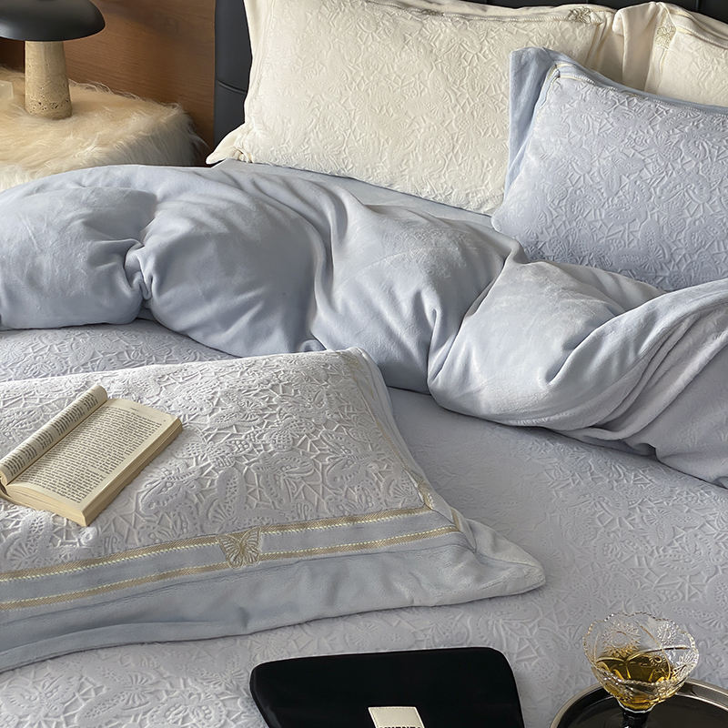 MIU缪家居 2024新款雕花牛奶绒四件套-自由之蝶 自由之蝶-奶白