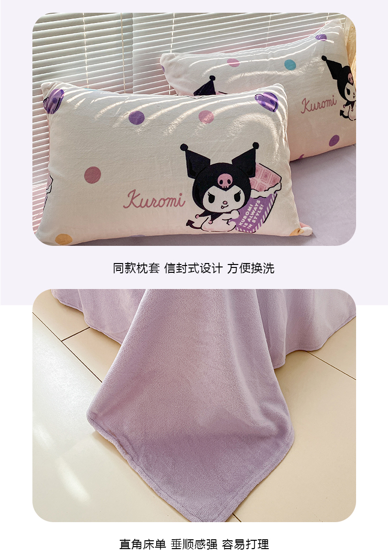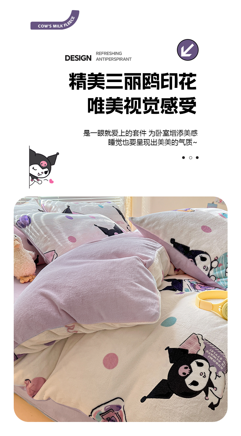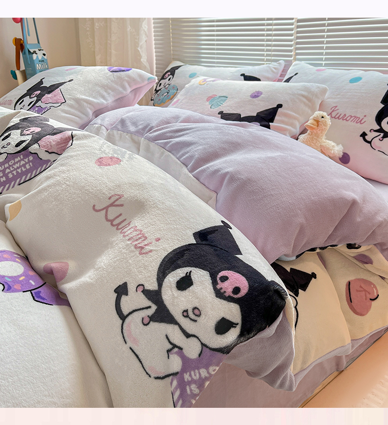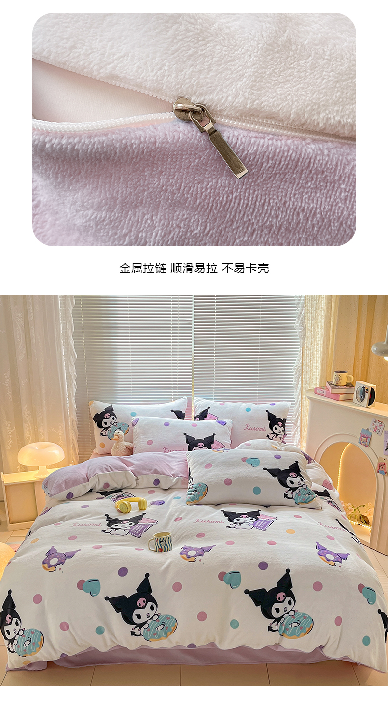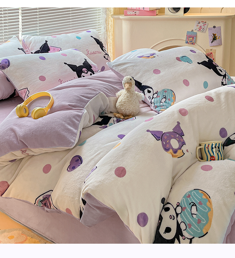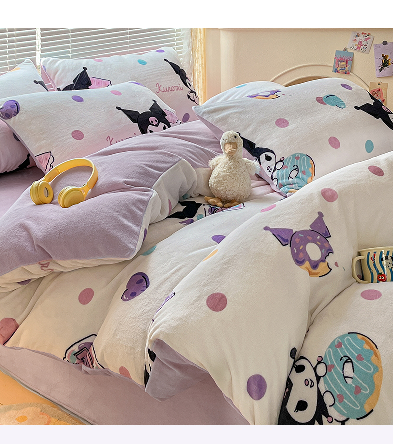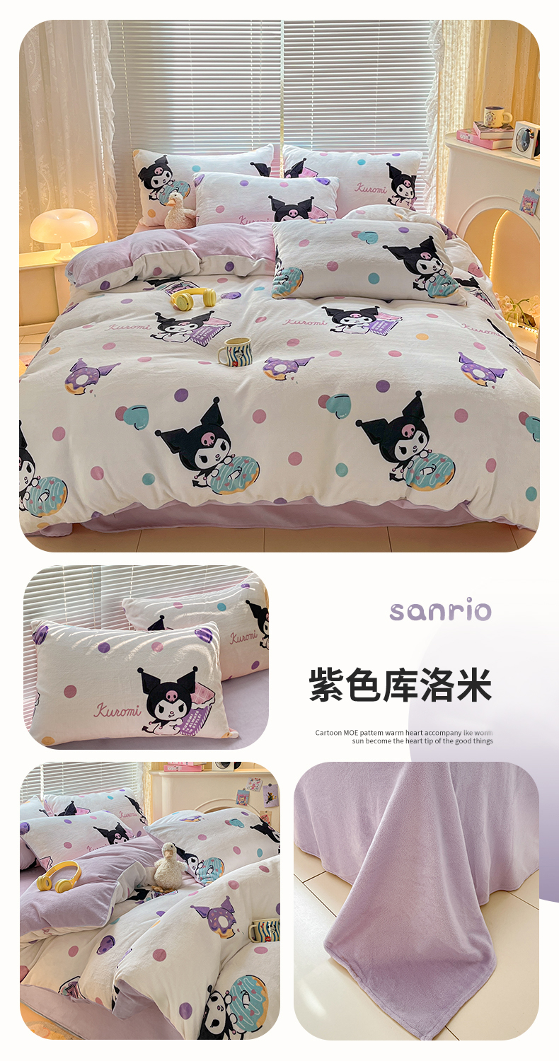 当前位置: 91家纺网 > 商品网购 > 床品套件 > 四件套 > 牛奶绒四件套 > 美澳家纺 2024新款200克三丽鸥系列卡通印花牛奶绒单被套三四件套 甜甜圈库洛米