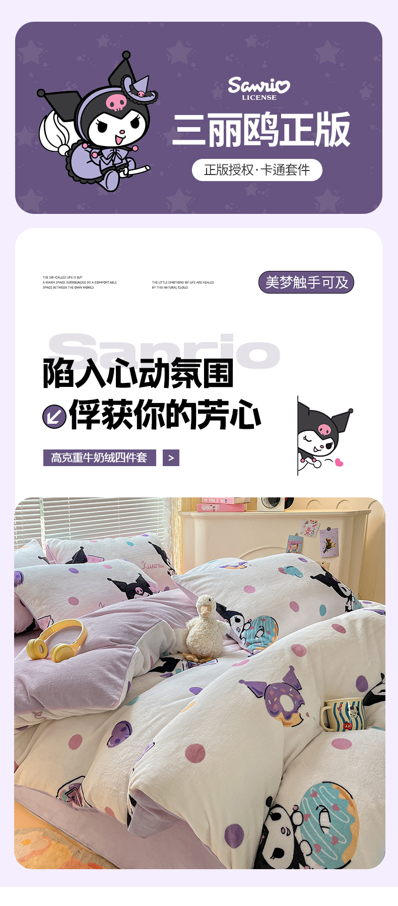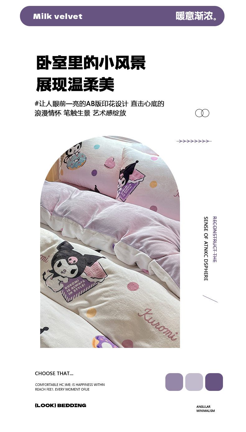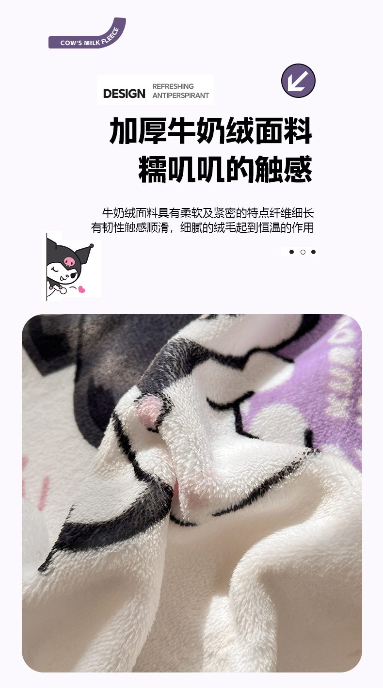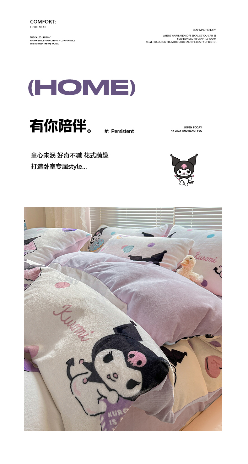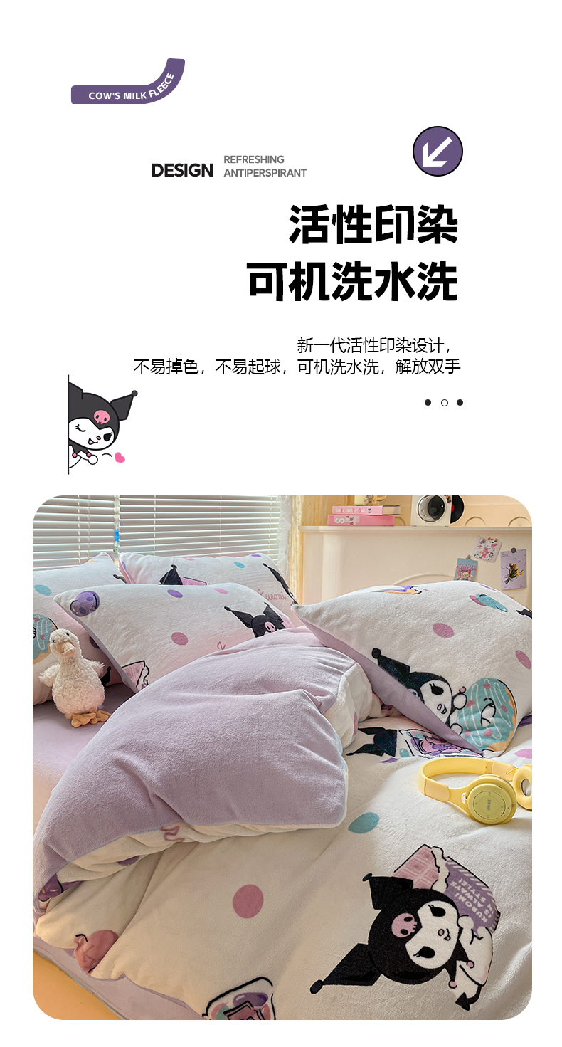 当前位置: 91家纺网 > 商品网购 > 床品套件 > 四件套 > 牛奶绒四件套 > 美澳家纺 2024新款200克三丽鸥系列卡通印花牛奶绒单被套三四件套 甜甜圈库洛米