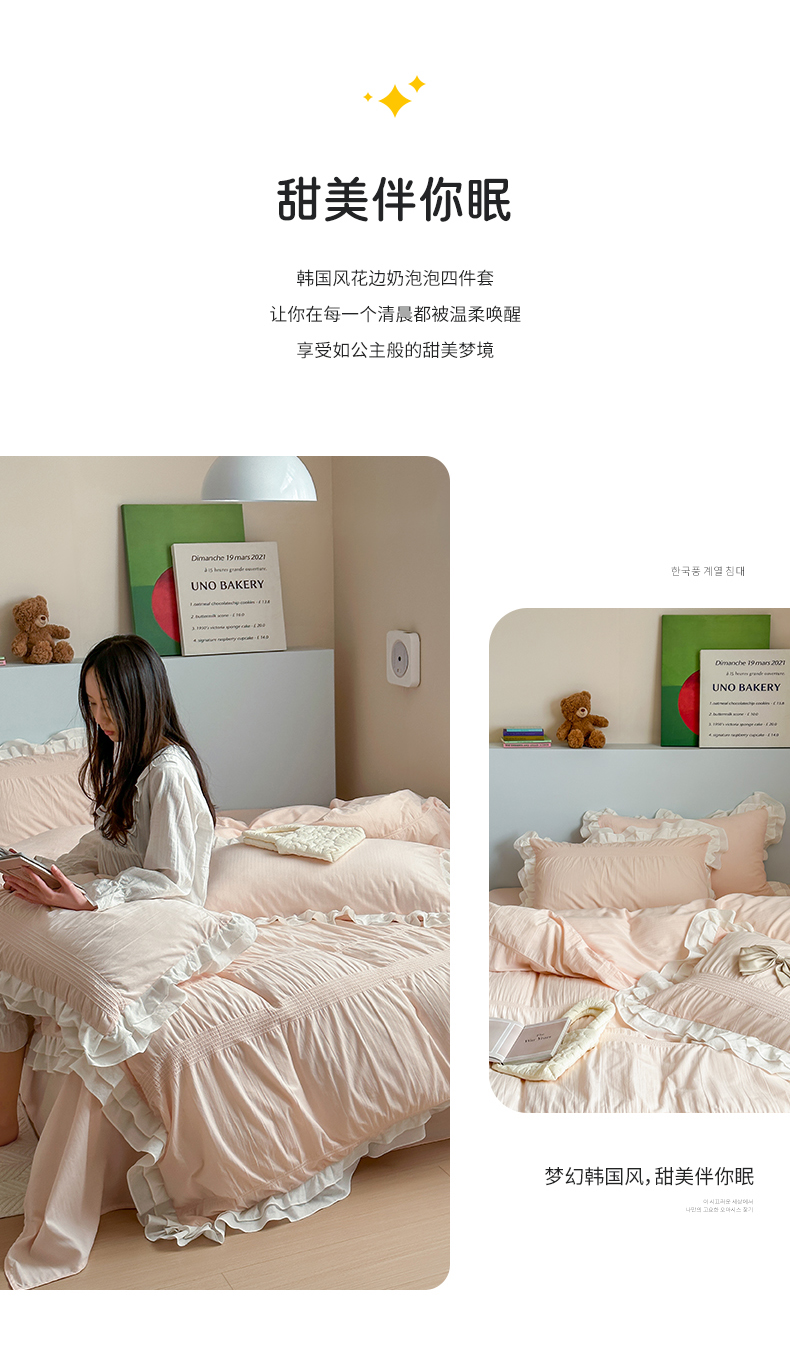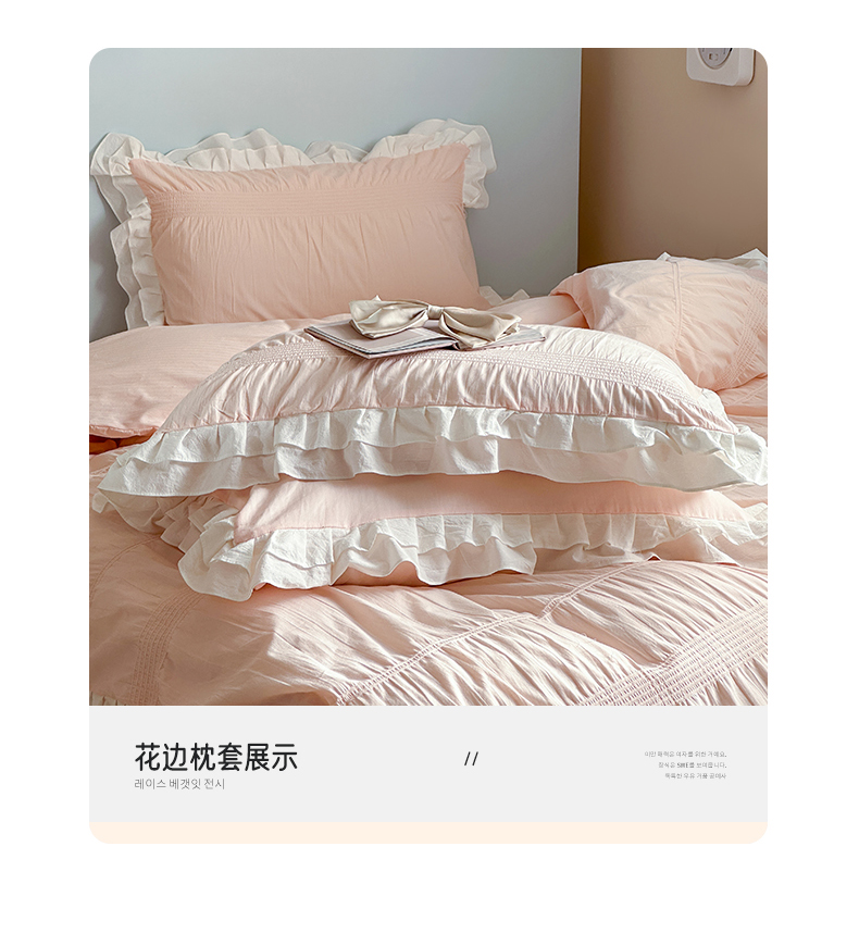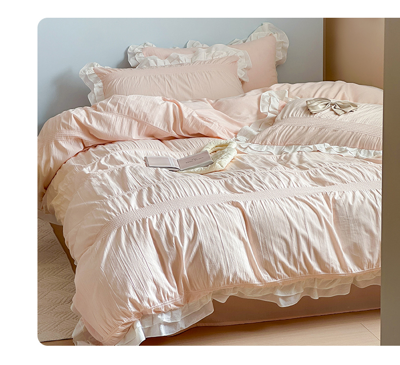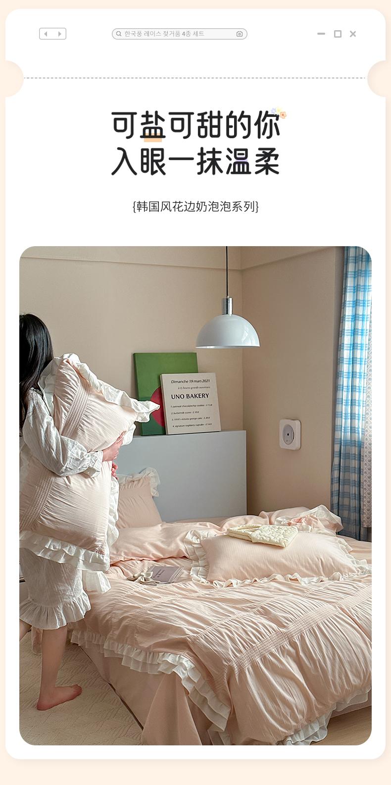 (总)尺素 2024新款韩版ins花边款双人1.8四件套水洗棉泡泡纱被套人字纹床单