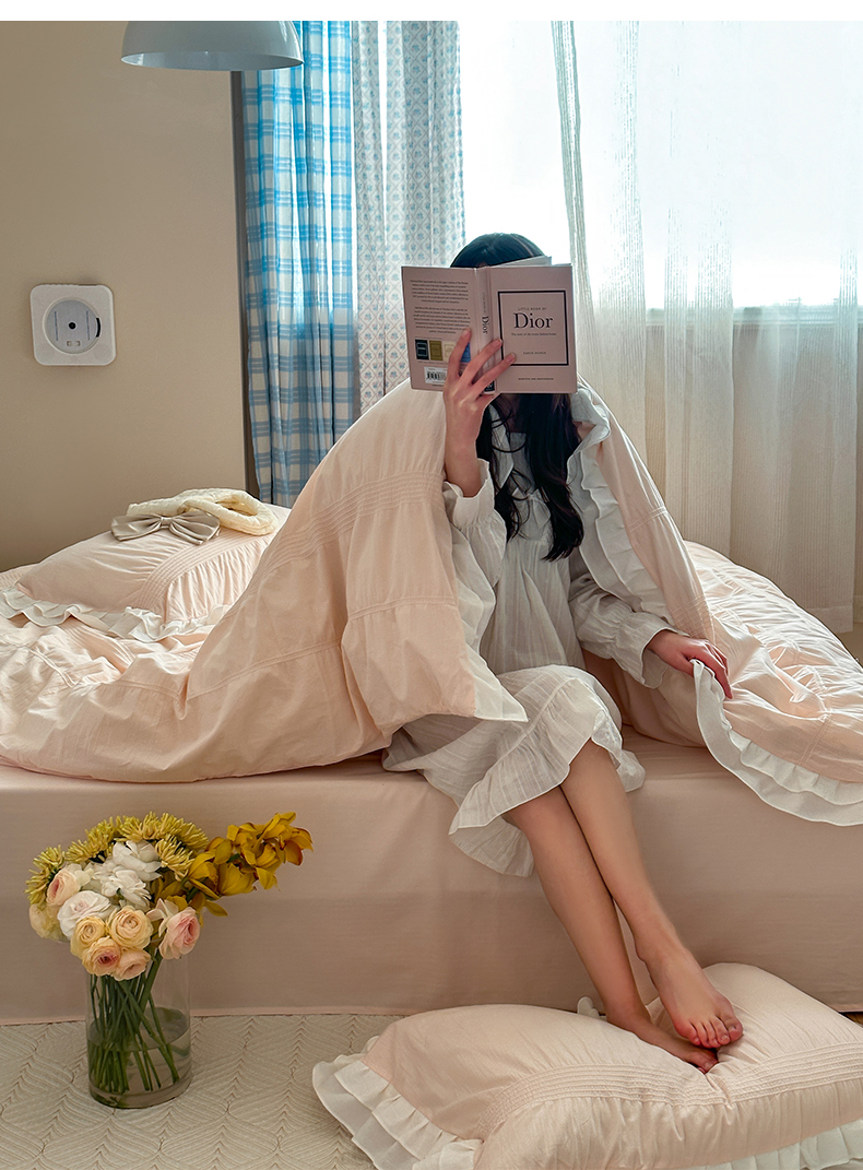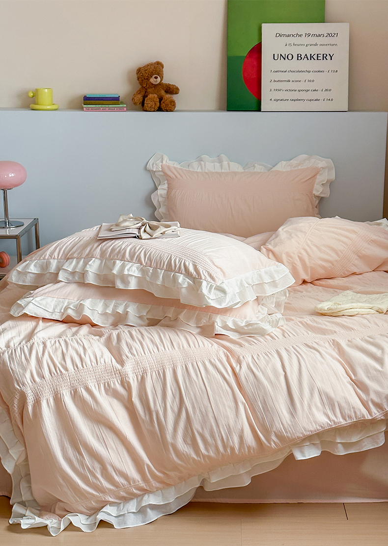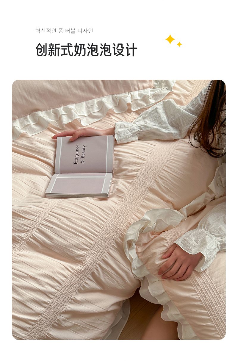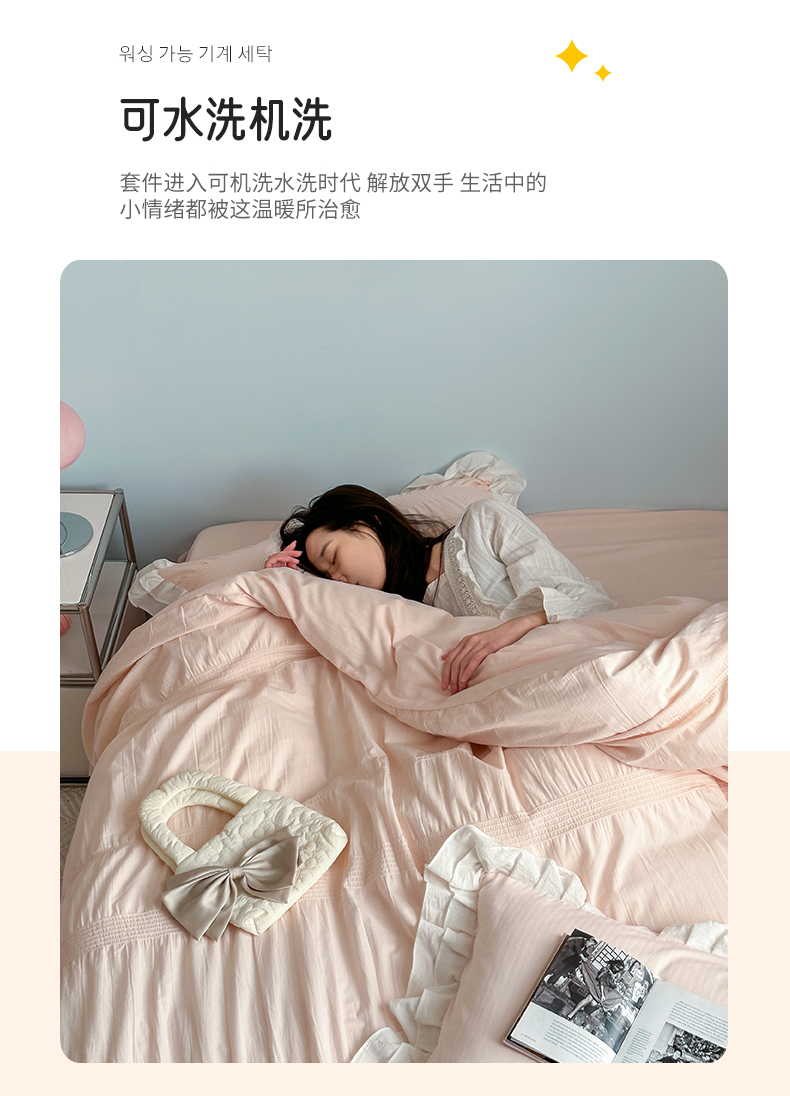 (总)尺素 2024新款韩版ins花边款双人1.8四件套水洗棉泡泡纱被套人字纹床单