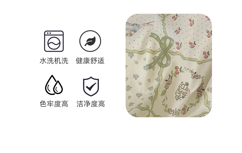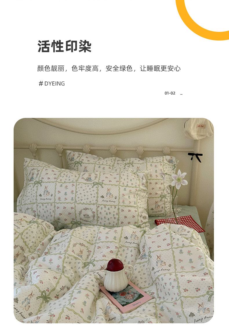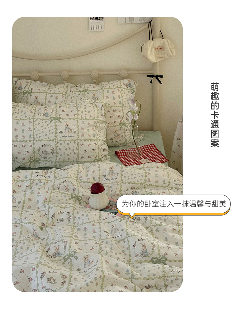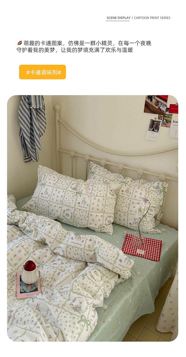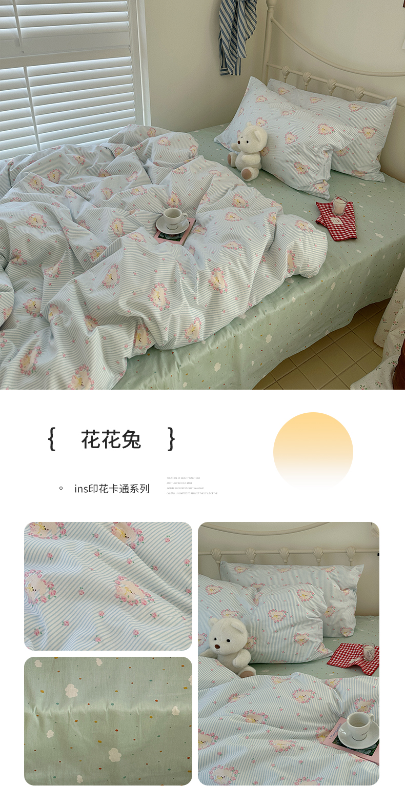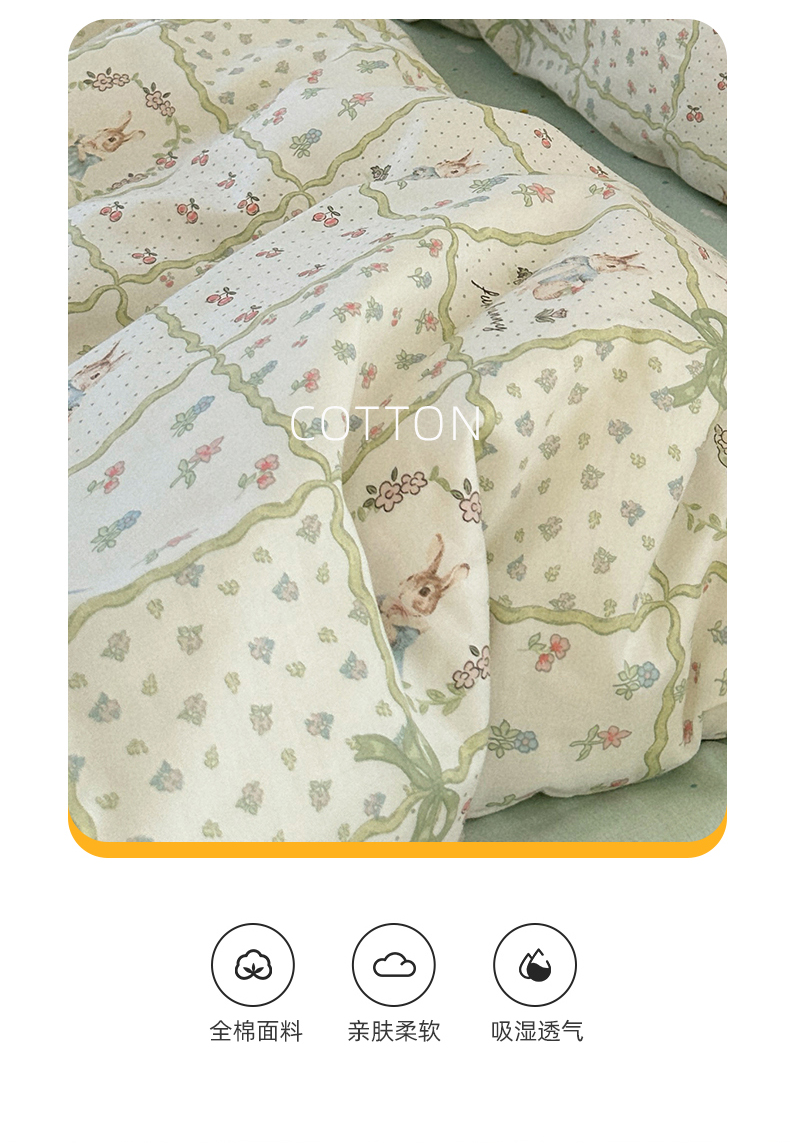 商品名称:尺素 2024新款全棉印花a类卡通儿童四件套纯棉花卉双人被套学生宿舍三件套 春芽
