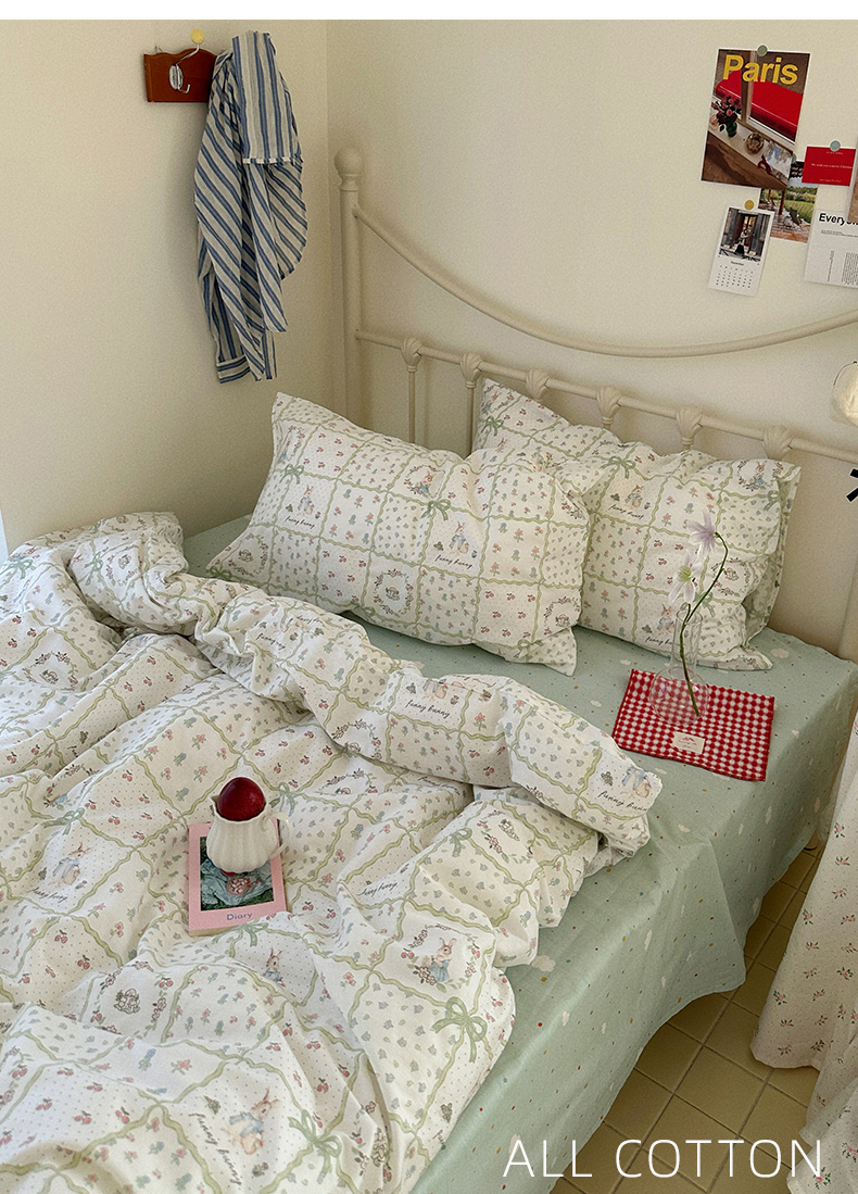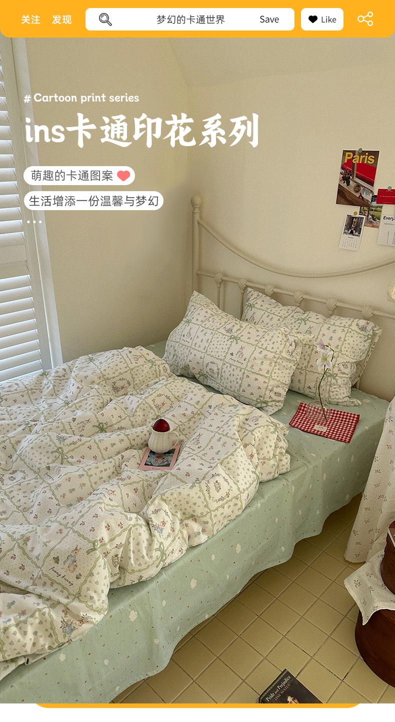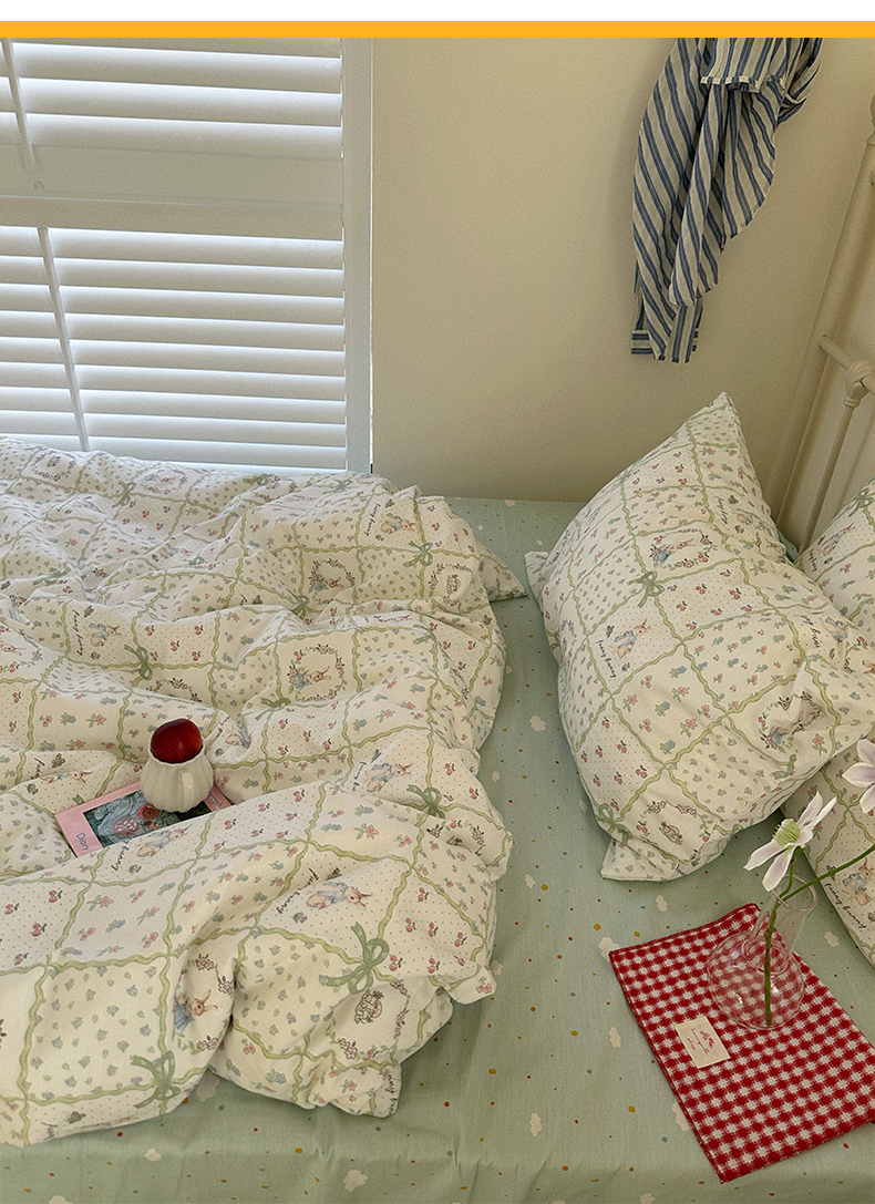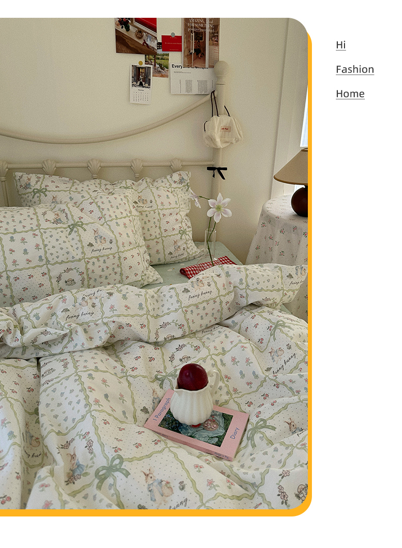 (总)尺素 全棉40支喷气13372韩国ins设计师四件套,花舞,篱落粉,篱落黄,落英,派对,童趣,涂鸦,小粉兔,雪地熊