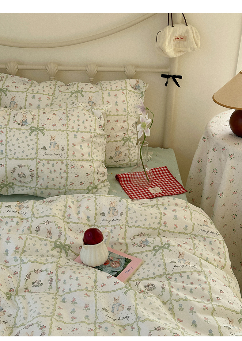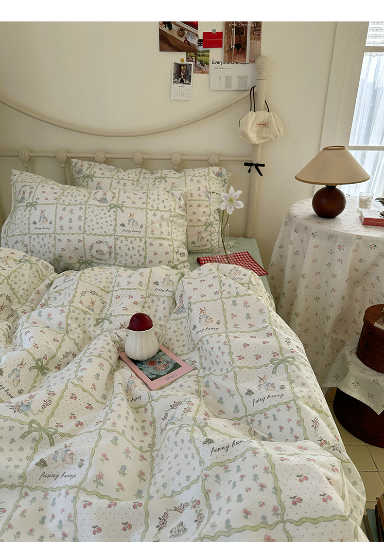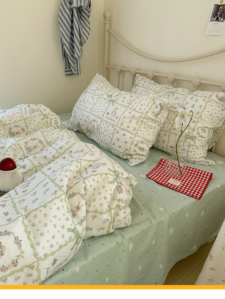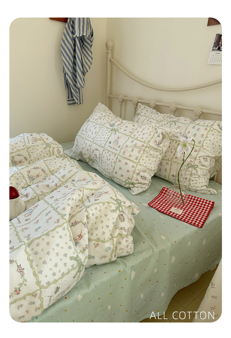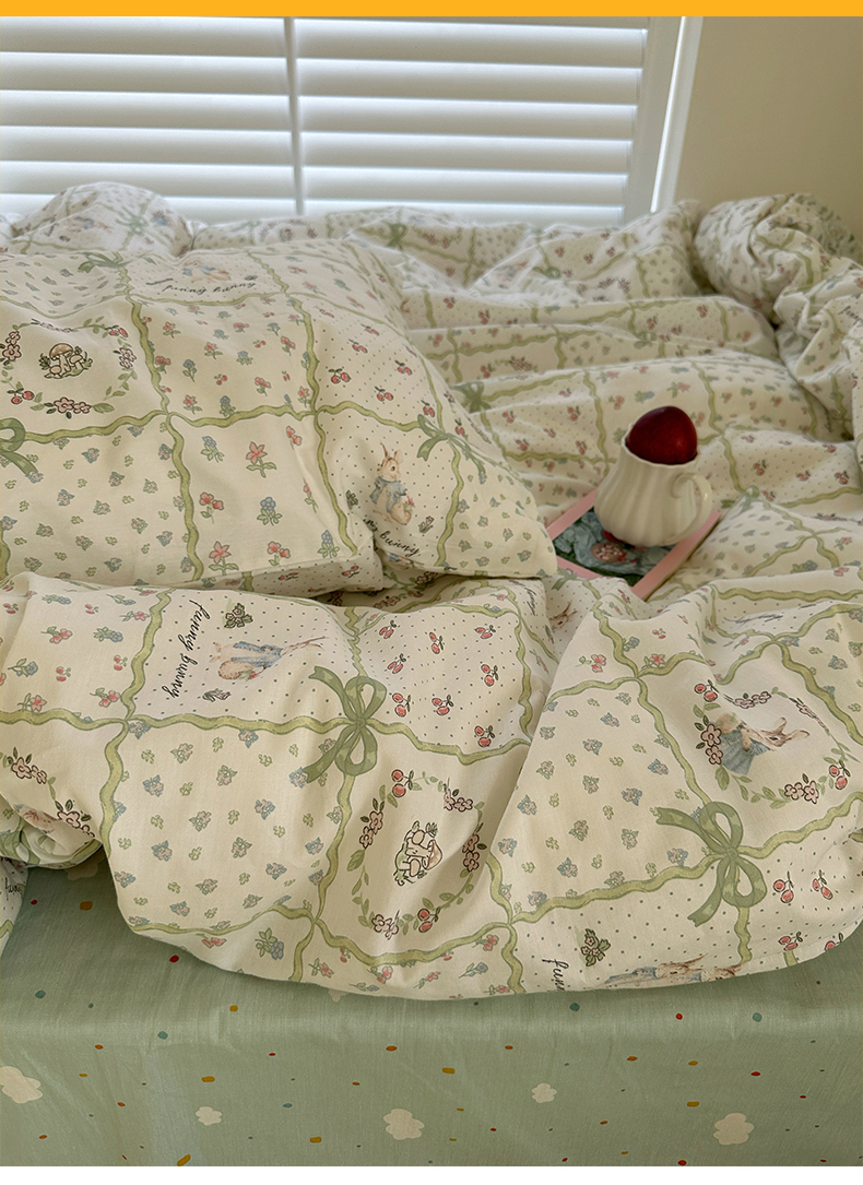 (总)尺素 全棉40支喷气13372韩国ins设计师四件套,花舞,篱落粉,篱落黄,落英,派对,童趣,涂鸦,小粉兔,雪地熊