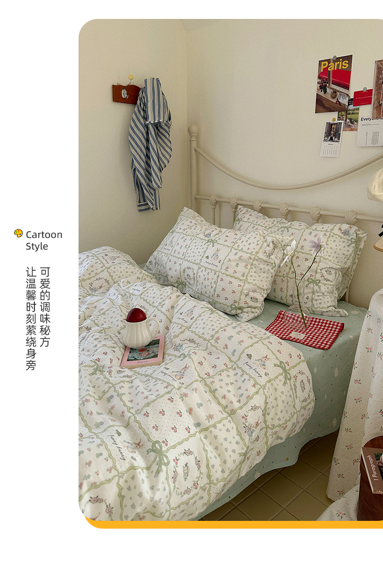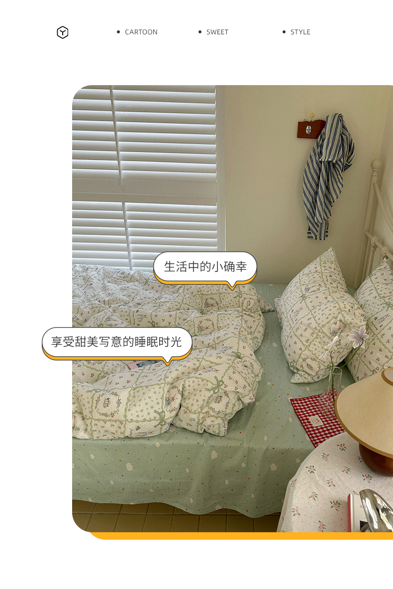 (总)尺素 2025新款纯棉卡通ins风四件套可爱少女风全棉被套纯色1.8床笠加大床单学生1.2三件套,告白熊--浅蓝,格调粉--奶黄,格调粉--桃粉,蓝白情书--浅蓝,清梦--冰沙绿,清梦--浅黄,小熊软糖--焦糖
