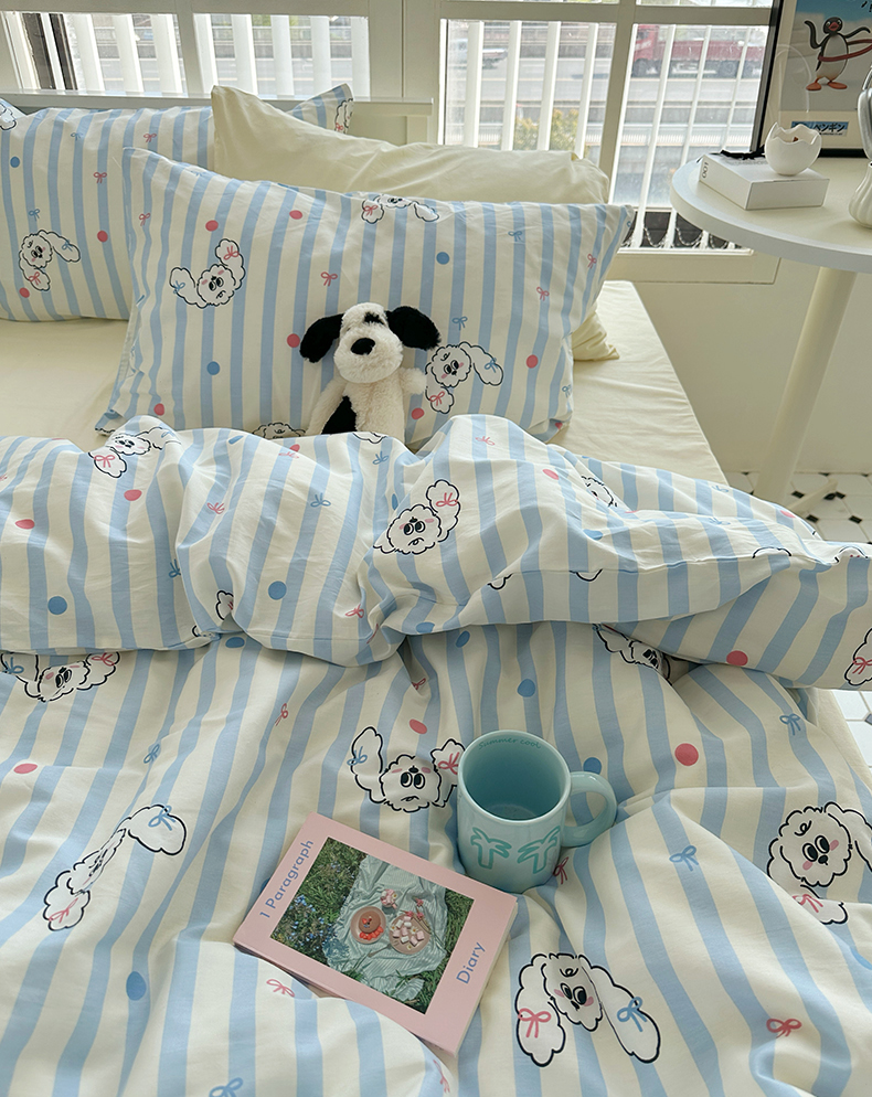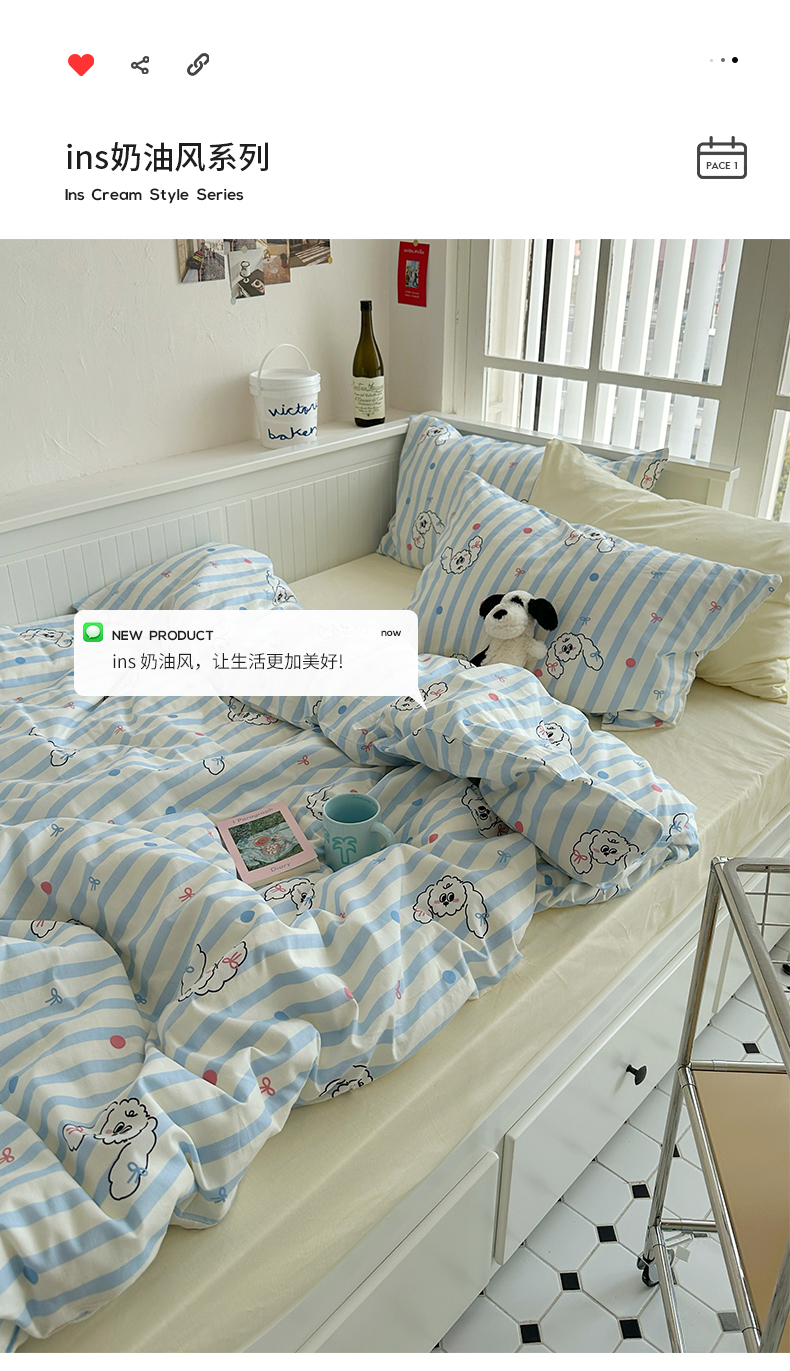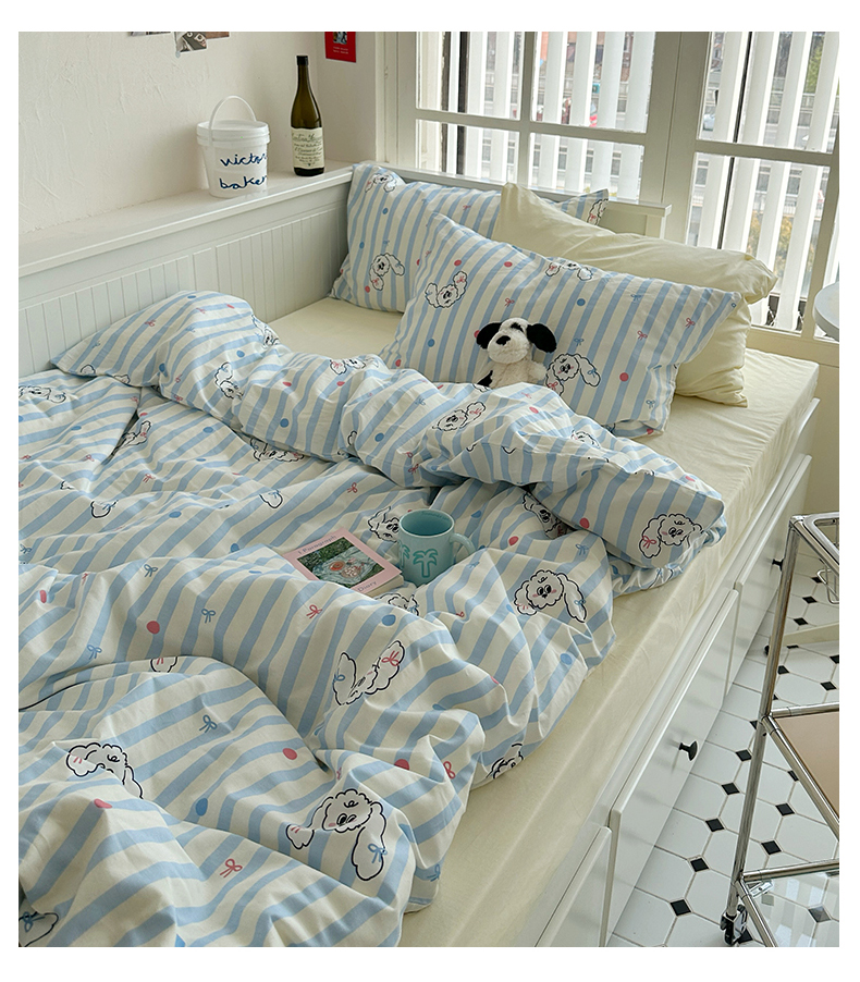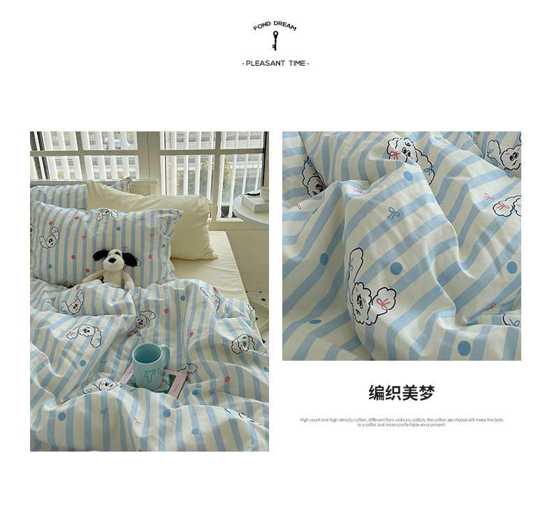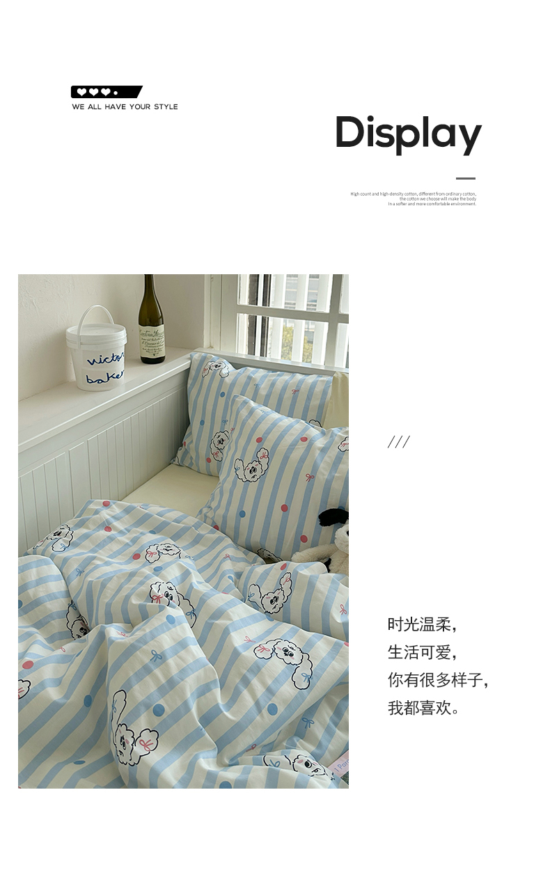 (总)尺素 2025新款纯棉卡通ins风四件套可爱少女风全棉被套纯色1.8床笠加大床单学生1.2三件套,告白熊--浅蓝,格调粉--奶黄,格调粉--桃粉,蓝白情书--浅蓝,清梦--冰沙绿,清梦--浅黄,小熊软糖--焦糖