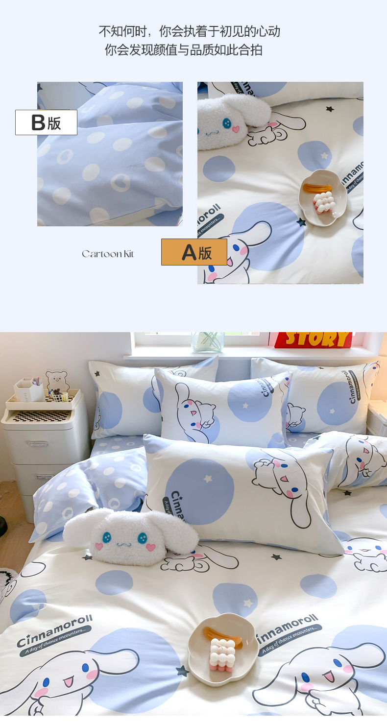 当前位置: 91家纺网 > 商品网购 > 床品套件 > 四件套 > 全棉普通四件套 > 玉元坊 2025年新款三丽鸥系列全棉纯棉简约基础款四件套三件套--大耳狗简约款式 波点玉桂狗【简约款】