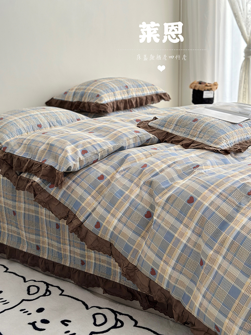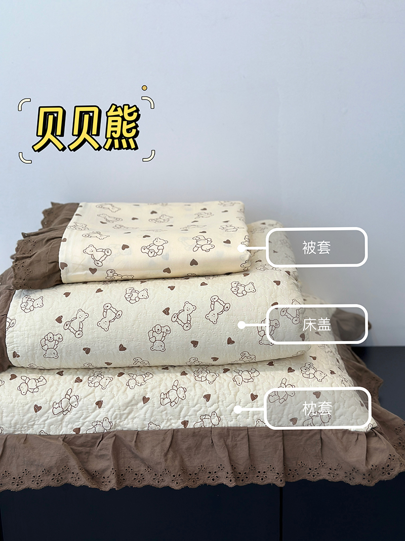 商品名称:佰织鑫家居 2026新款全棉法式砂洗棉花床盖款被套四件套 小美