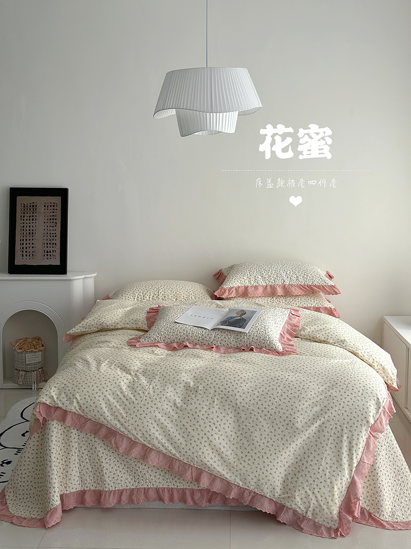 (总)佰织鑫家居 2026新款韩系花边款全棉砂洗多功能四件套夏被四件套(会员-5),洛伊,南山雏菊,思意绵绵,宛如初见,小柔花夕,悠悠花园