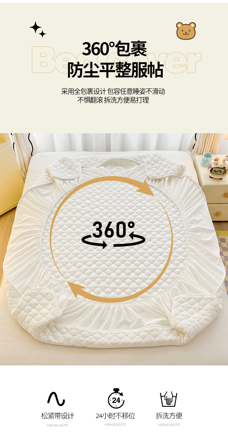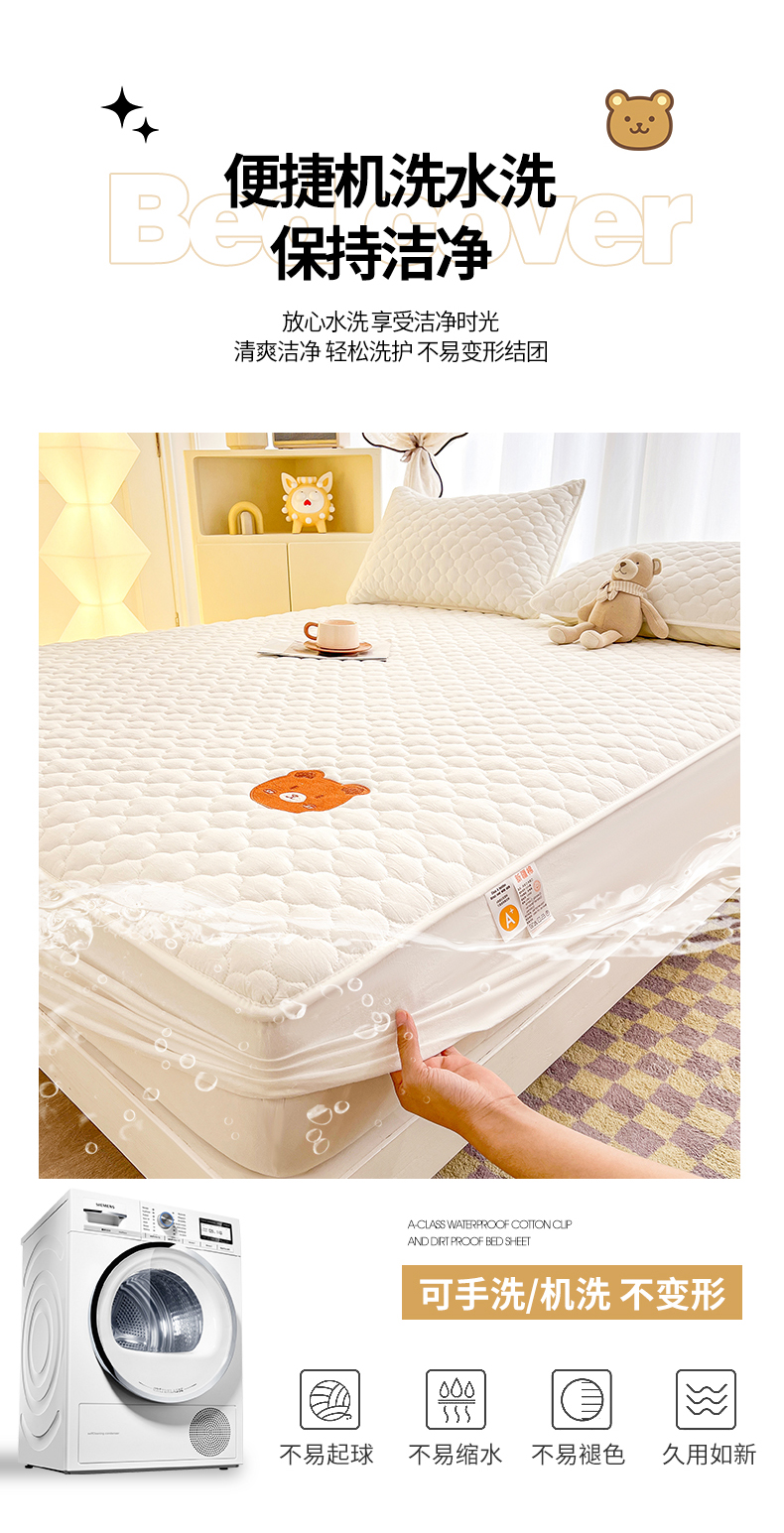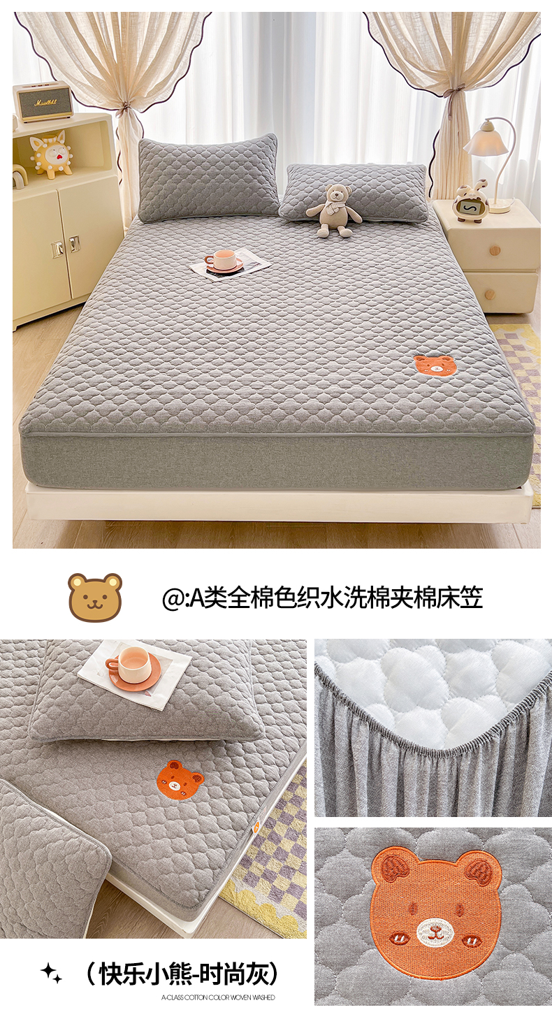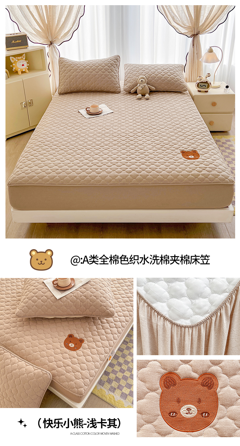 (总)伊人坊 2025新款A类水洗棉六面全包棉花夹棉床笠,爱心粉,爱心灰,爱心咖色,爱心米白,五星粉,五星灰,五星咖色,五星米白