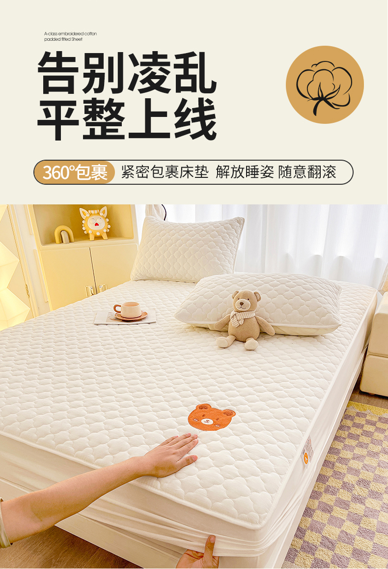 (总)伊人坊 2025新款全棉色织水洗棉夹棉床笠床垫保护套刺绣款