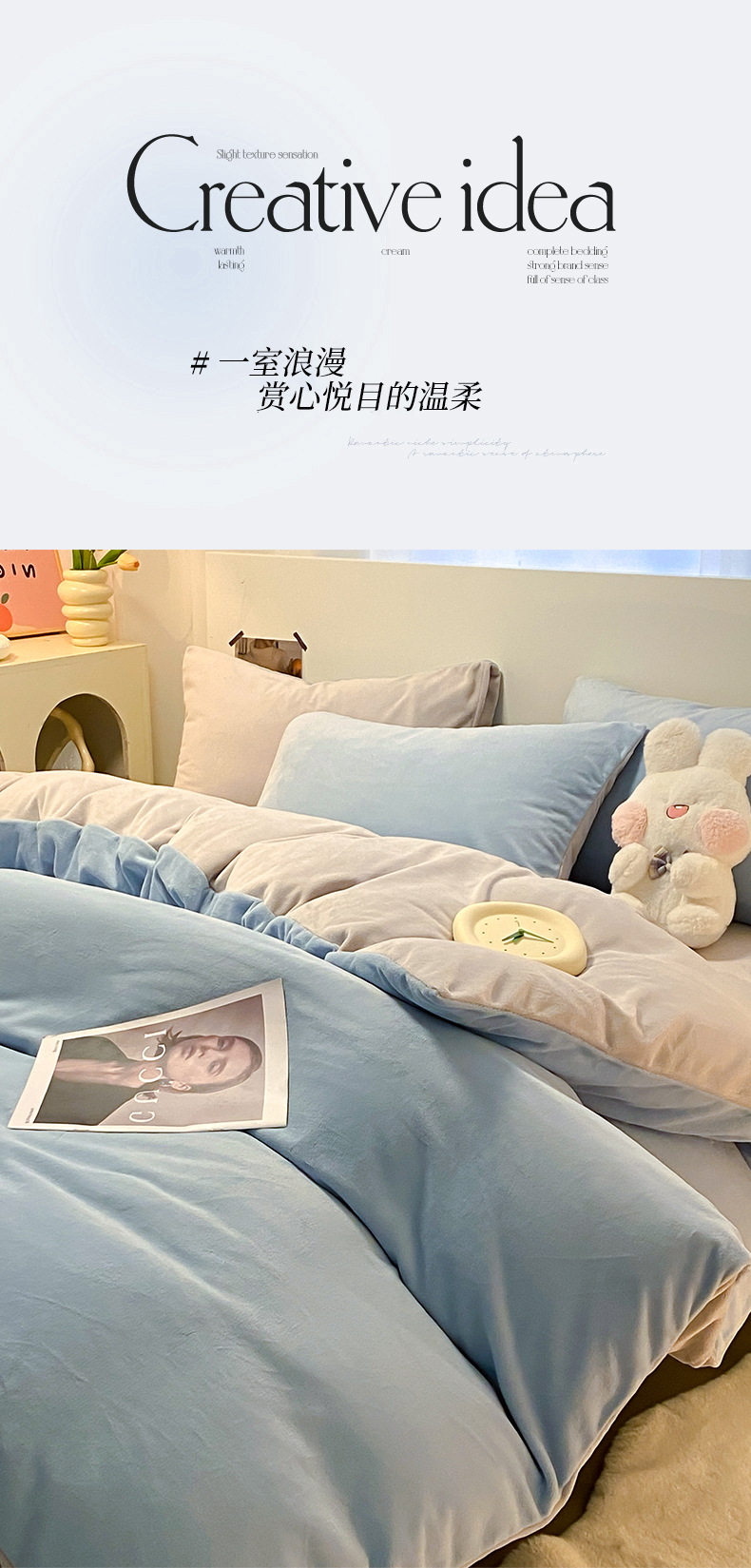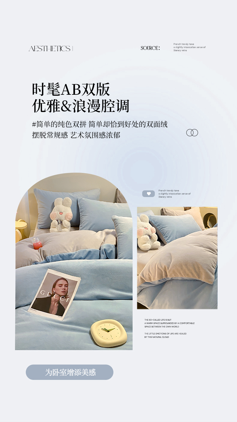 当前位置: 91家纺网 > 商品网购 > 床品套件 > 四件套 > 牛奶绒四件套 > (买家秀爆款不断货)A类母婴级简约纯色双拼牛奶绒四件套提花绒珊瑚绒四件套雪花绒四件套纯色牛奶绒四件套 婴儿蓝+浅灰