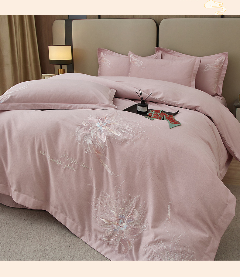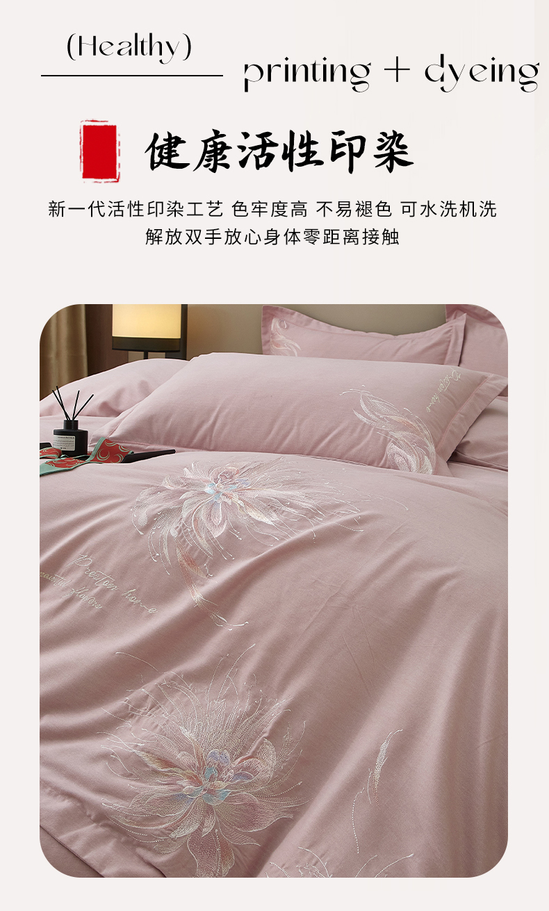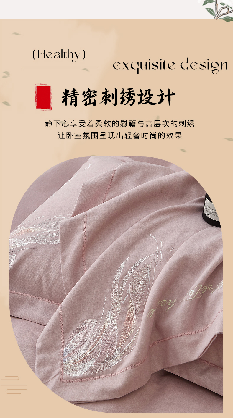 (总)雲归梦 2021新款全棉生态磨毛刺绣四件套,慕思-橙色,慕思-粉紫,慕思-灰,慕思-米黄,慕思-青绿,慕思-天蓝