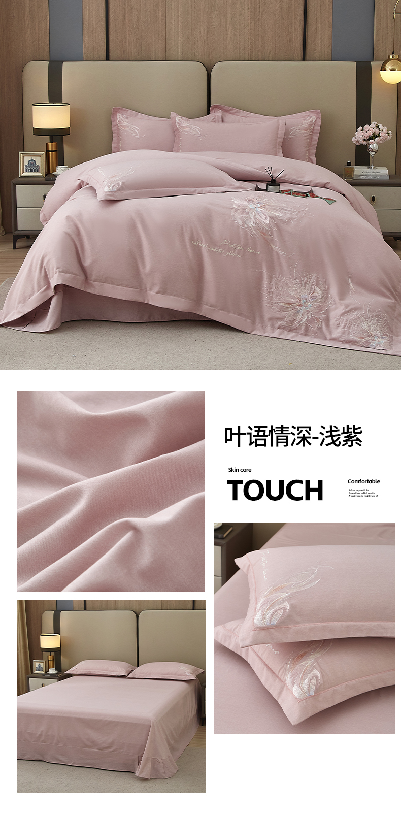 商品名称:雲归梦 2025新款全棉加厚磨毛绣花宽边工艺四件套-叶语情深 叶语情深-浅紫
