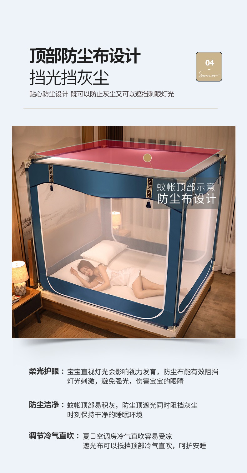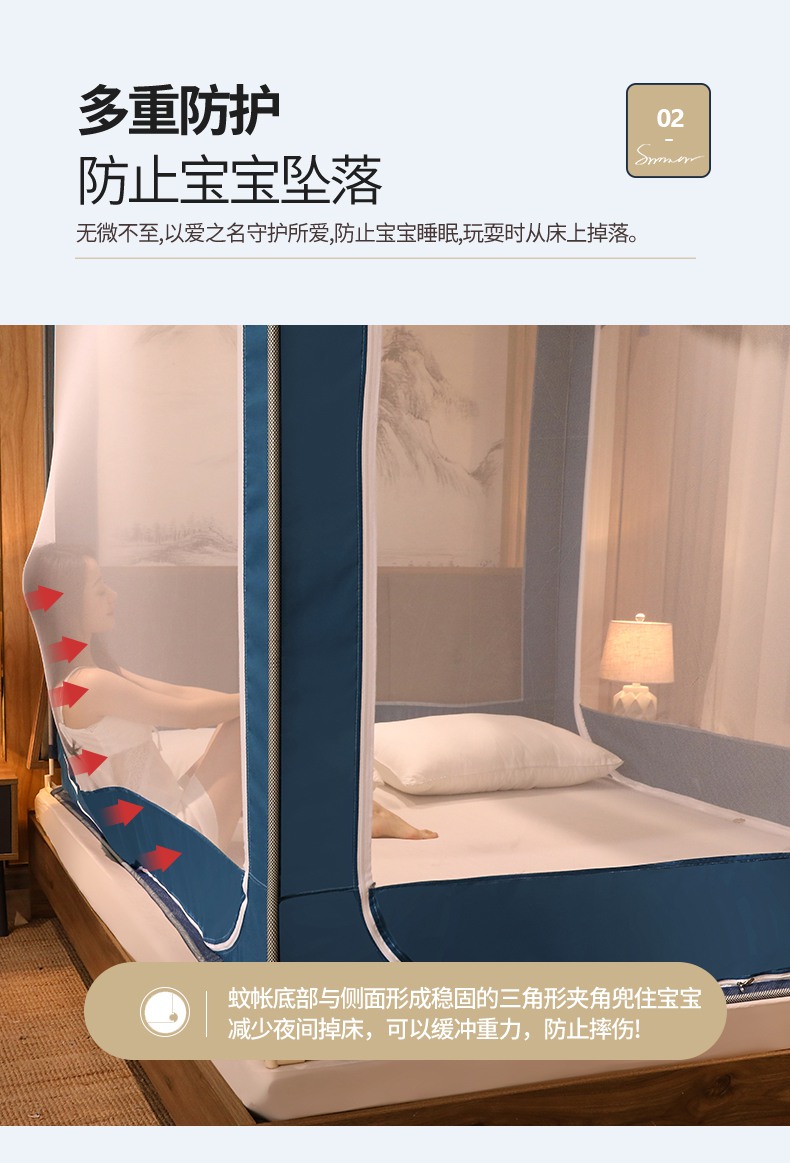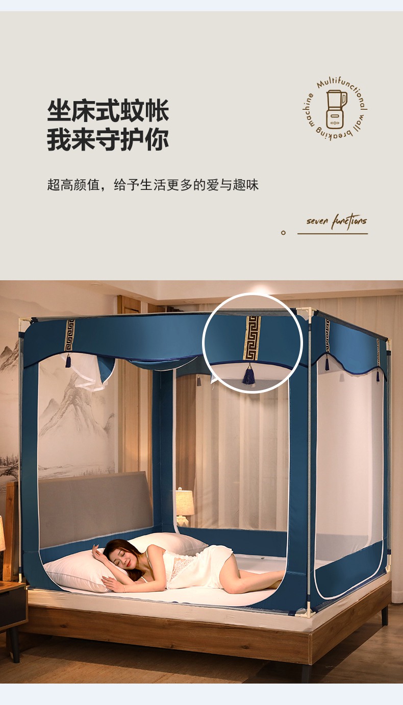 商品名称:青竹苑 2025新款外穿中式坐床全底防摔蚊帐 灰色