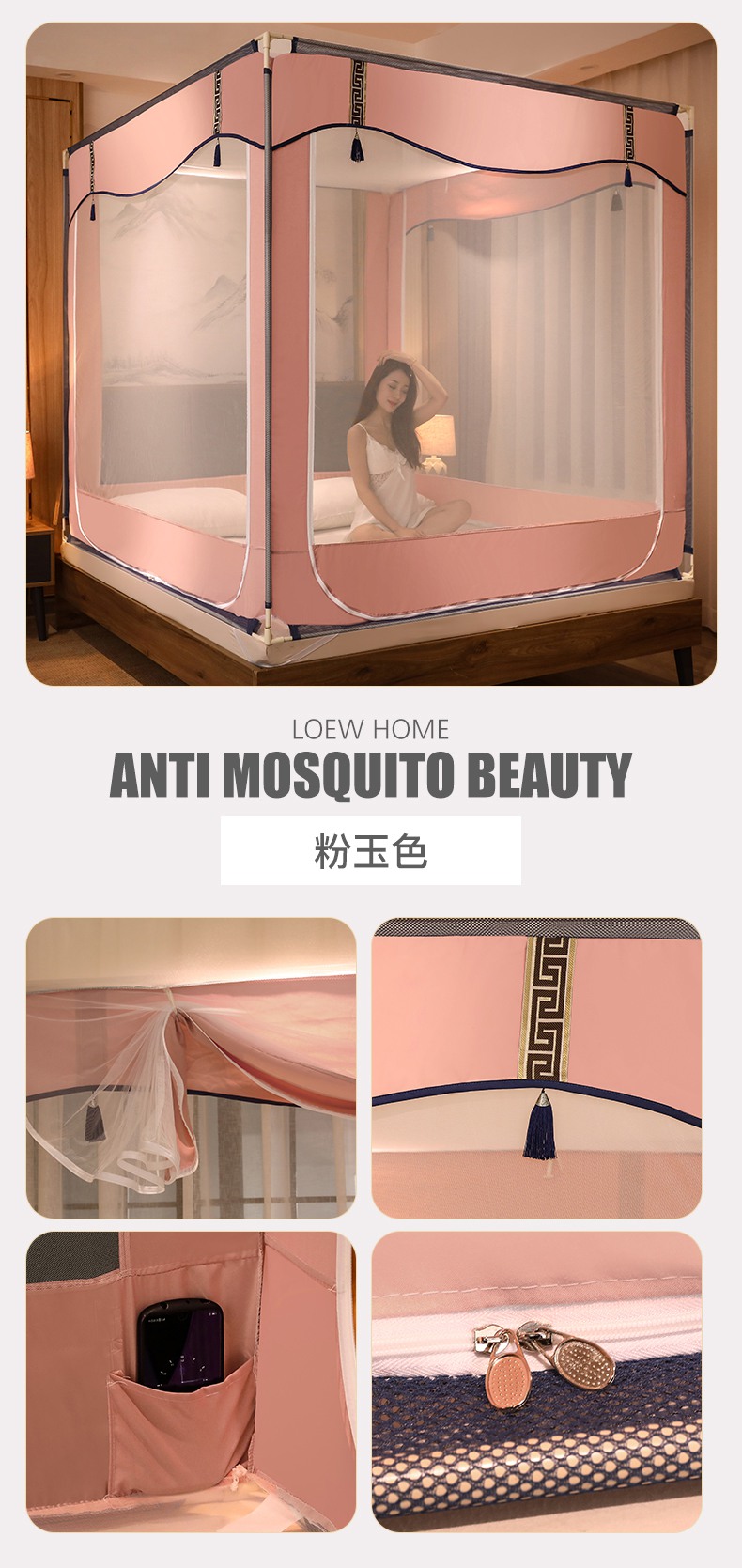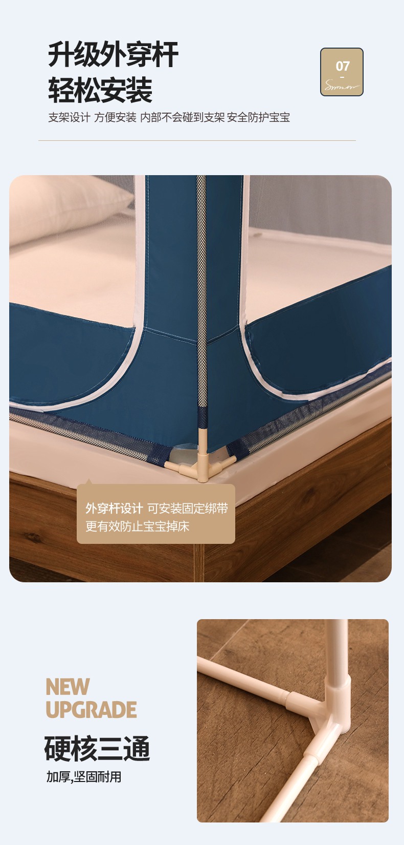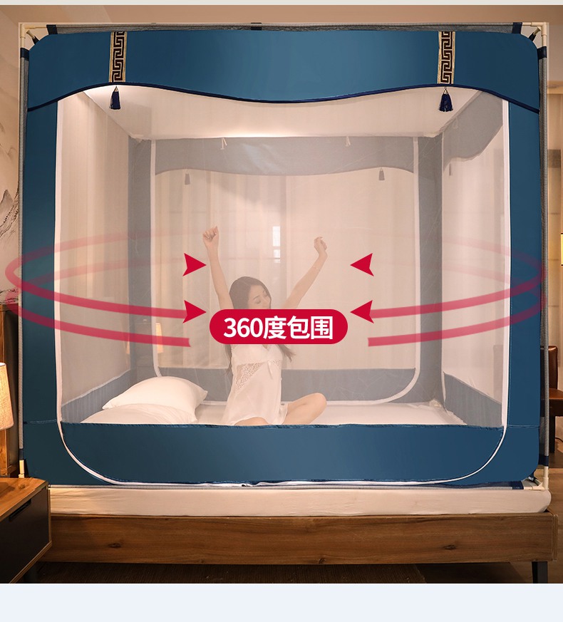 商品名称:青竹苑 2025新款外穿中式坐床全底防摔蚊帐 灰色