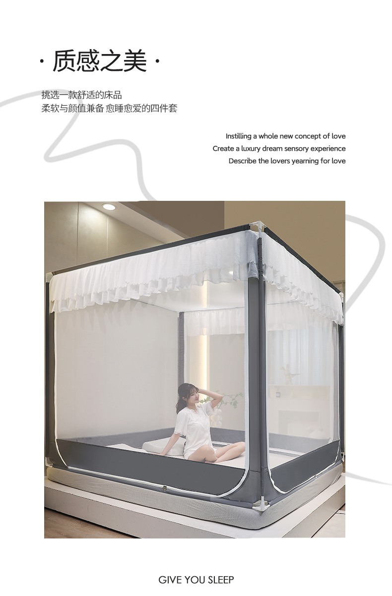 (总)青竹苑 2026新款简约落地蚊帐,落地简约-冰莓蓝 ,落地简约-奶杏 ,落地简约-柔白 ,落地简约-鼠尾草绿 ,落地简约-樱花粉