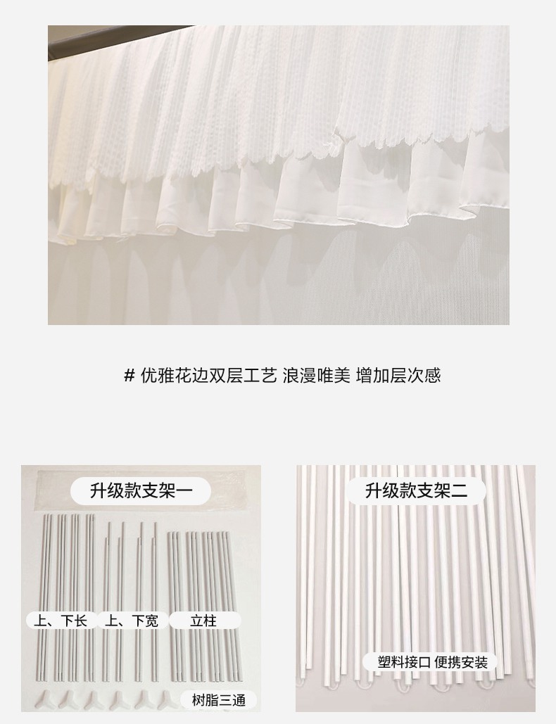 (总)青竹苑 2026春夏新款双层纱撞色落地蚊帐,孔雀蓝,薄荷绿,宝蓝,嫩粉色,柠檬黄,太妃紫,香槟色,玉色