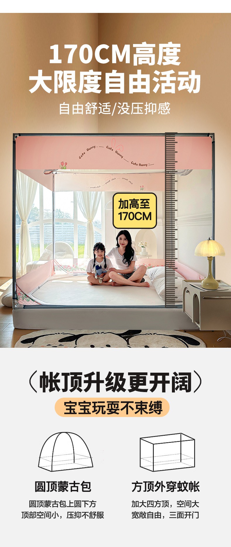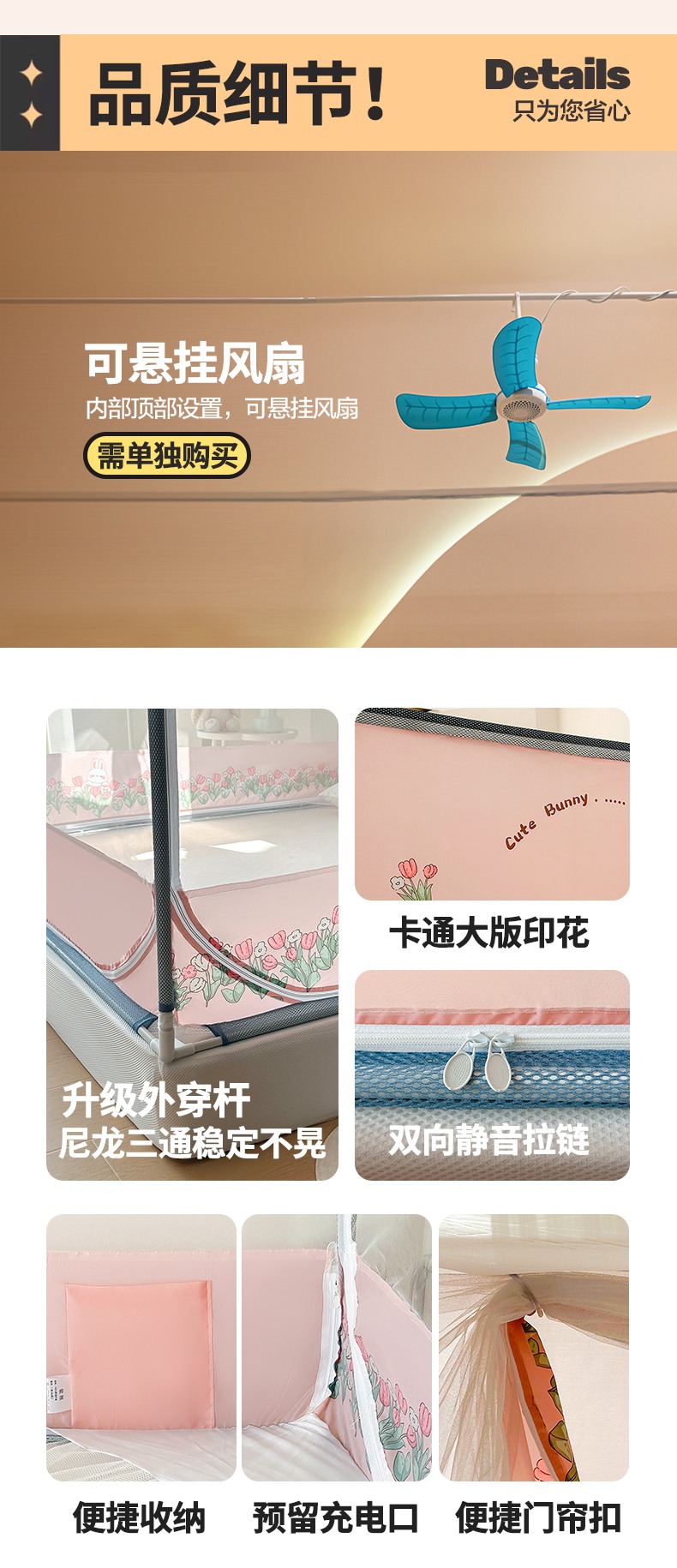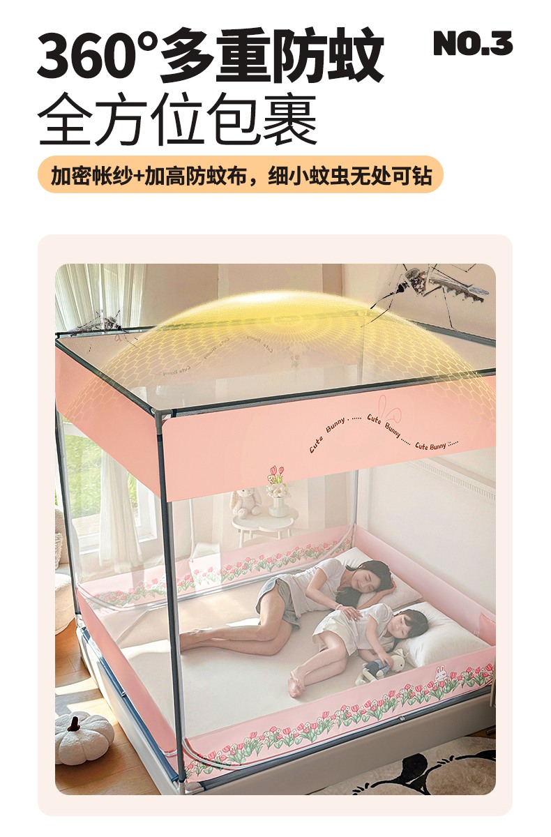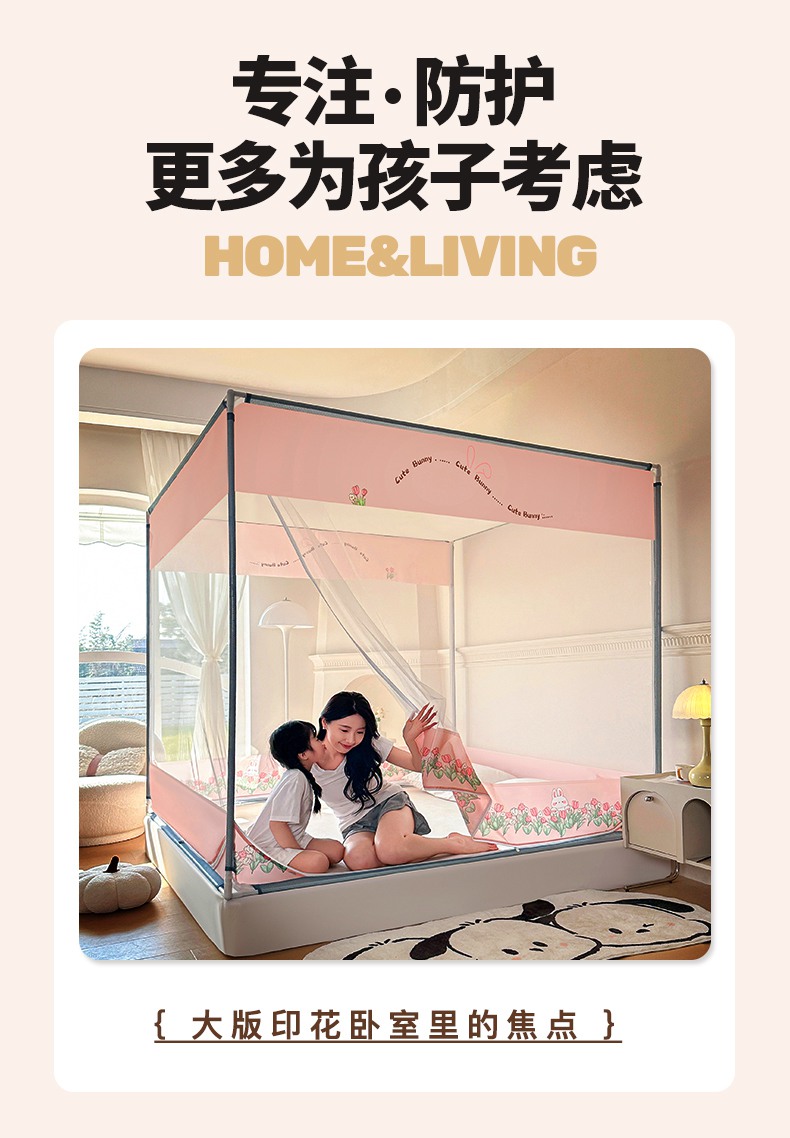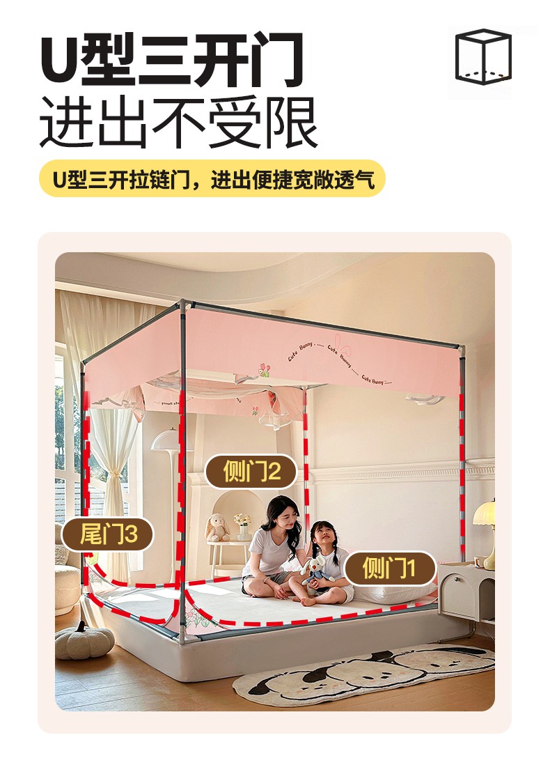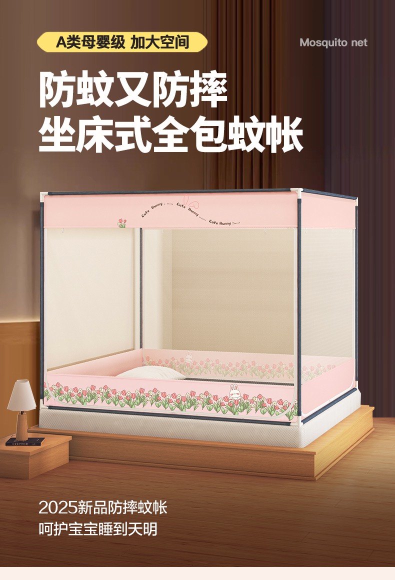 当前位置: 91家纺网 > 商品网购 > 床上用品 > 蚊帐 > 坐床式蚊帐 > 青竹苑 2025新款三门大版上下布印花外穿坐床蚊帐床笠式防摔方帐 花丛兔兔
