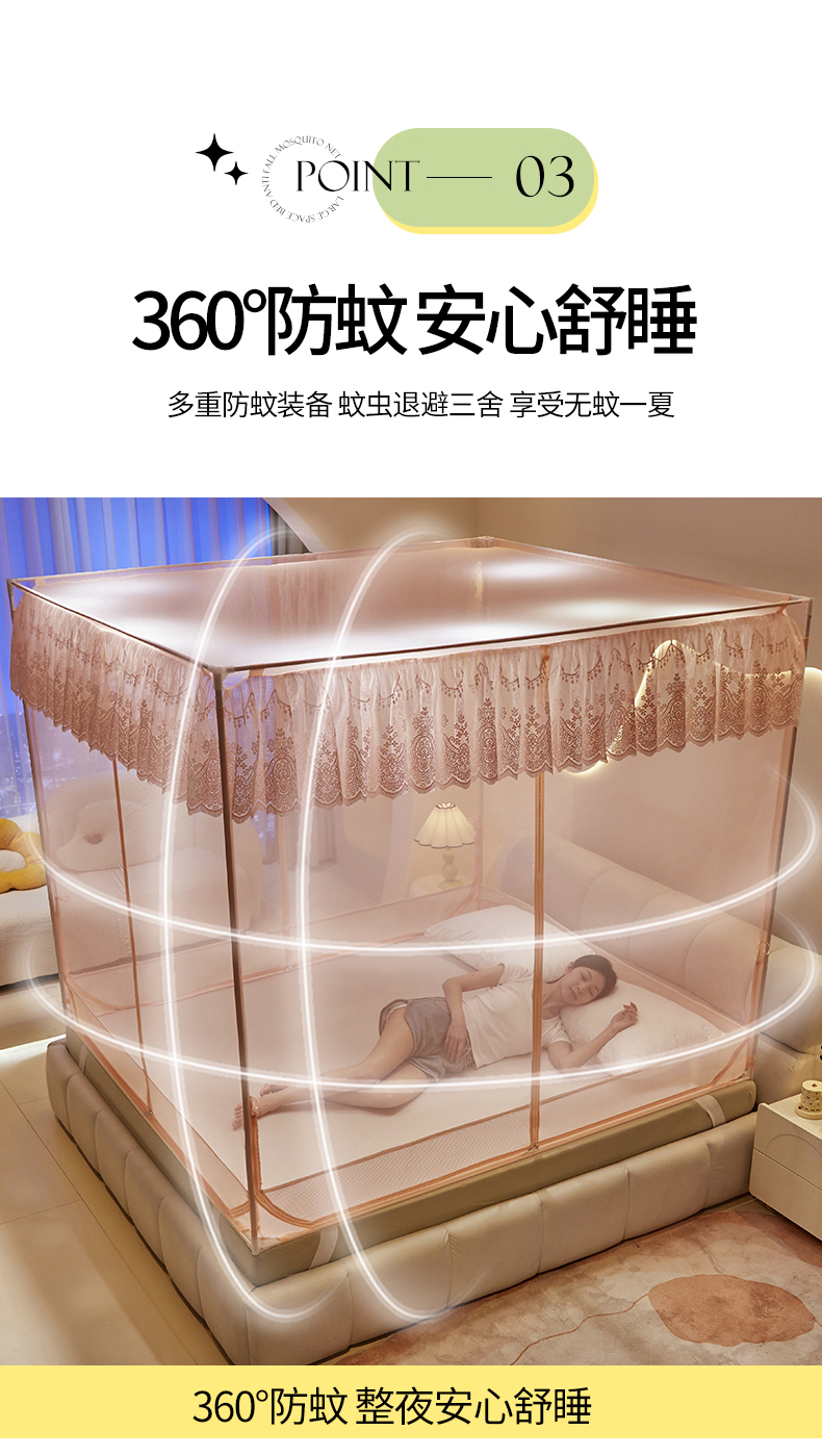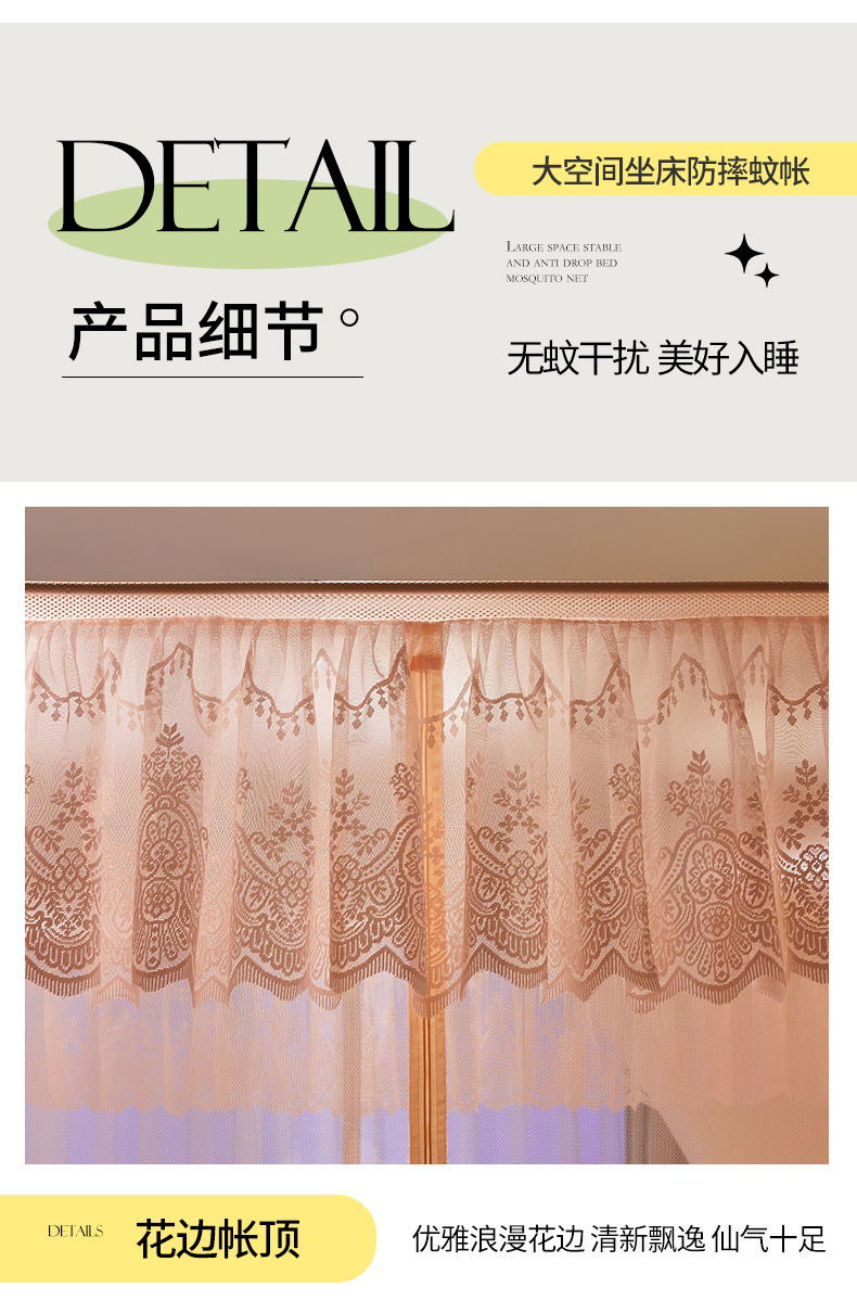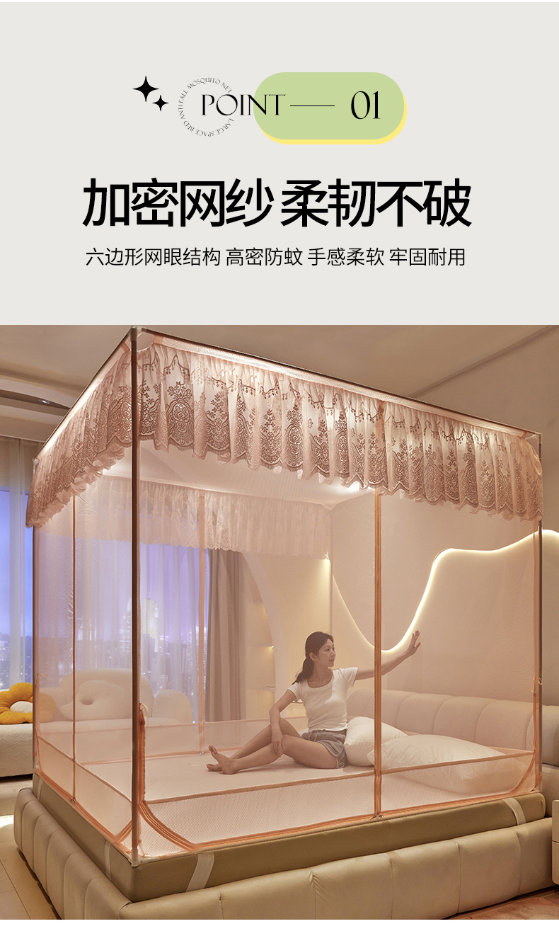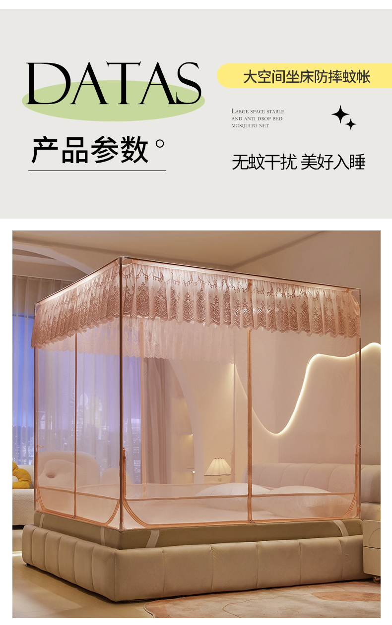 当前位置: 91家纺网 > 商品网购 > 床上用品 > 蚊帐 > 坐床式蚊帐 > 青竹苑 2025新款花边TU拉链外穿全底坐床蚊帐 香妃玉