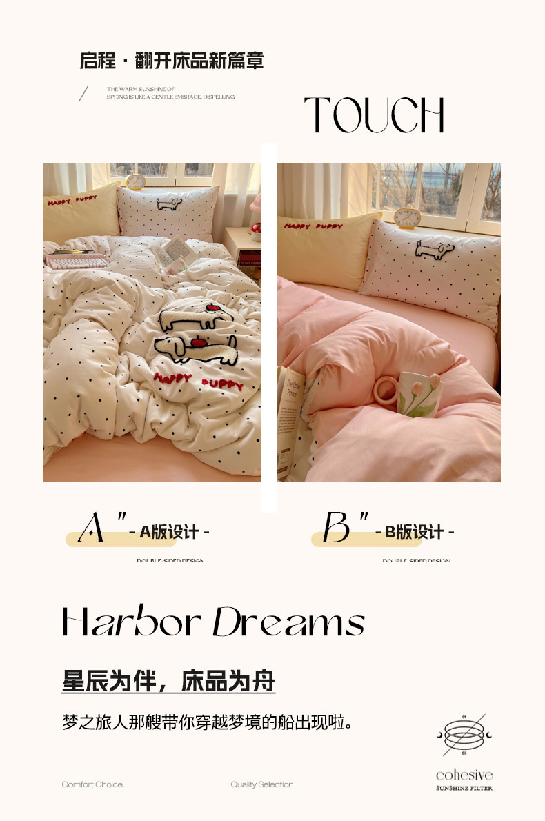 (总)丽涵家纺 2025秋冬新品混搭波点牛奶绒四件套三件套-拍摄风格二,波点-粉色,波点-蓝色,波点-奶白,波点-紫色