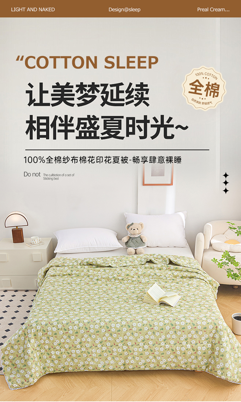 商品名称:金泰莱 2025新款里外全棉夏被纱布夏被棉花被子夏凉被纯棉夏被空调被 夏至