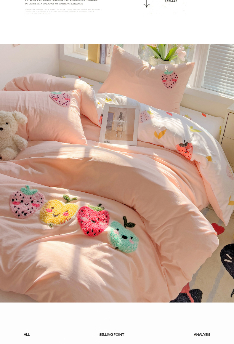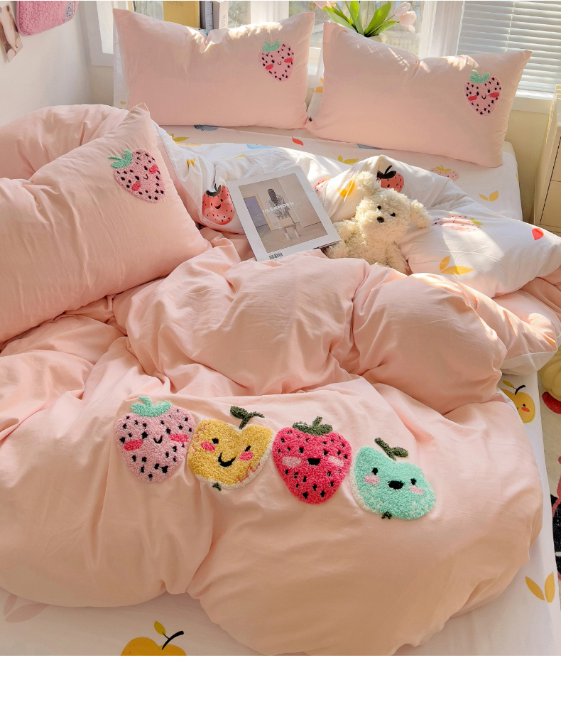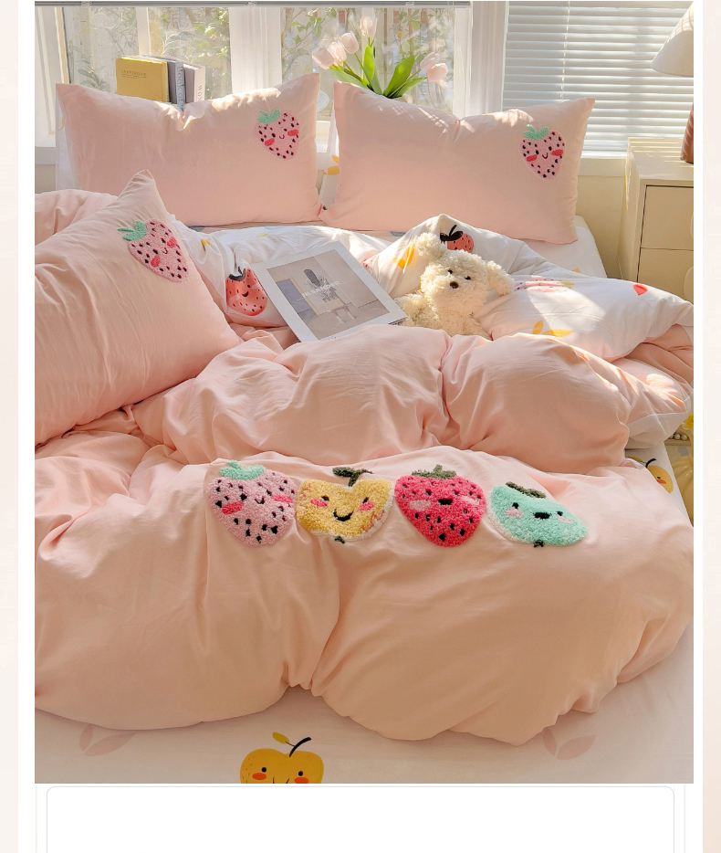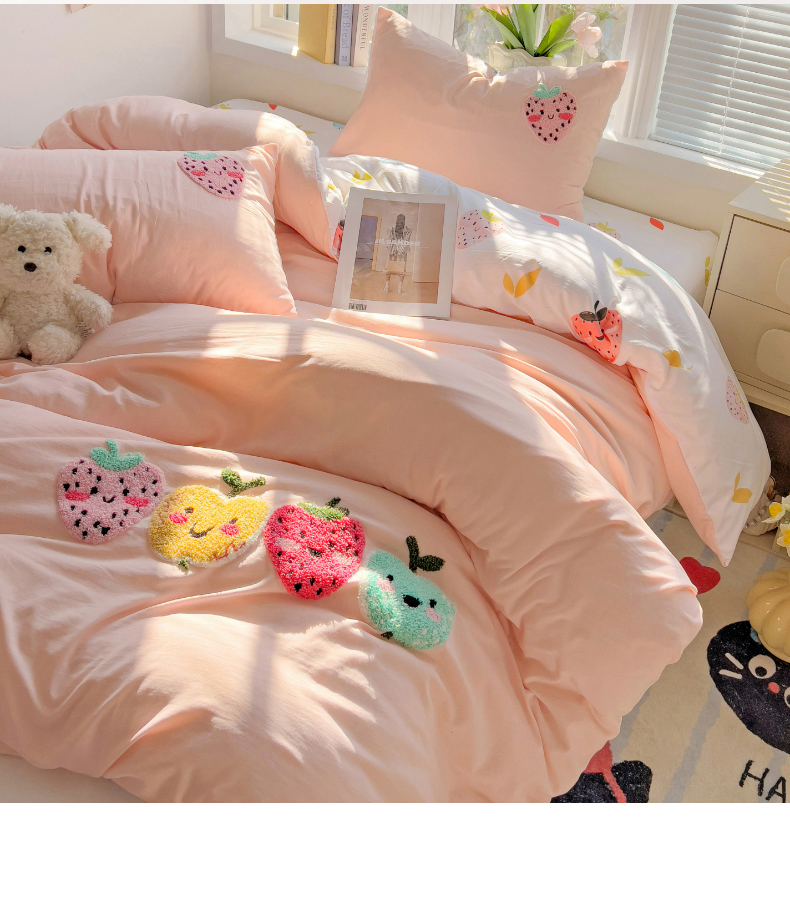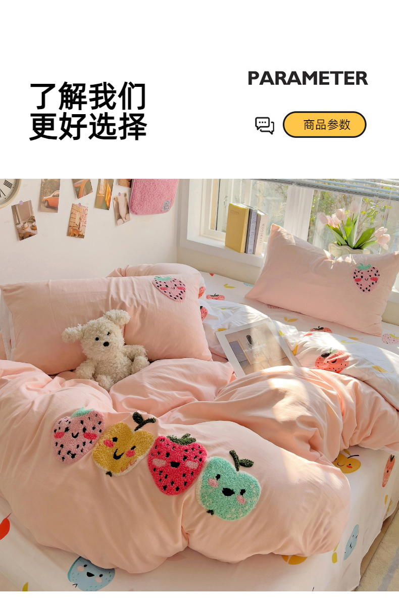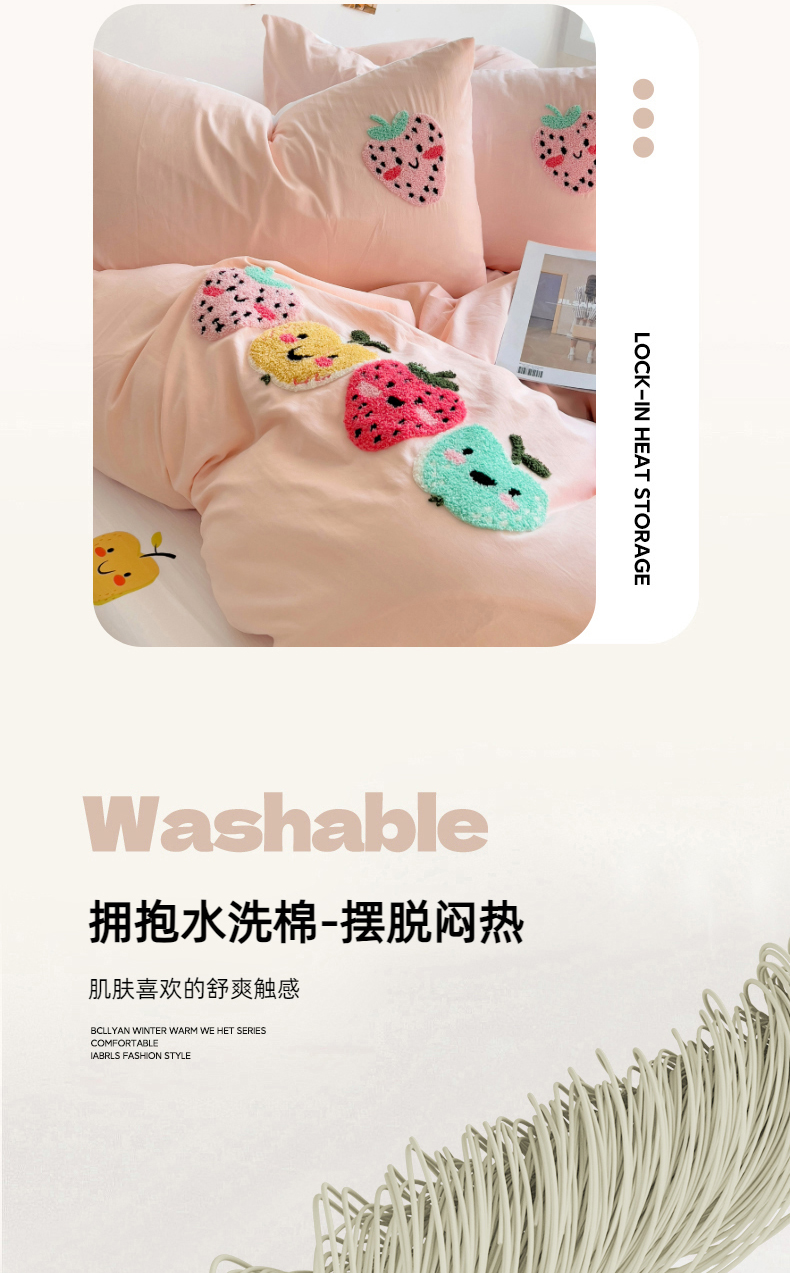 当前位置: 91家纺网 > 商品网购 > 床品套件 > 四件套 > 水洗棉四件套 > 凯洛奇 2025新款1卡通水洗棉印+绣毛巾绣四件套 莓果乐园