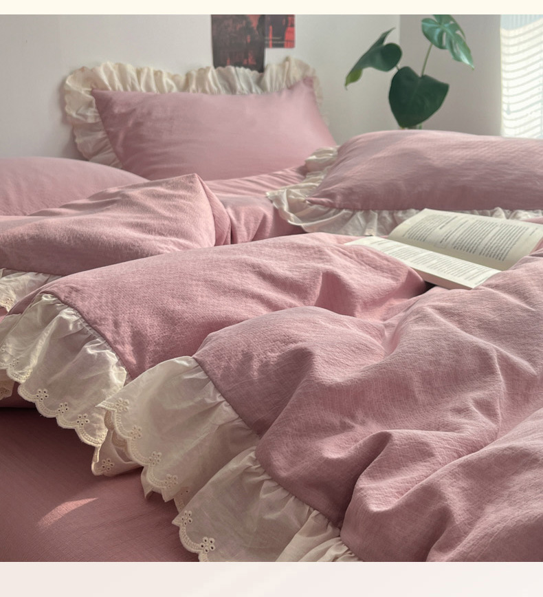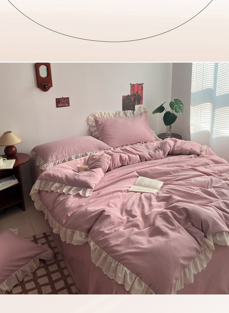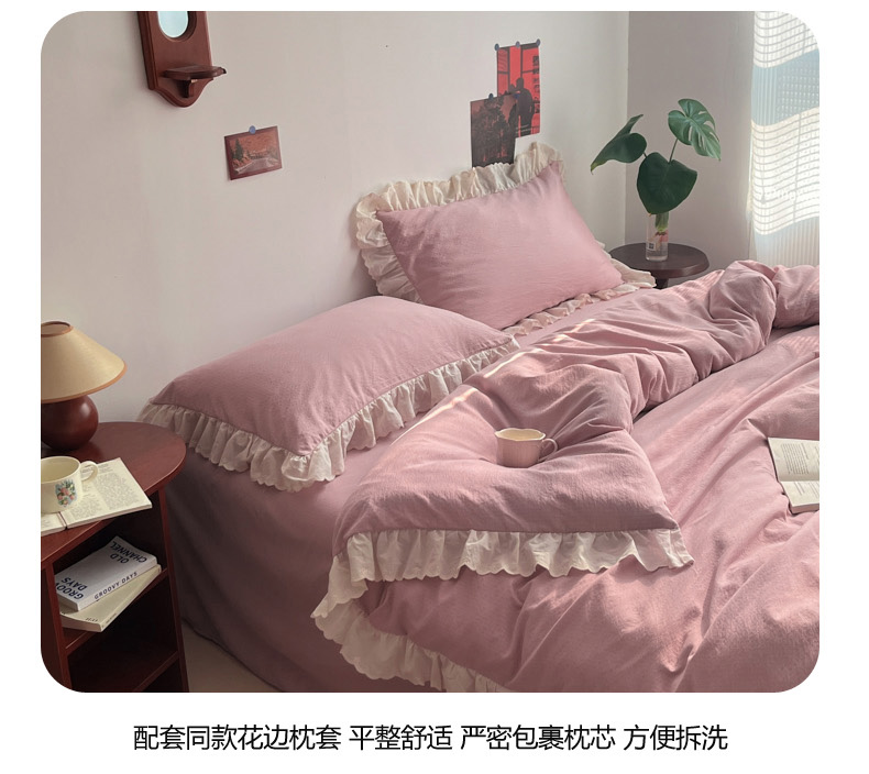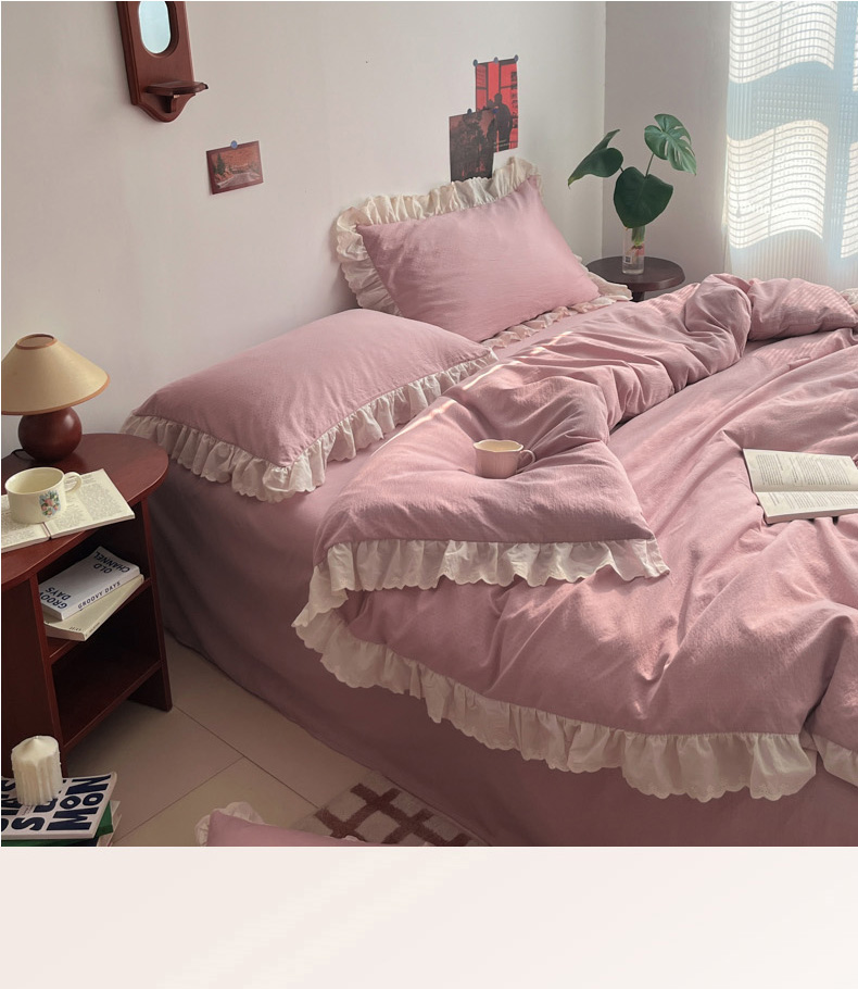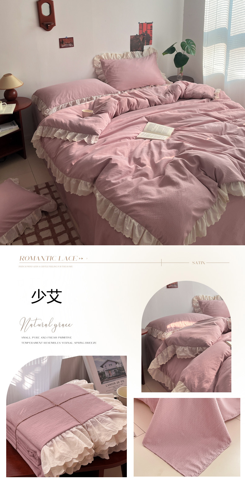 总慕澄家纺 2022新款韩版泡泡纱花边四件套(手机实拍),公主粉,极致灰,梨花白,梨花白+灰,奶油黄,宁静蓝,优雅紫