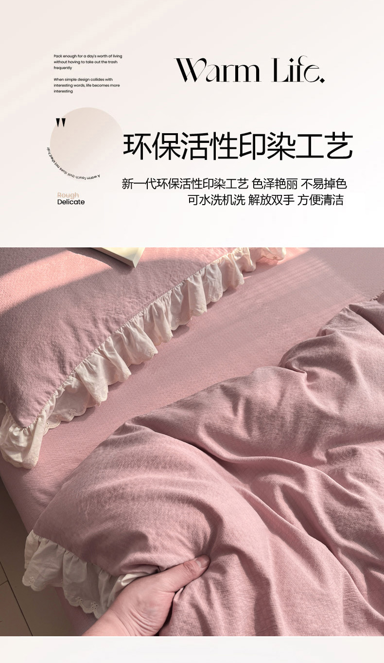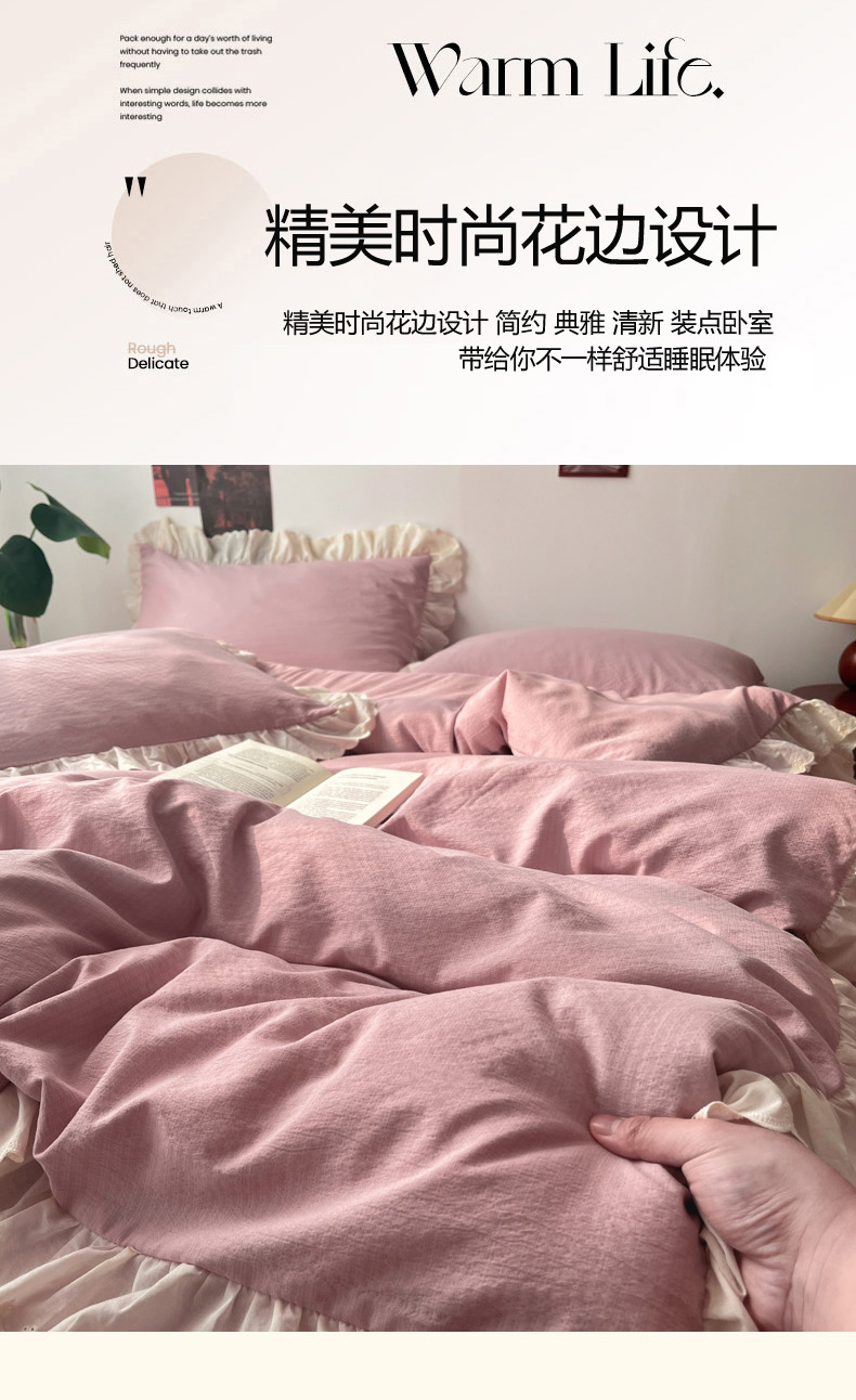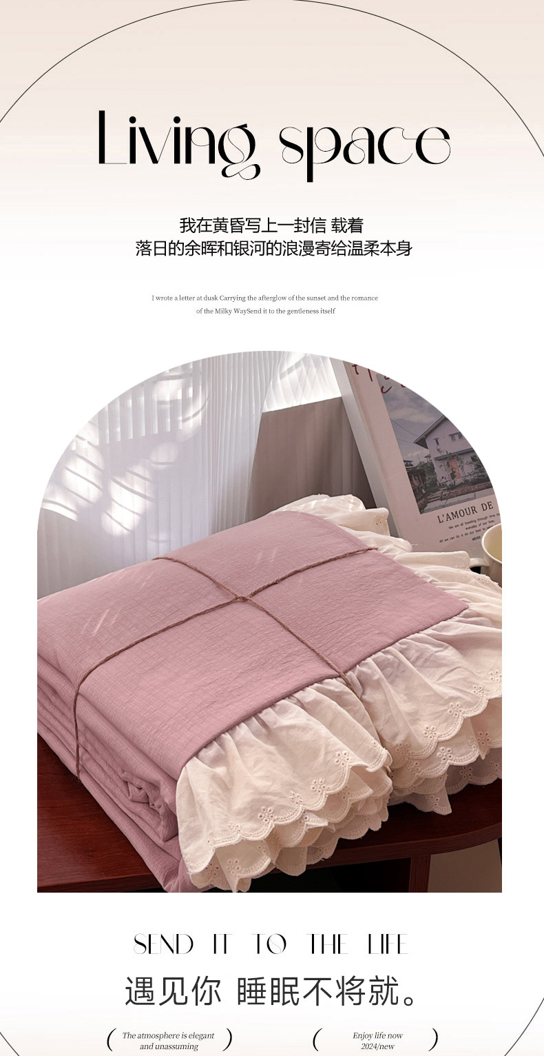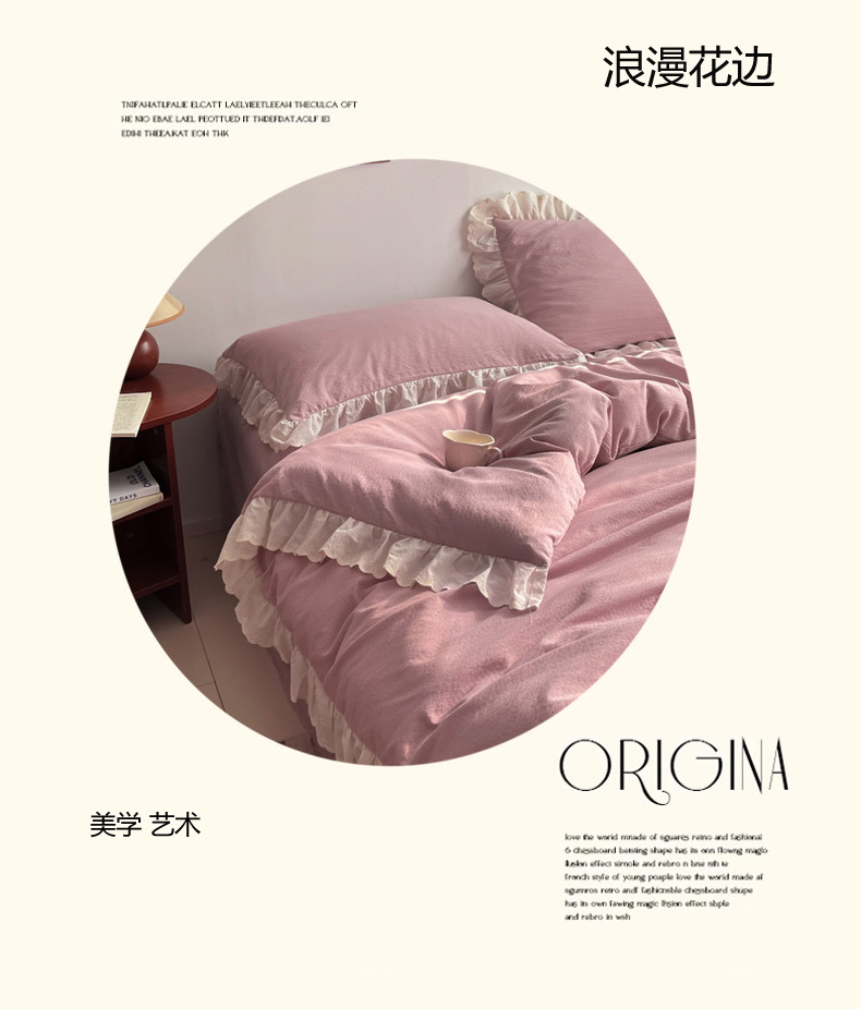 总慕澄家纺 2022新款韩版泡泡纱花边四件套(手机实拍),公主粉,极致灰,梨花白,梨花白+灰,奶油黄,宁静蓝,优雅紫