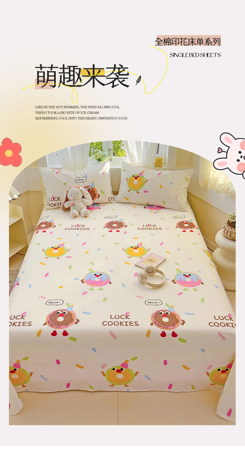 名兮家居 2025新款13372全棉印花四件套单品系列-单床单 甜甜圈