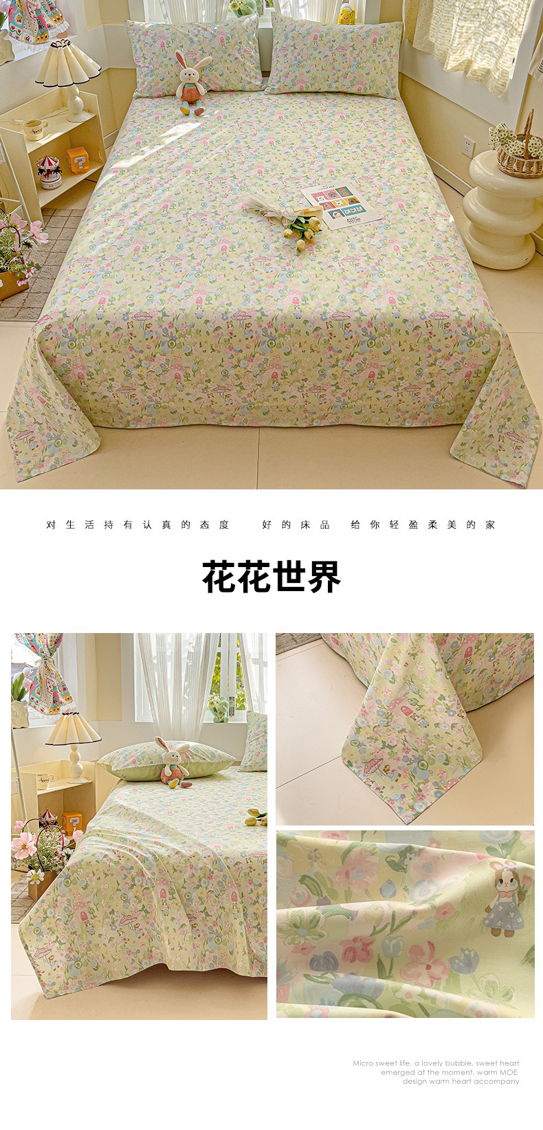 • 91家纺网 家纺一手货源 找家纺 名兮家居 2025新款13372全棉印花四件套单品系列-单床单 甜甜圈